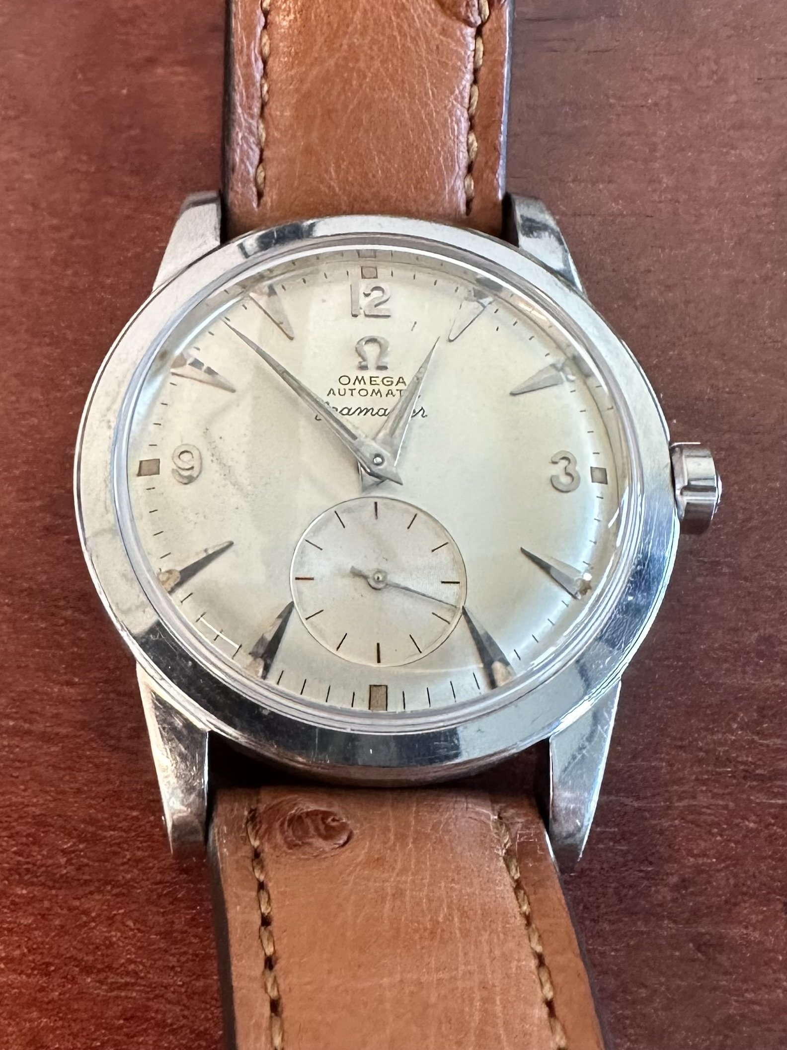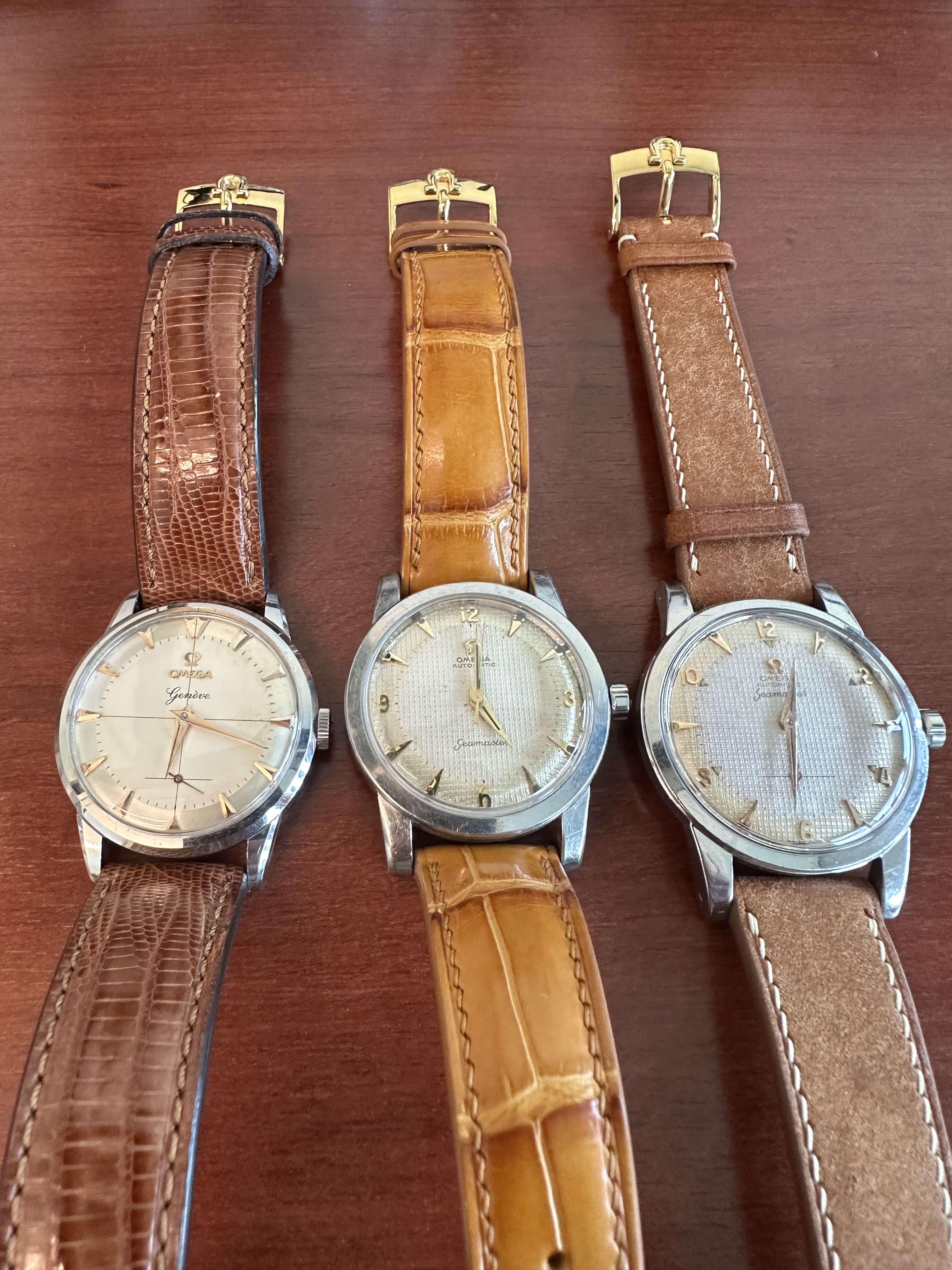 Watch 2: Silver dialed Seamaster 2576 with a tan strap and steel hands and hour markers. Which buckle material for the best overall look?