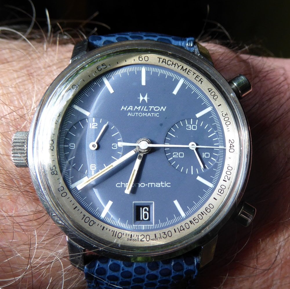 Some other considerations are that the lugs are more chipped up on the first example, and the crystal is more scuffed up on the second. PS this is reference 11002-3 of the Chrono-Matic.