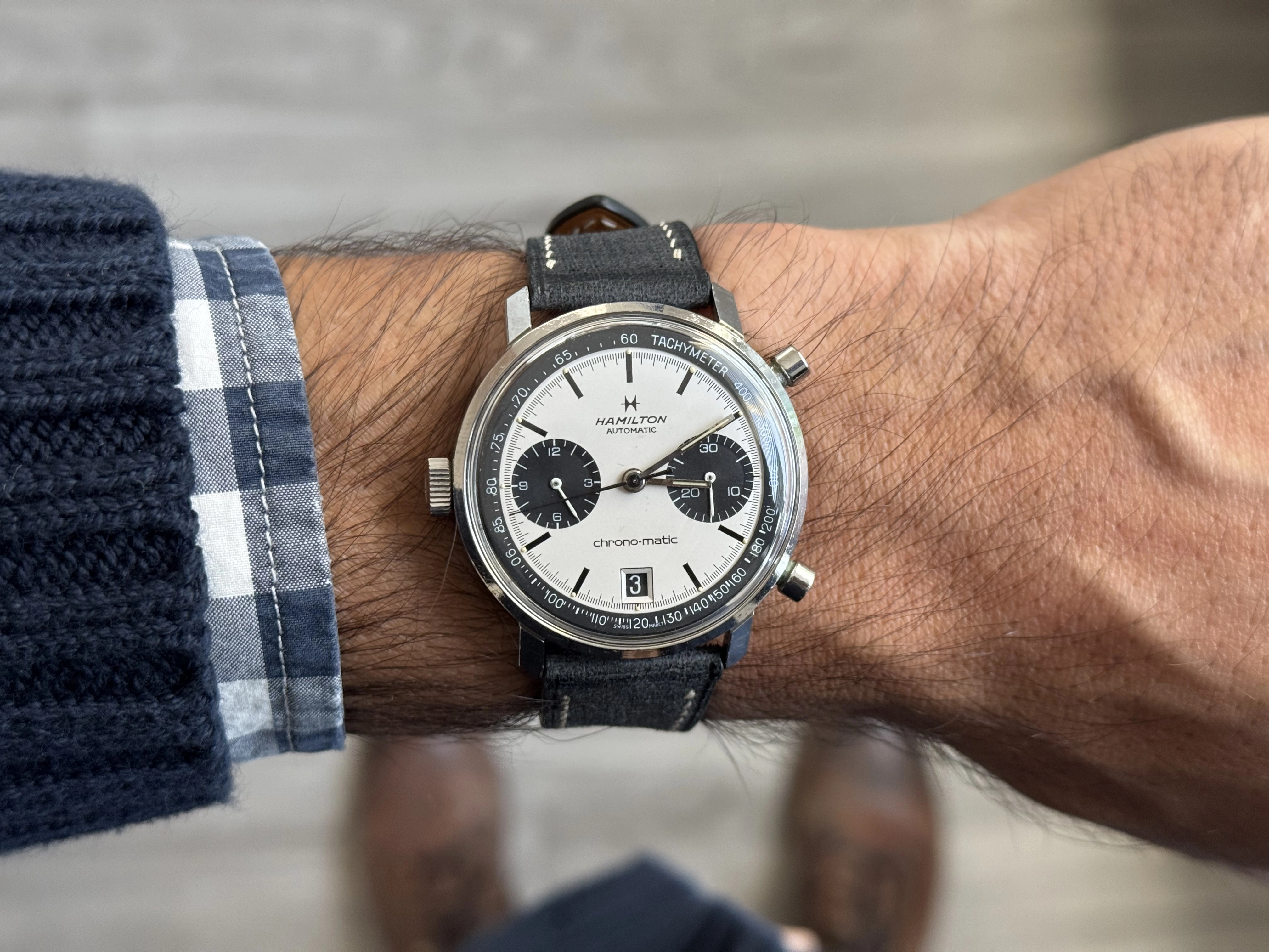 Edit: mine has straight down the line 19mm lugs, which is odd for a Swiss made watch but is actually 3/4inch as Hamilton were still an American company at the time.