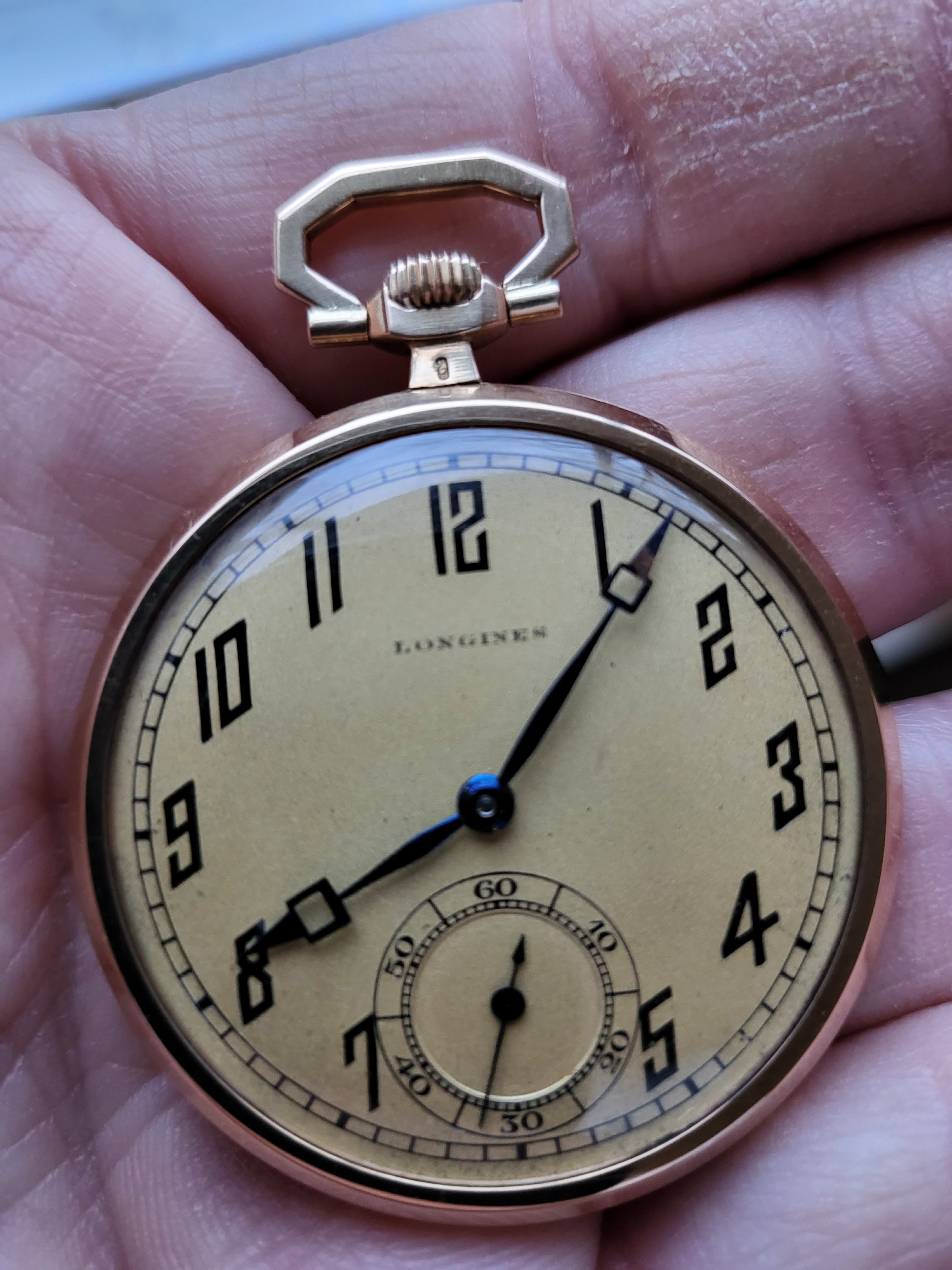 ·In my collection I believe this Longines pocket watch is the rarest one I have. Longines historical archive dates this to 1917. The movement is the cal 18.89z and the beautiful blue hands are tough to see in photos but I have yet to see another pocket watch like this one anywhere. I have pictures of the movement I'll also post when I find them