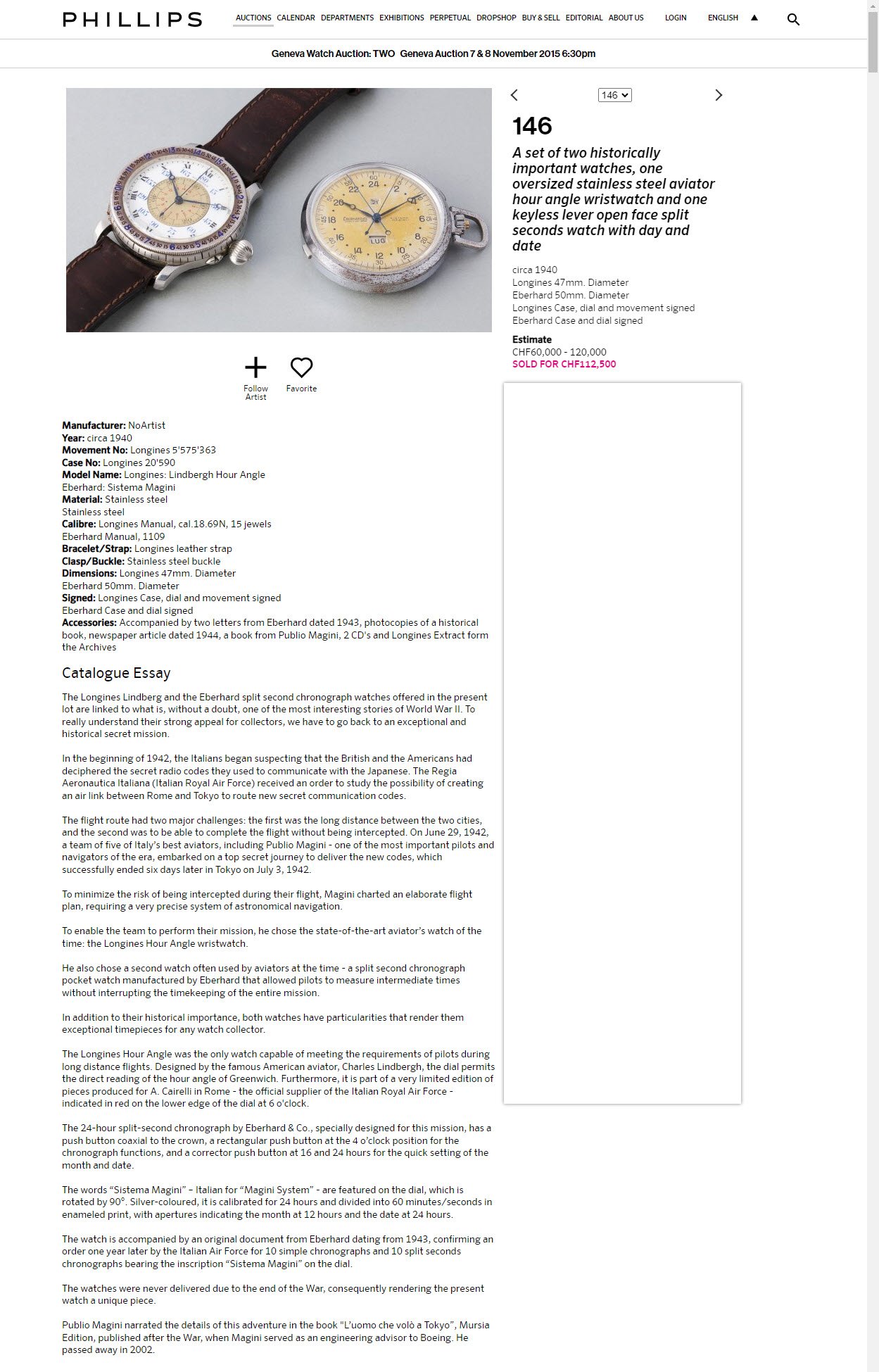 published pictures of a early example Longines-Wittnauer Co. The serial numbers for