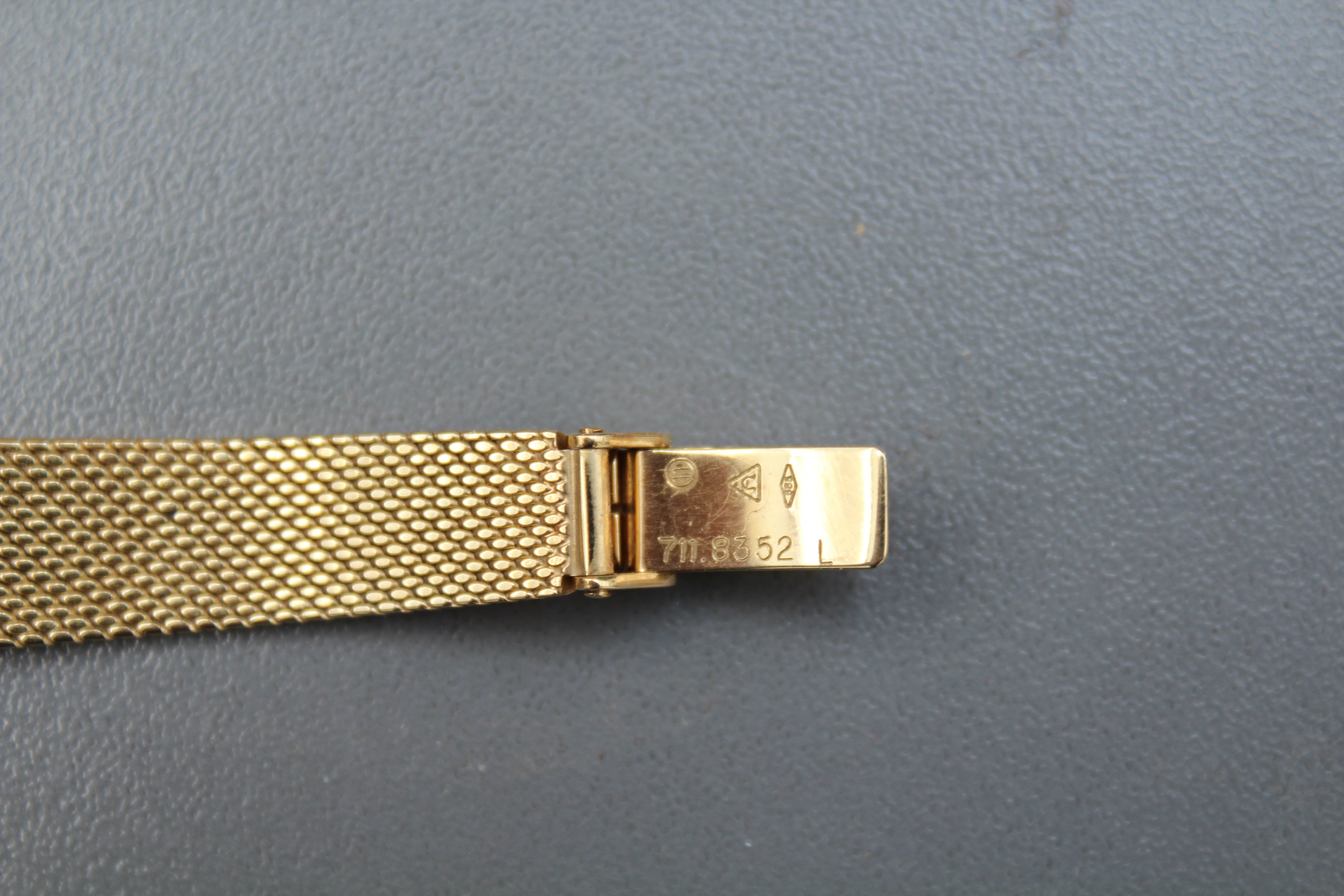 In the clasp thre is a "11" in a circle, a greek omega in a triangle and a "585" in a diamond/lozenge.