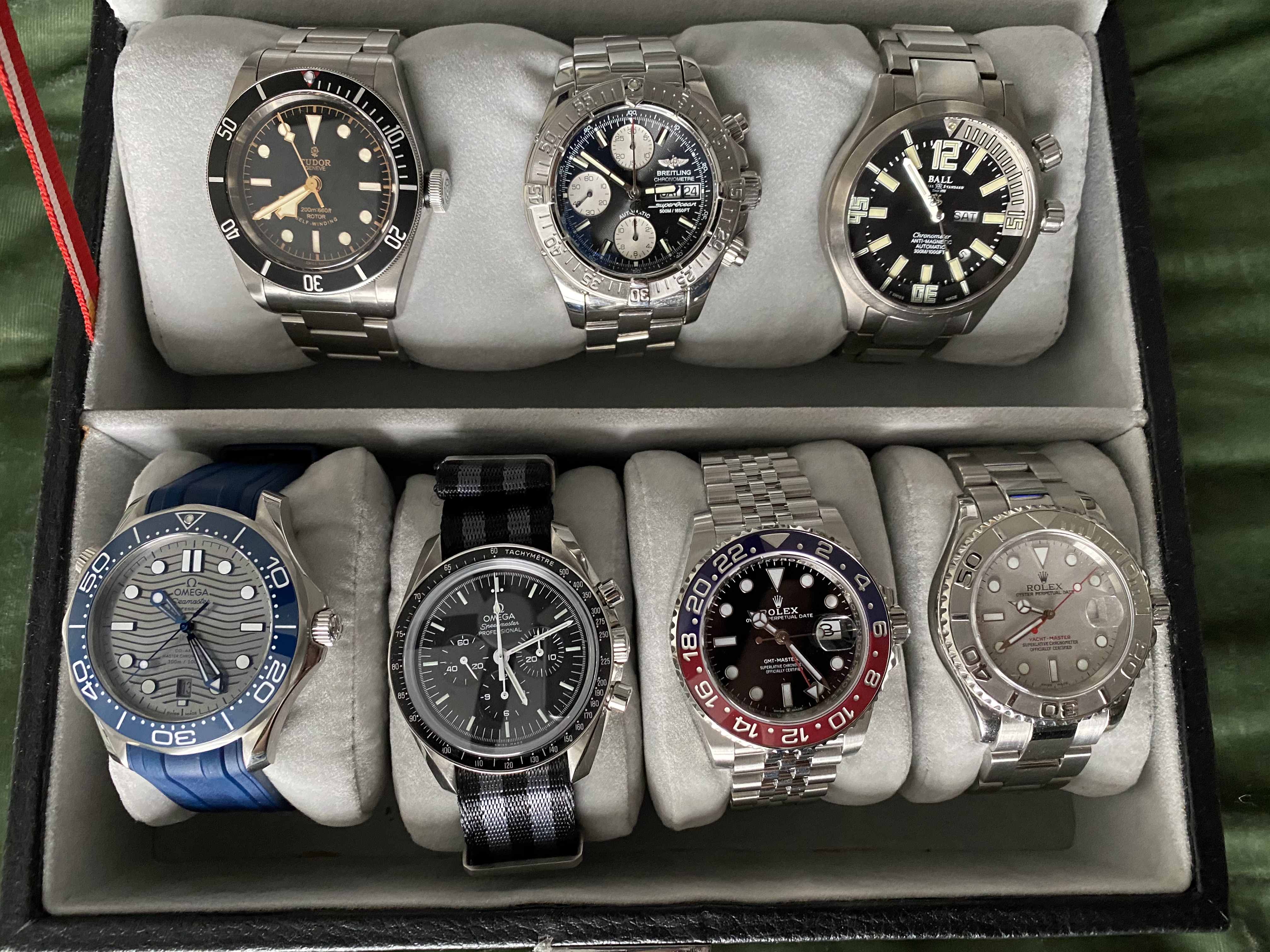 Cast the Breitling, Meister and/or Yachtmaster aside. Then you can look at something a little different, eg a different shaped watch with a complication you don’t have, such as GMT or moonphase. How about this, with its Art Deco look and splash of colour?