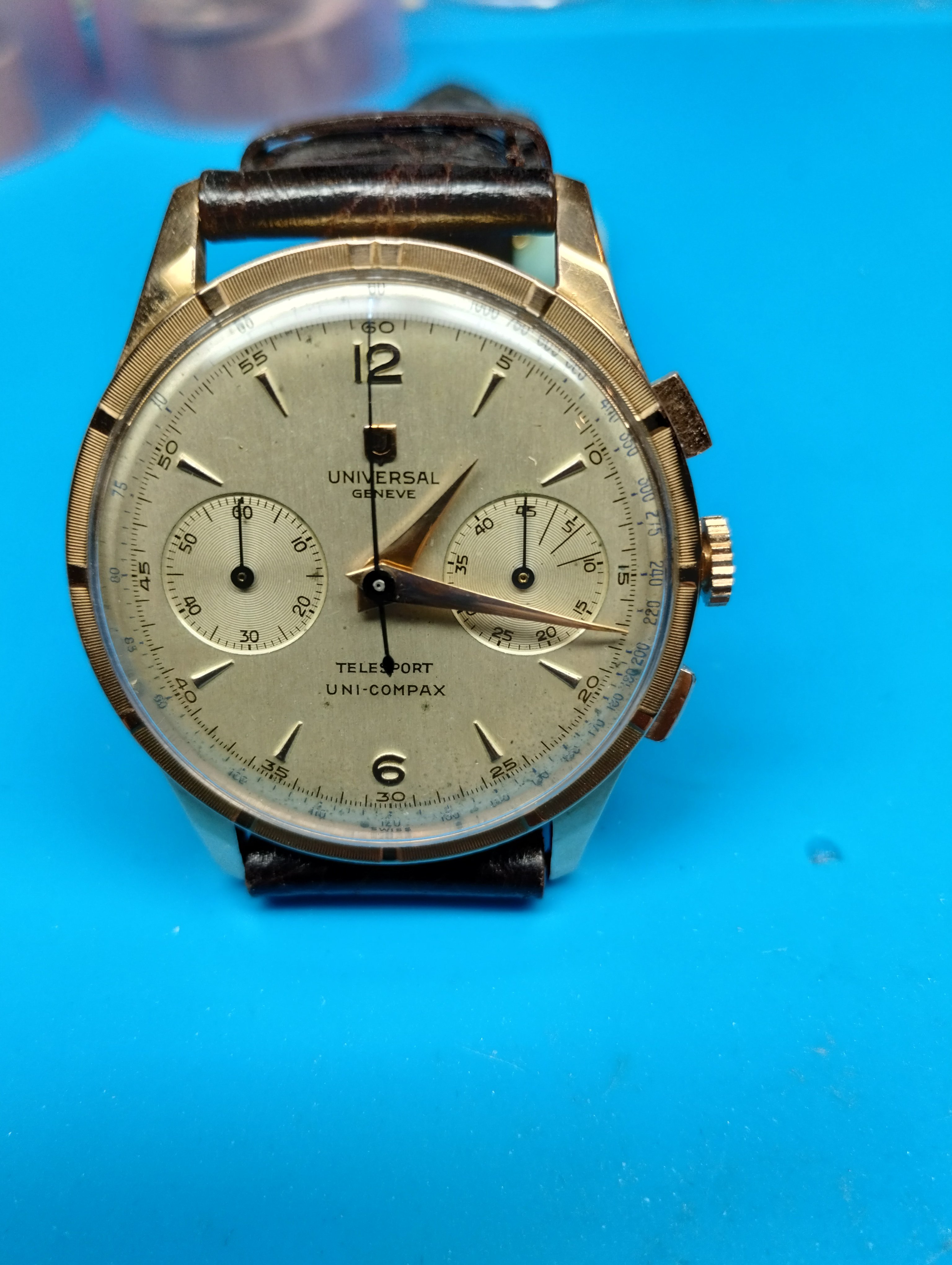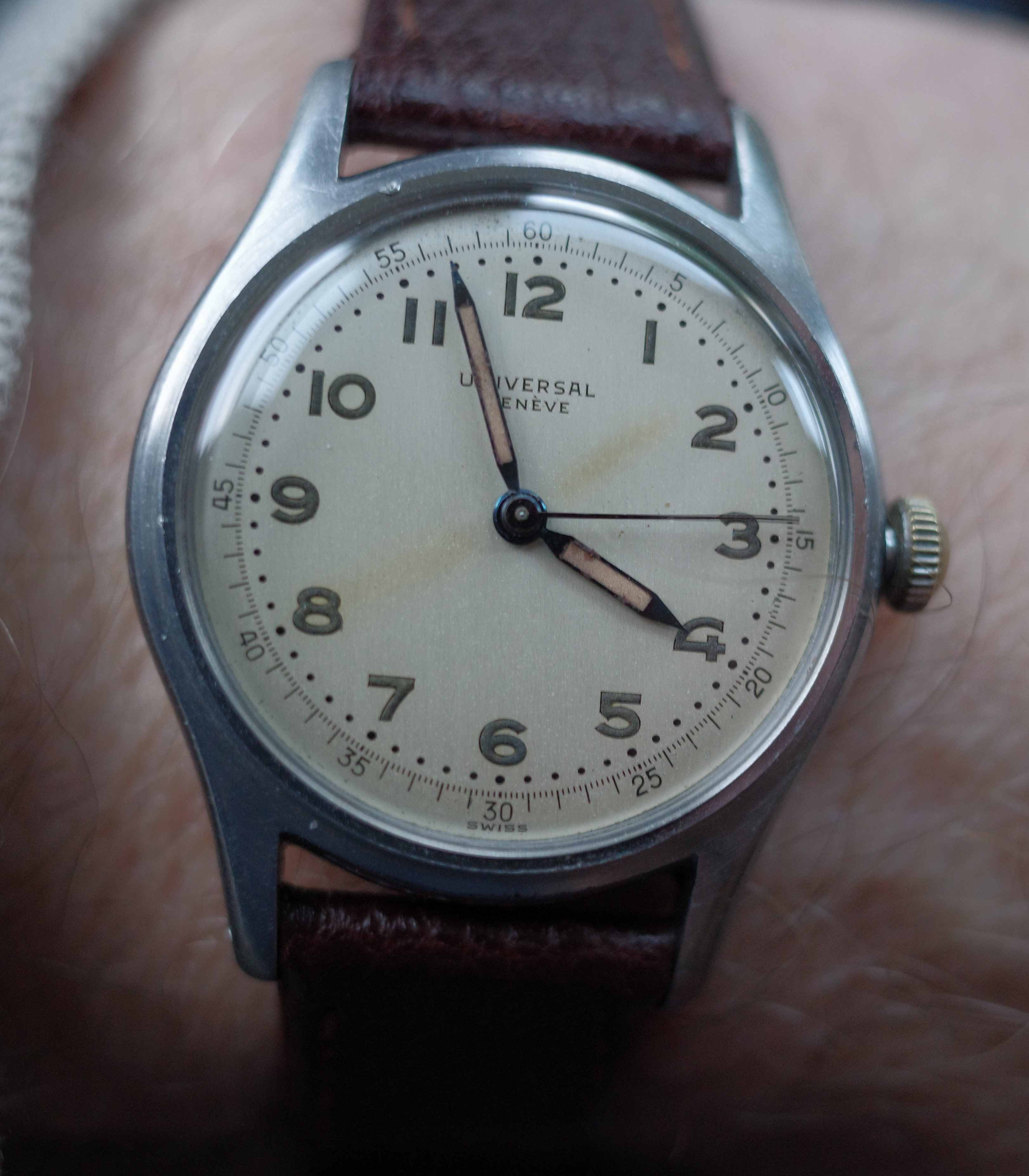 The company still exists but not in production. The newer UG is a brand new old stock watch which is waterproof and crystal glass. They are out there in some obscure jewellers around the world. I picked this one up in Gibraltar. He did have other brand new models I in stock. The panda I bought in 1972 in Basel so I am the first owner. That watch was in the window of the jewellers. And again new display model