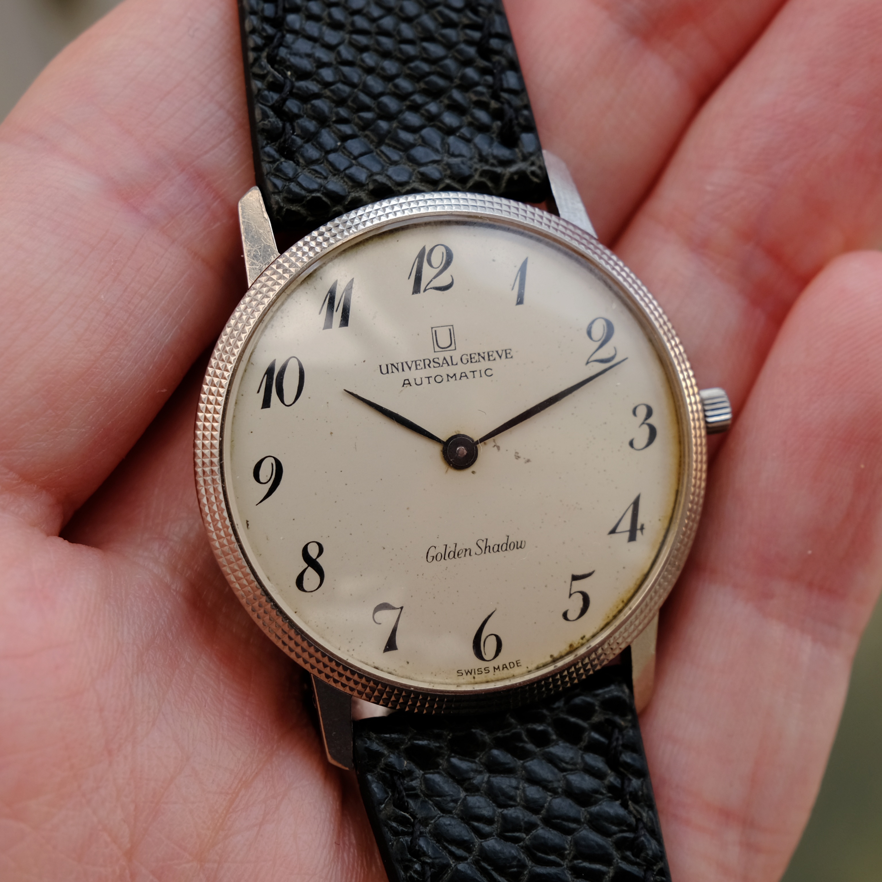 A UG Golden Shadow in 18k white gold, Breguet numerals and a hobnail bezel, ref 366115/06. I've never seen another of this ref, does anyone here have one?