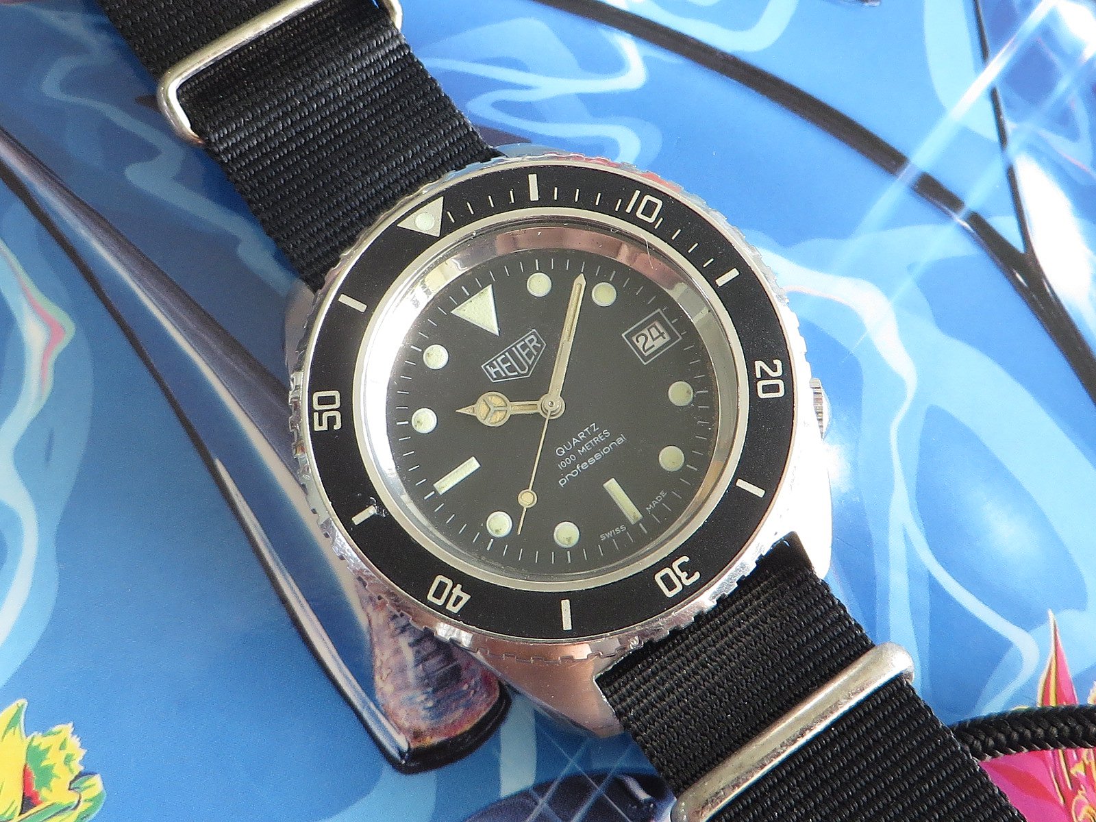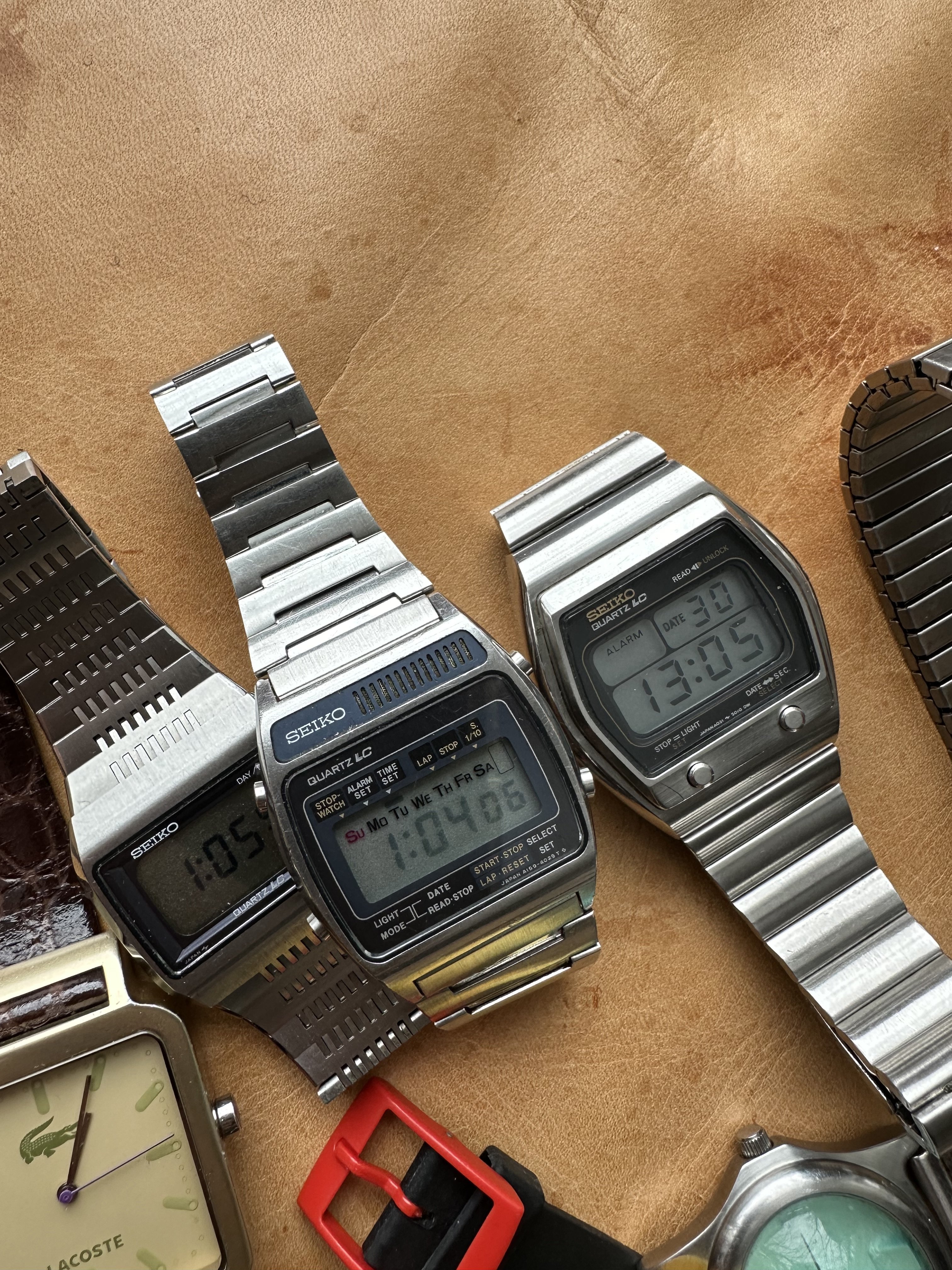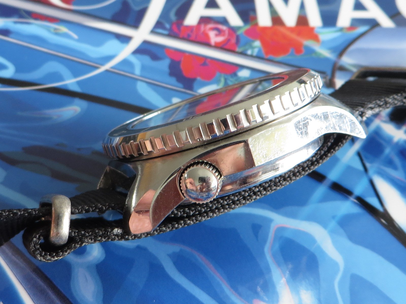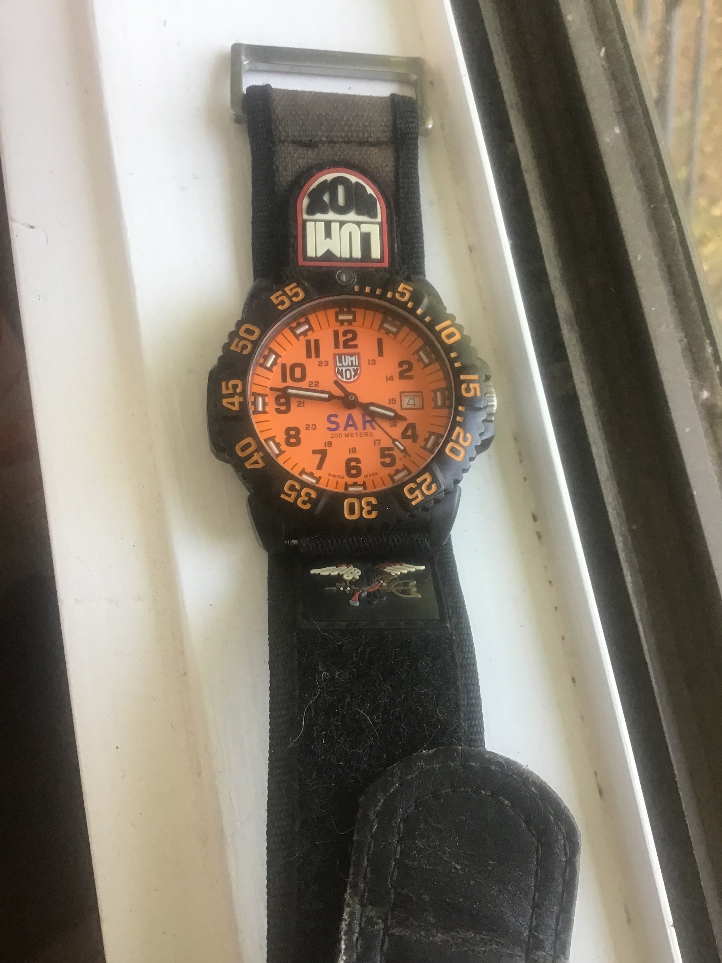 The Shinola was a gift from my wife on my first day of retirement. We are also big fans of Detroit as a city. It gets a bad rap and is always trying to overcome it. The Timex has a nice white dial. The Lacoste is one of the many here used by my wife. The yellow Casio is also used mostly by my wife. I have never worn the other Casio but could not let it sit at the store for $5.99. The blue dial watch is marked Eddy Bauer and screams 90s. The Coke and Pepsi cost about the same as a personal size bottle at 7-Eleven. Not that I would ever choose Pepsi over Coke… The Storm reminds me of that early 60s deep water Rolex with the exaggerated crystal. I added the sterling silver olongapo. The Seikos are solid. The one with the front pushers was bought here on OF. The others for only a few dollars. I have a fourth, a Bond Seiko that works but is being (hoping) repaired due to a non functioning pusher. The Freestyle looks like the Casios. I like the strap on that one. These were used by surfers in the 80s. I suspect that this one is only a few years old. Nice colour. And the Bills watch? High and left. The Swiss Military came with a metal bracelet and was with the Titanium Tissot. It was NOS. The bracelet is huge and would be loose even on @Bill Sohne . I don’t know how to shorten it so I am using this one piece strap that I made. The Swatch is unusual enough that I removed the battery.