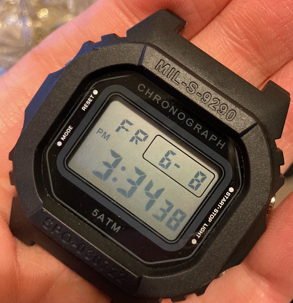 The G-Shock is my bed time watch. That light button is perfect. Did not look like it had ever been worn.