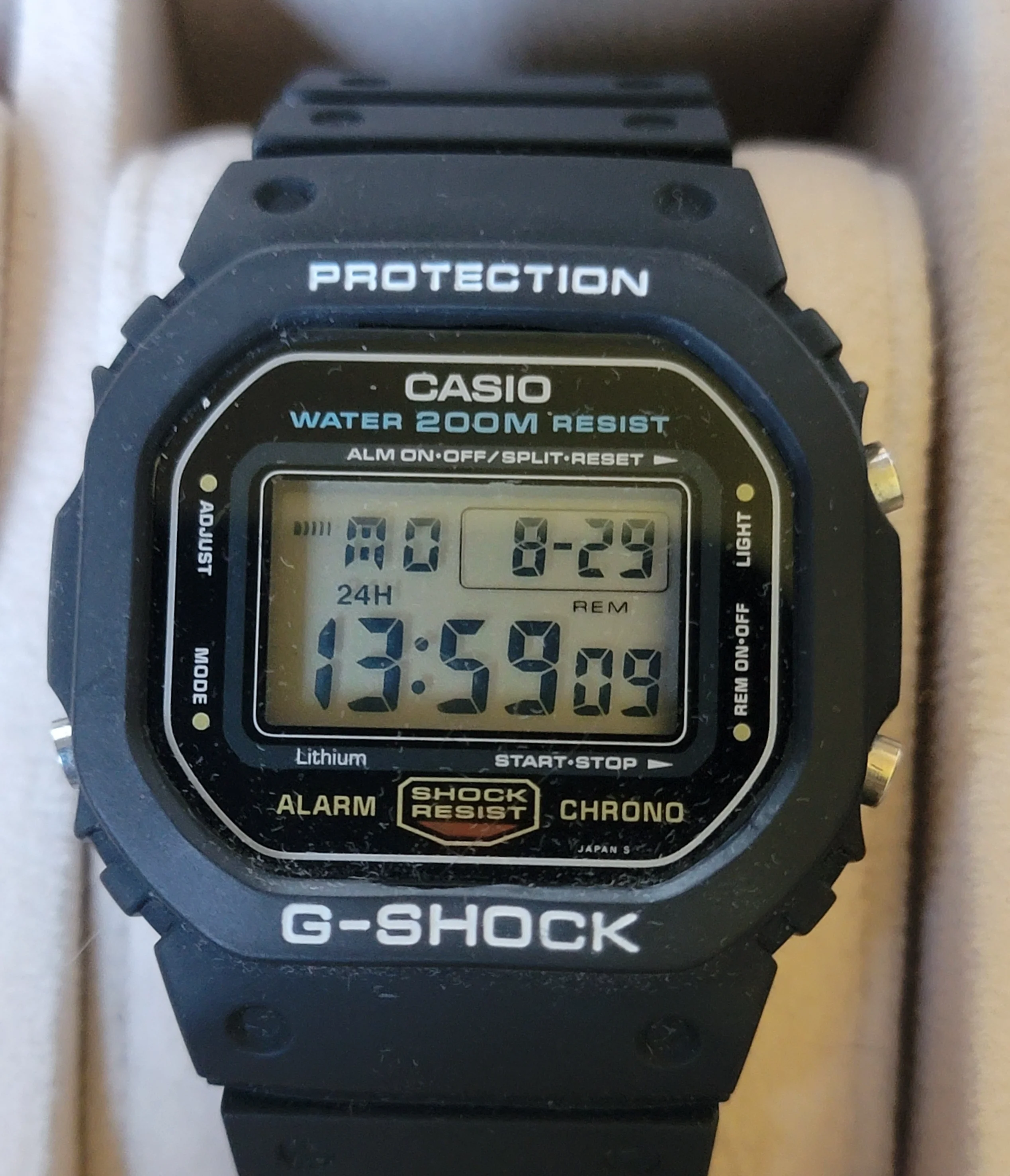Surprised that no one has yet posted a classic G-Shock square. This is the G5600UE-1DR. I bought it in June last year as a beater and it's been a terrific watch. Love the fact that it's solar powered, so no need to worry about it dying unexpectedly.