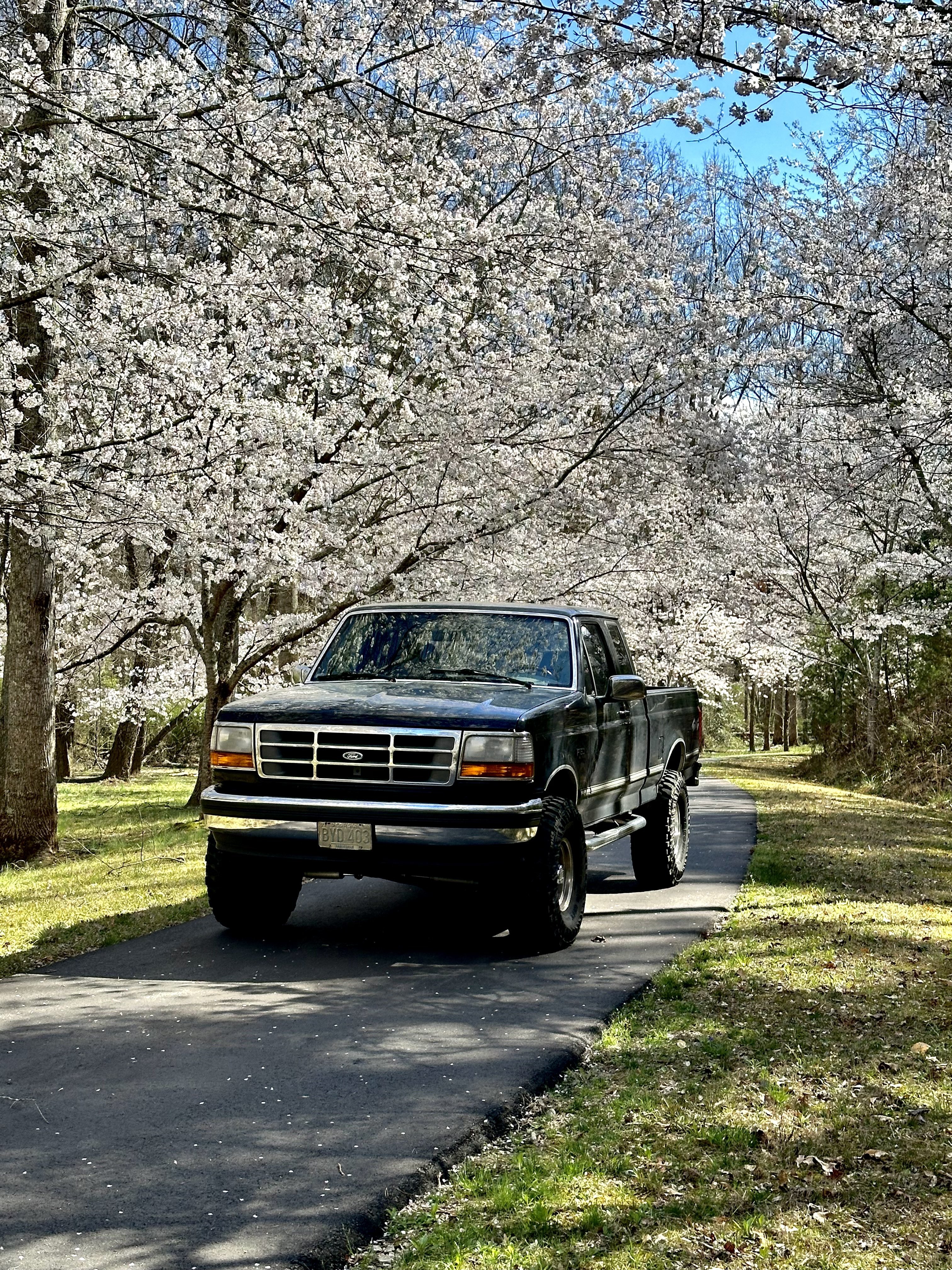 My Cherry trees in their full glory. Couldn’t resist a pic of my 94 F150 among them. Spring is springing.