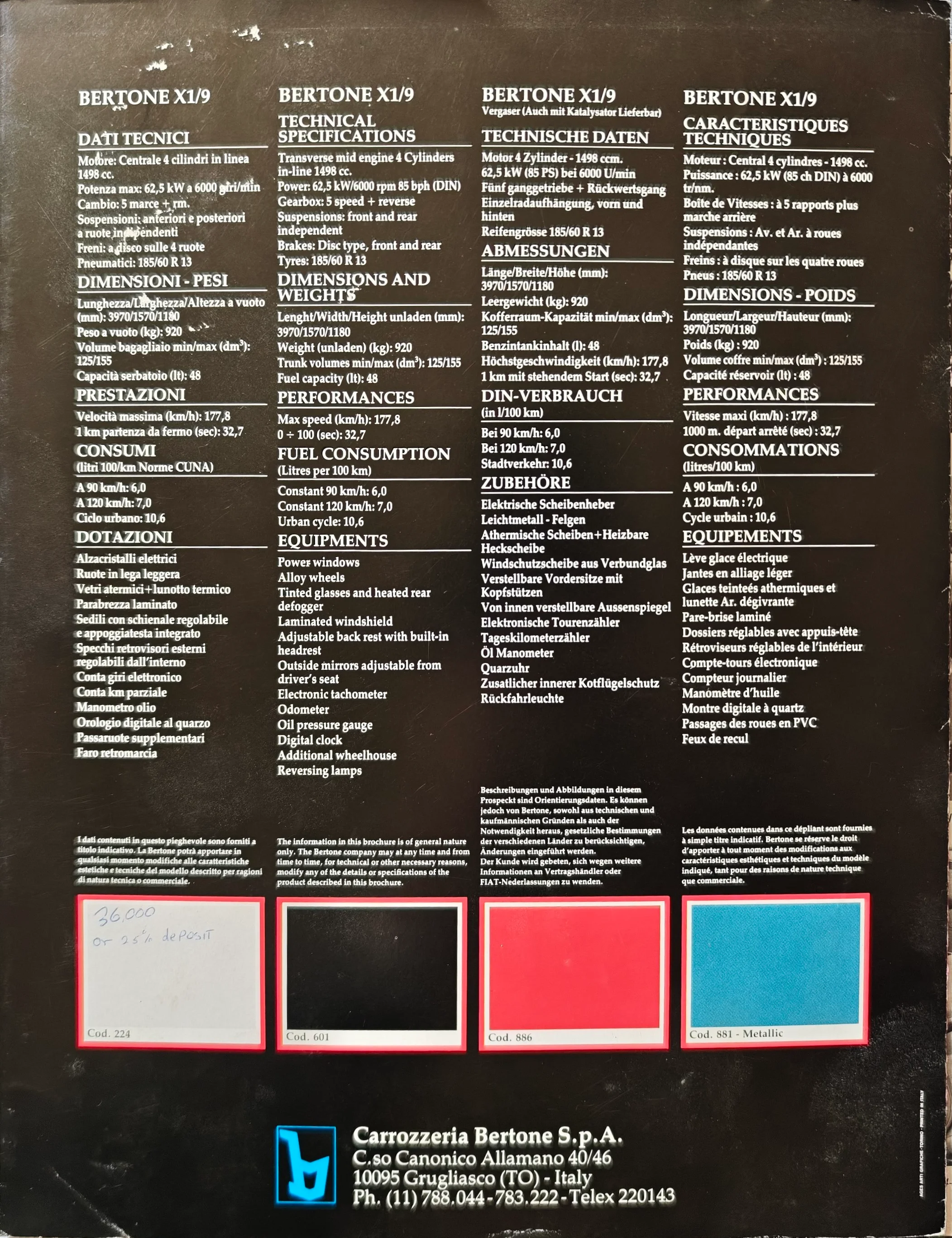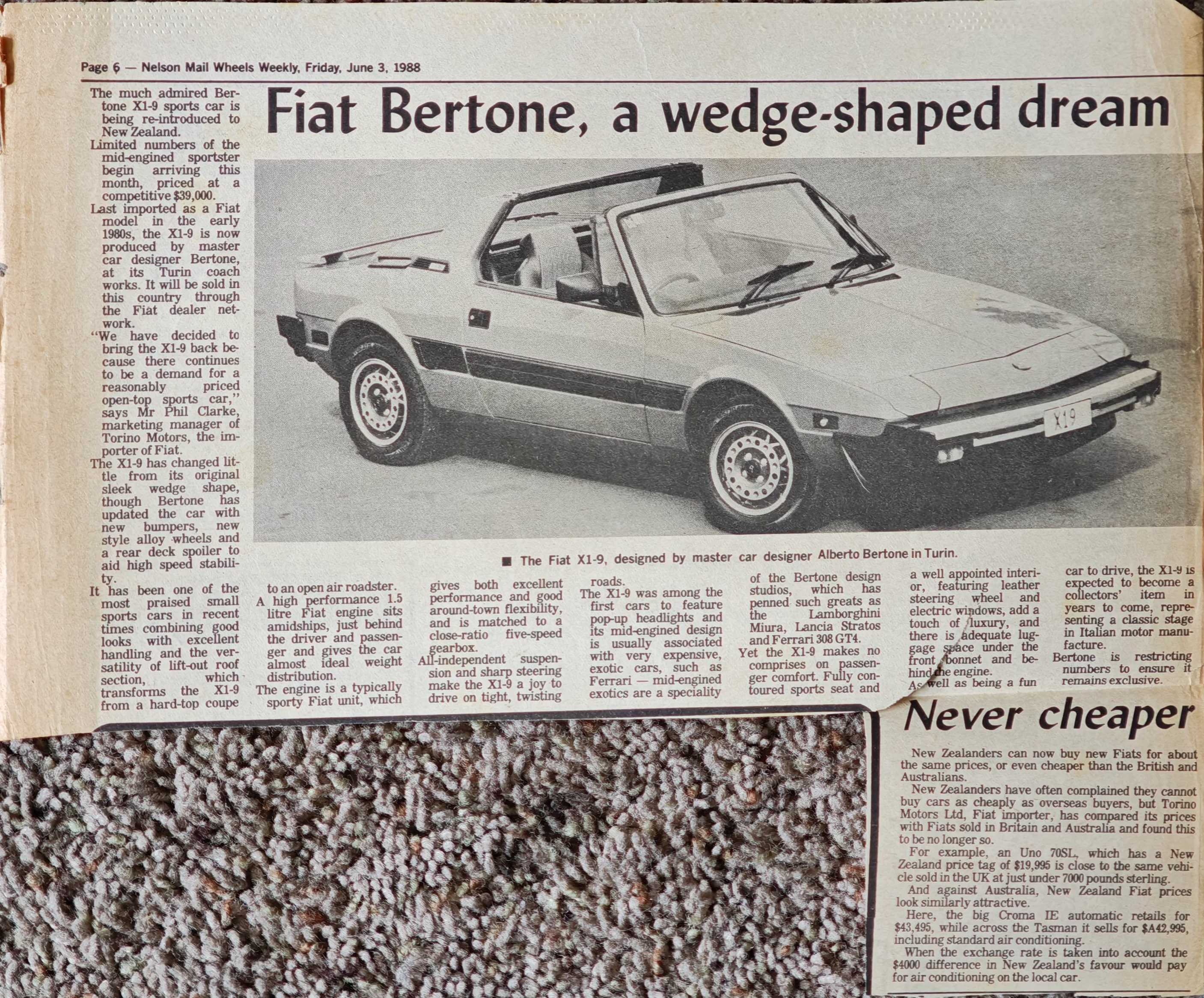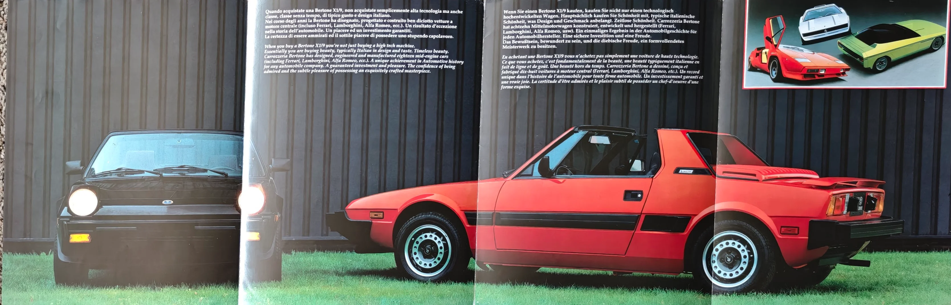 The X1/9 always felt like it needed a little more oomph! A few have transplanted the 2 litre engine/transaxle unit from a Lancia Beta (a nice car in itself) into them, apparently this livens 'em up a bit!