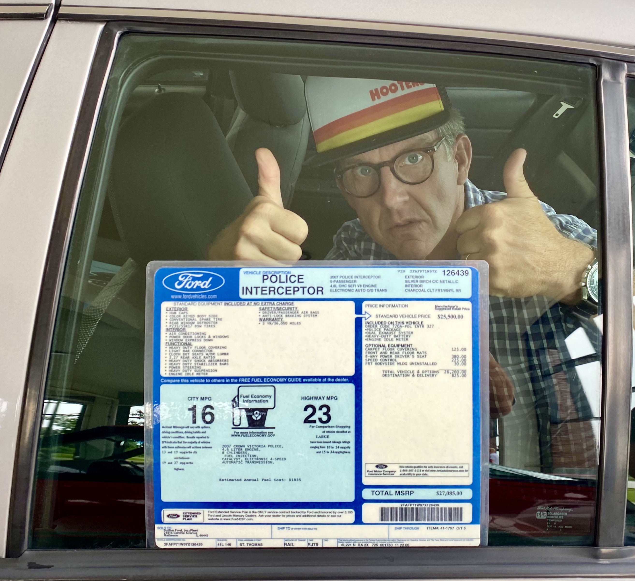 Thanks, man…and here’s my original window sticker regarding how my Police Interceptor was equipped…my Police Interceptor was about as basic as you could get with only a few options. Mad Dog action figure and Hooters hat sold separately…