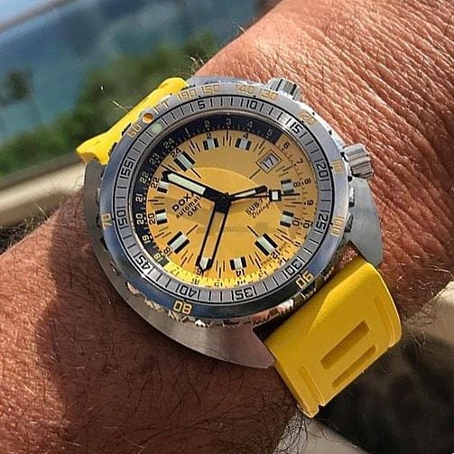 This is like in 1996-97 I wrote to Doxa asking if they had any spare parts... like a dial or hands.. A new Dirk Pitt novel was just published. I told them they should do some sort of joint marketing with the author of the bookk as it was just release. They had no idea what I was talking about so I sent them the photo of the back cover of the book showing the watch among other things.... They were amazed and I have them contact info ... and back to my watch... . they told me to send the watch to them.. I said ok.. sent it they wanted to do a total overhaul. I told them i have a local watchmaker that I work with ... so they sent it back to me with dial hand hands... i forget what they charged me or if they gave it to me as a gift... really dont remember.
