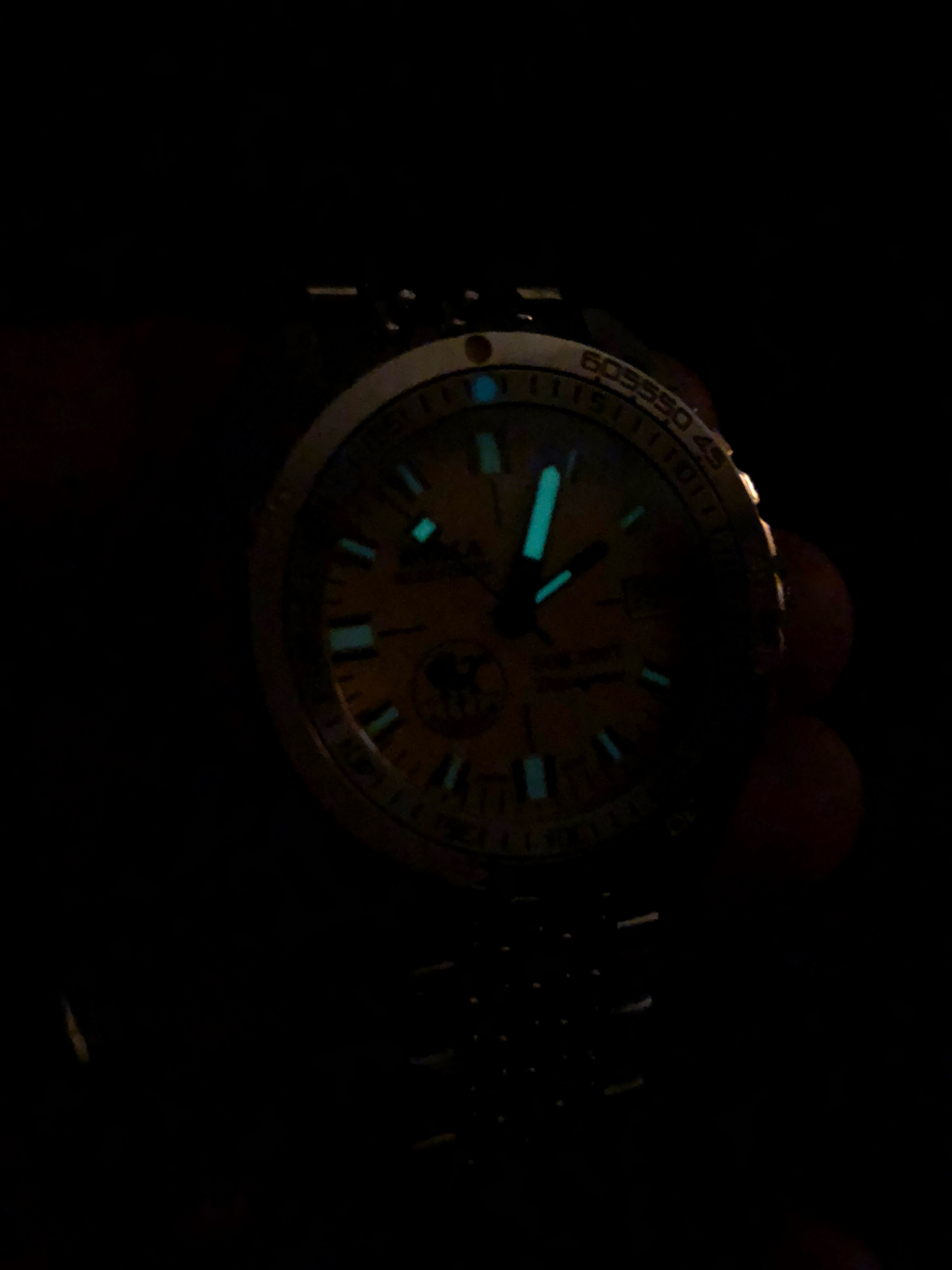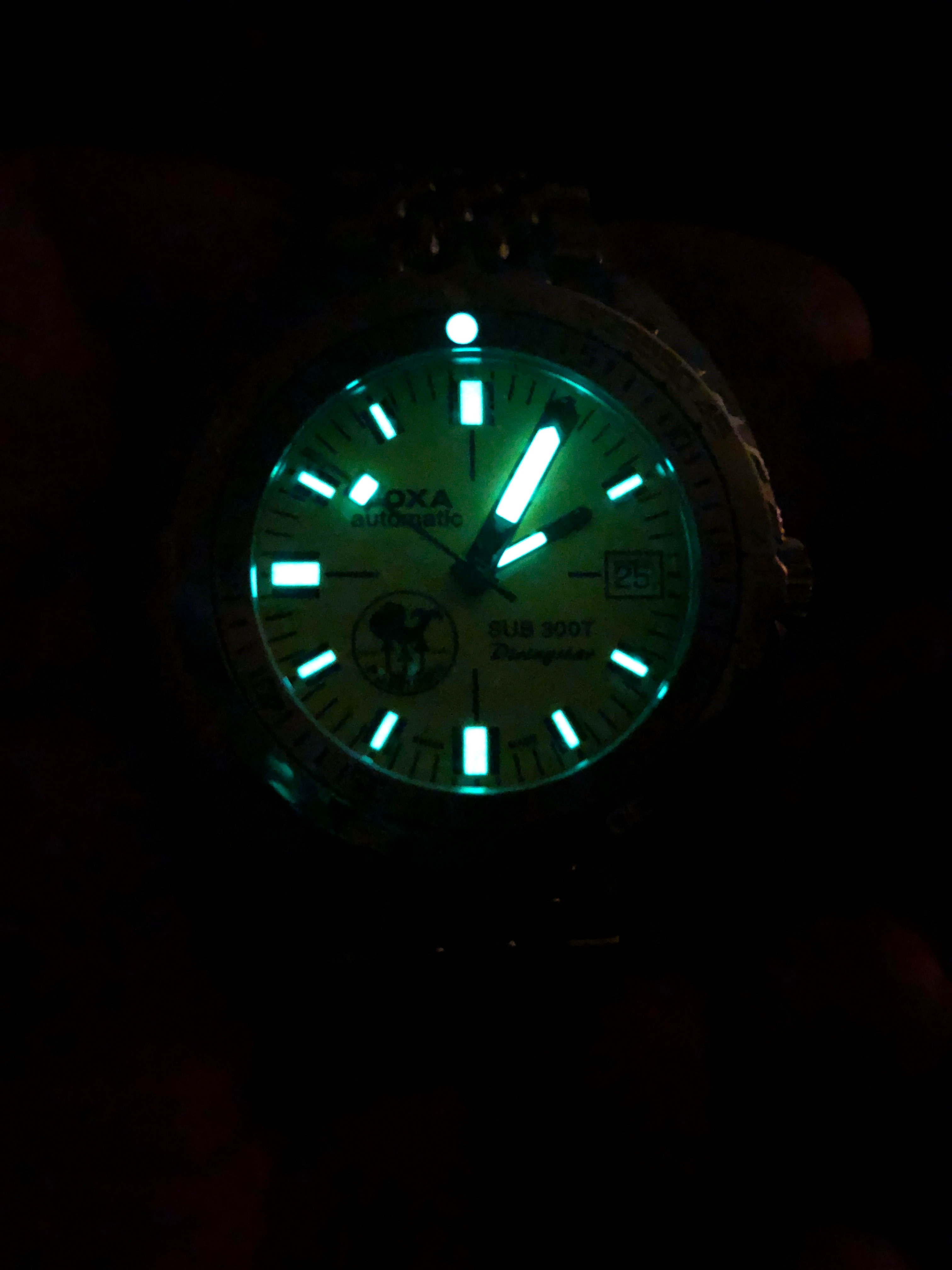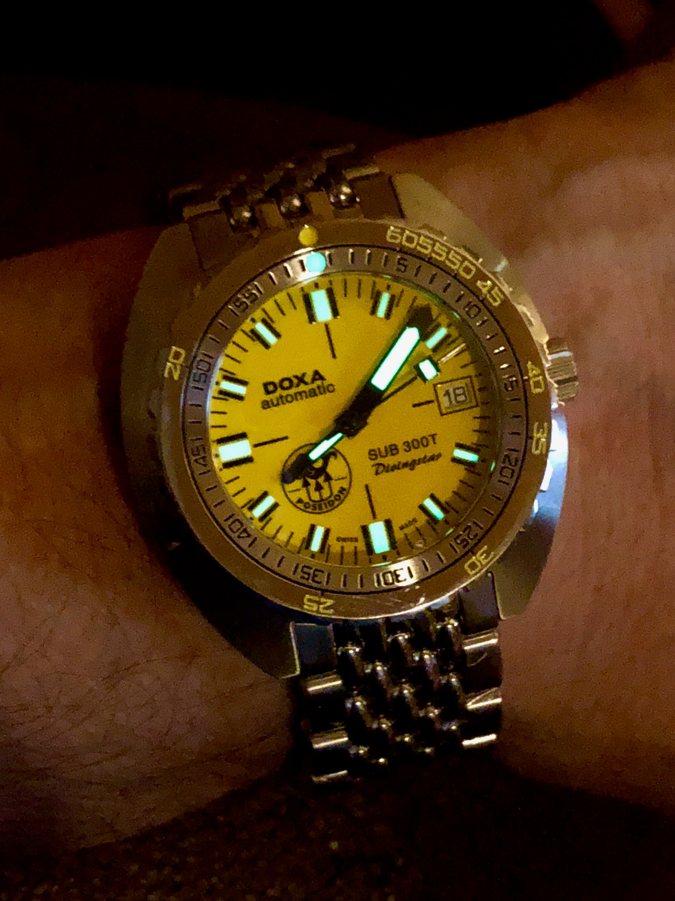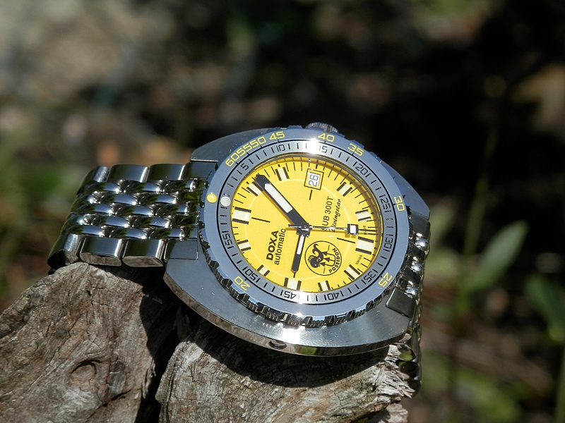 The scuba tank case is nice, weighty, and solid, but not quite as cool looking or as functional as the lighter plastic scuba tank case from my Citizen Promaster Dive Watch, which slides open to access the watch and looks more like a scuba tank at the top. The rubber cap on the top of the DOXA tank/tube seals the DOXA case so well that the pressure inside the case makes it hard to remove and replace the cap. You could use it to bury cash and jewels in the backyard, to keep them safe.