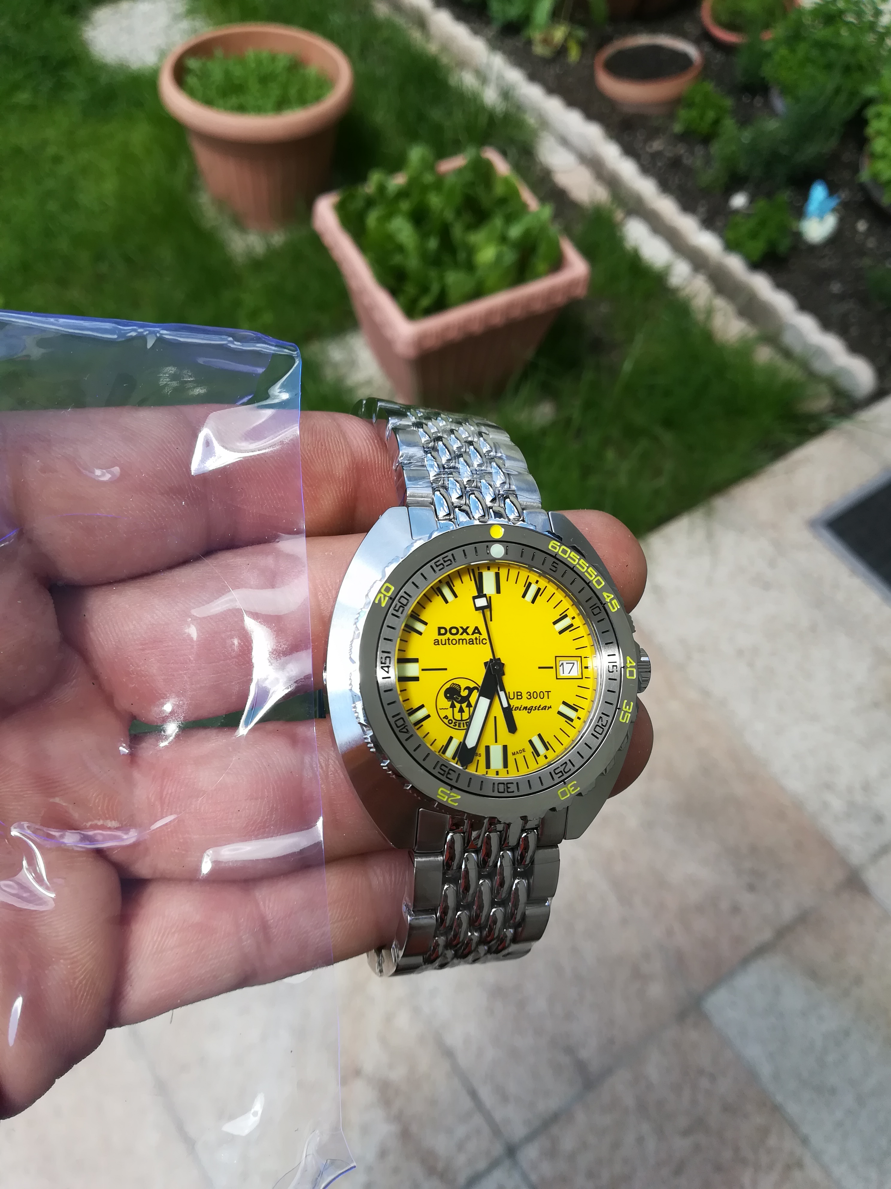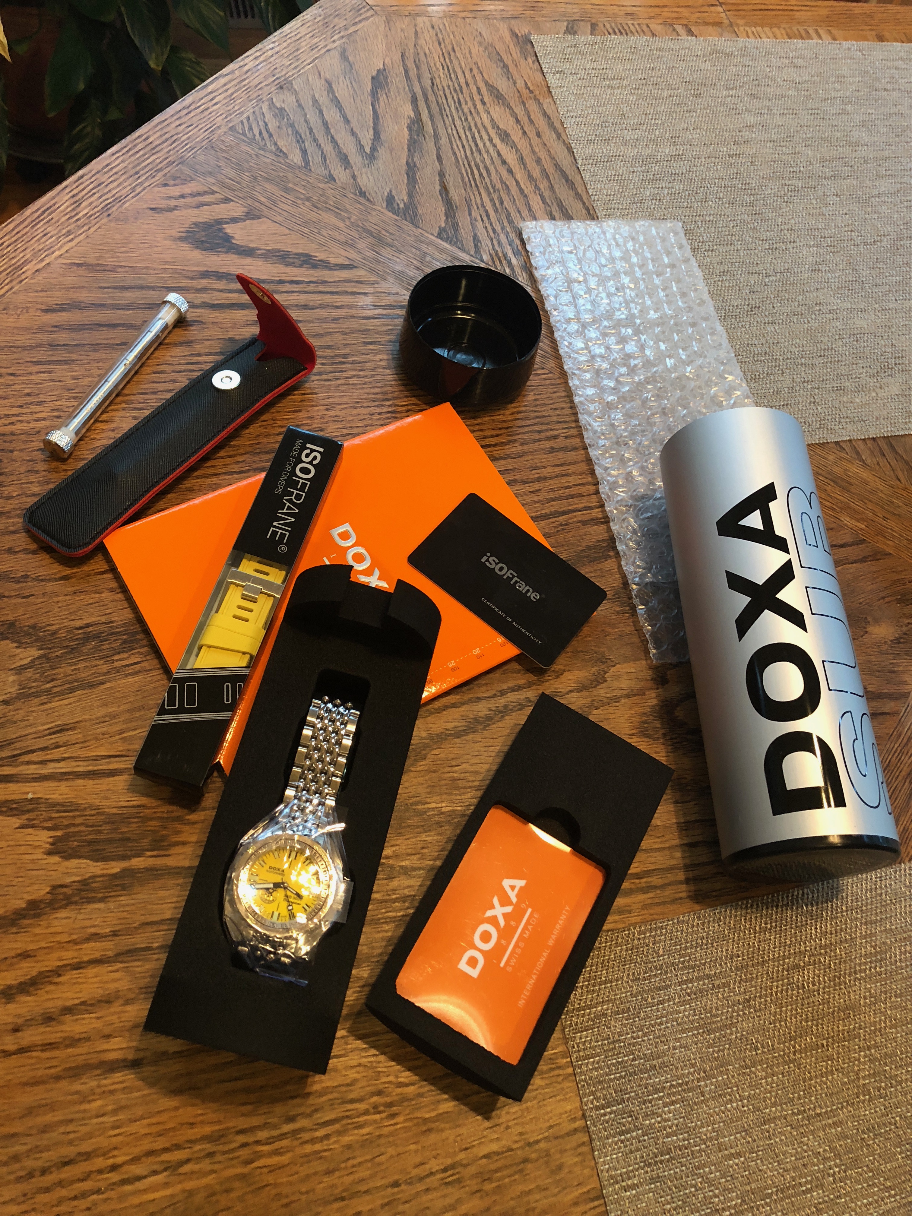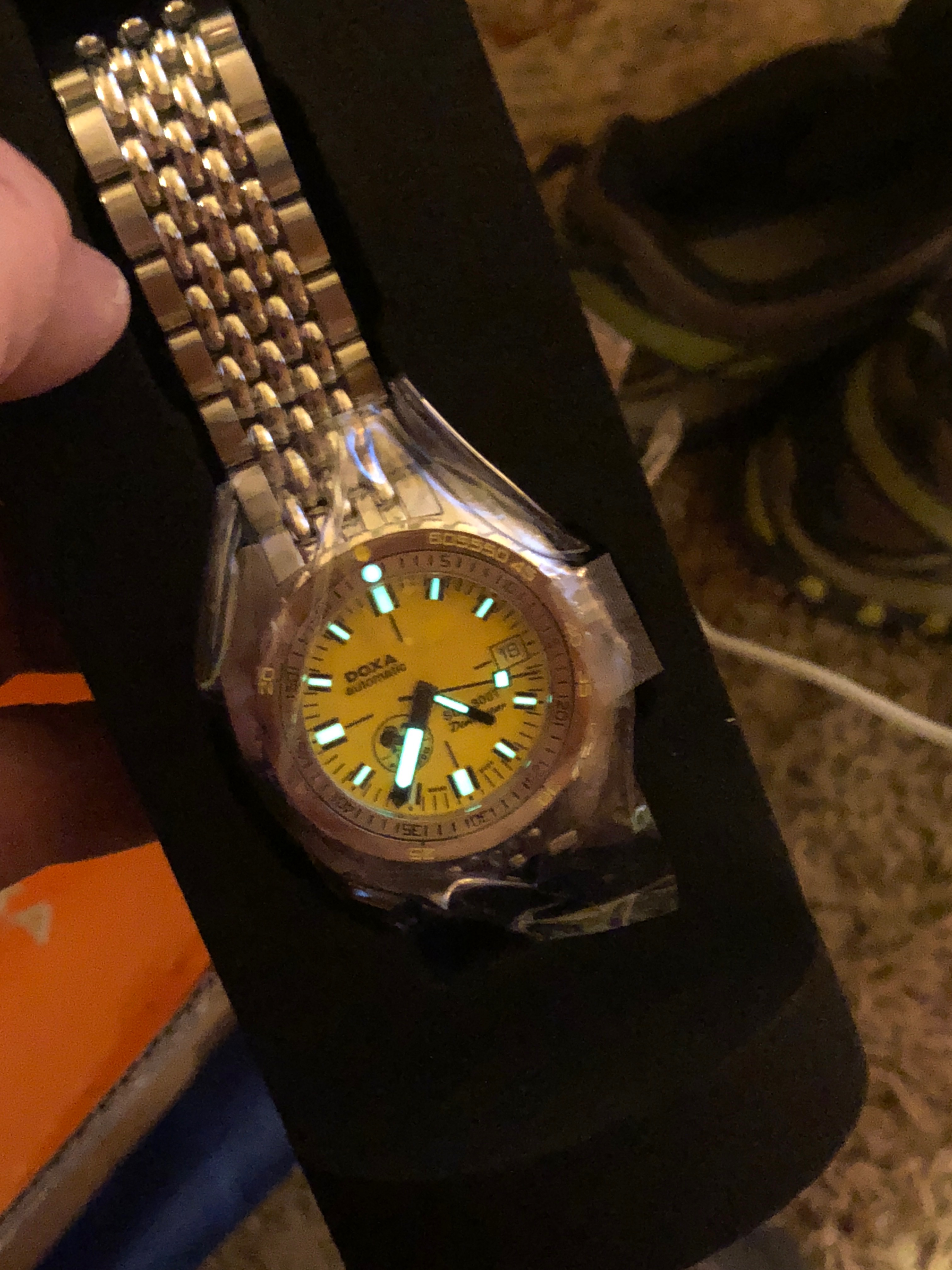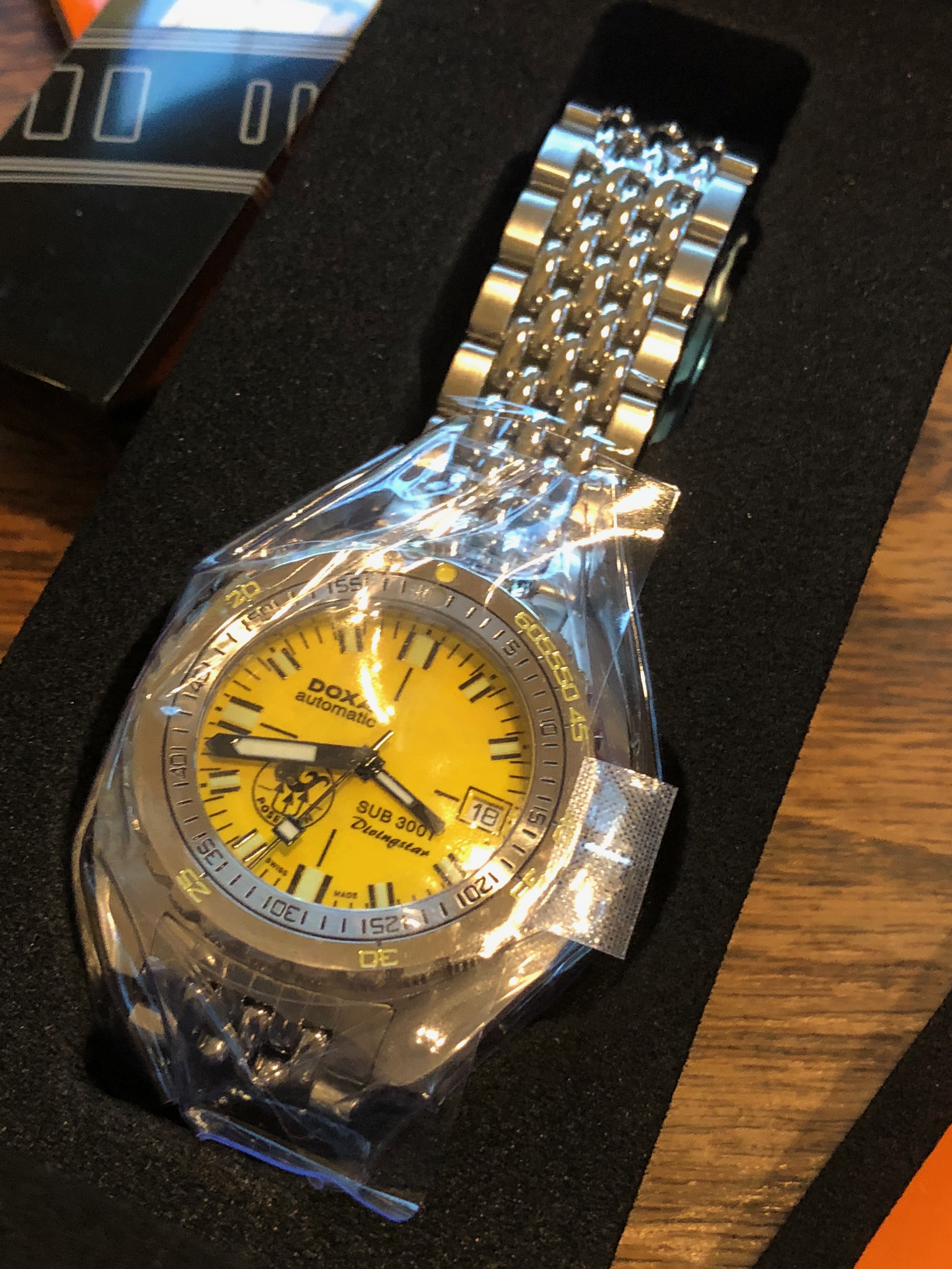 The whole watch is wrapped in a clingy plastic, including the head and bracelet. So during shipping the bracelet can't rub against the back of the watch and causes scratches. I may leave the plastic on the bracelet for now, and switch it to the yellow ISOfrane before I start to size the bracelet.
