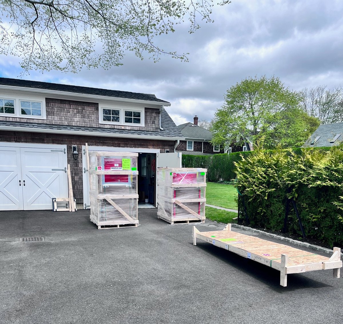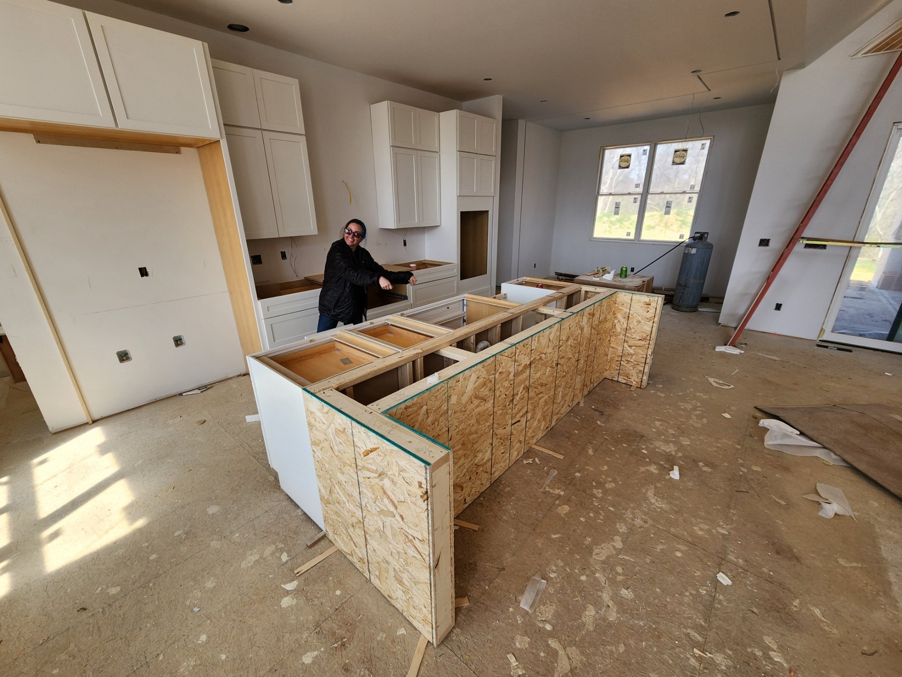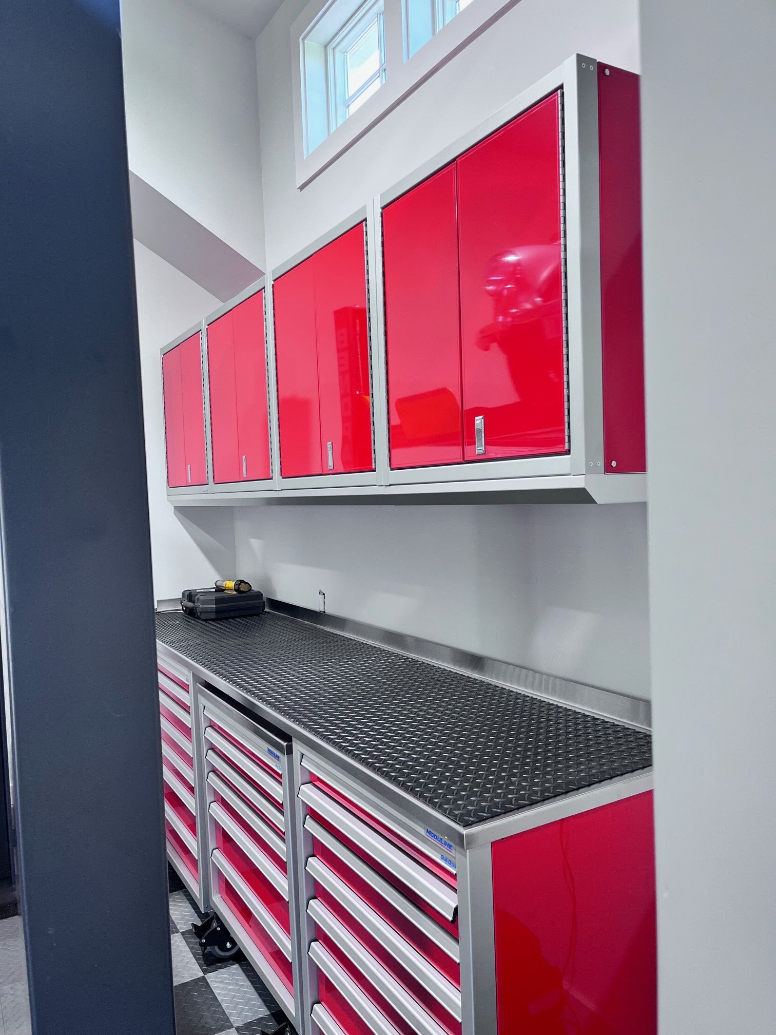 Doors have shown up, cabinnets are getting installed, some painting is happening. Finnaly got my garage doors installed on jackshafts. garage doors are 16x8 and 9x8. Have quotes out right now for a 2-post and 4-post car lift. Also trying to source a Acorn platens 5x5' table for the garage.