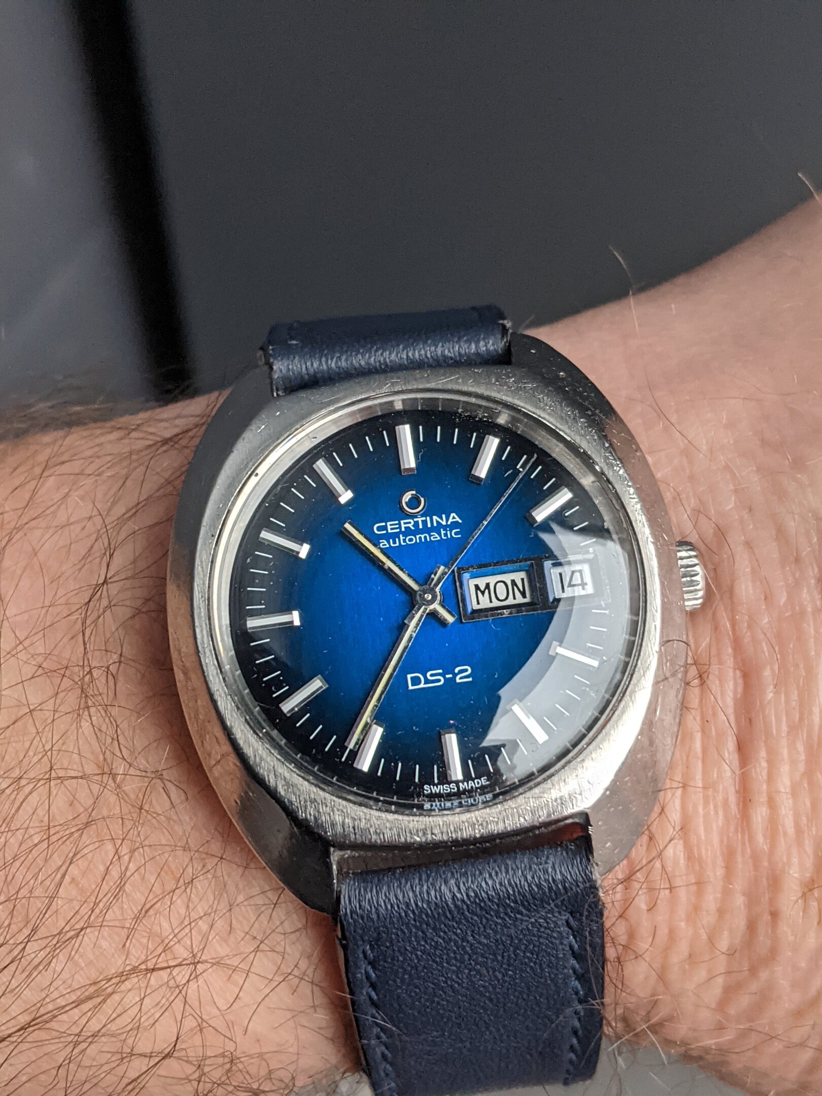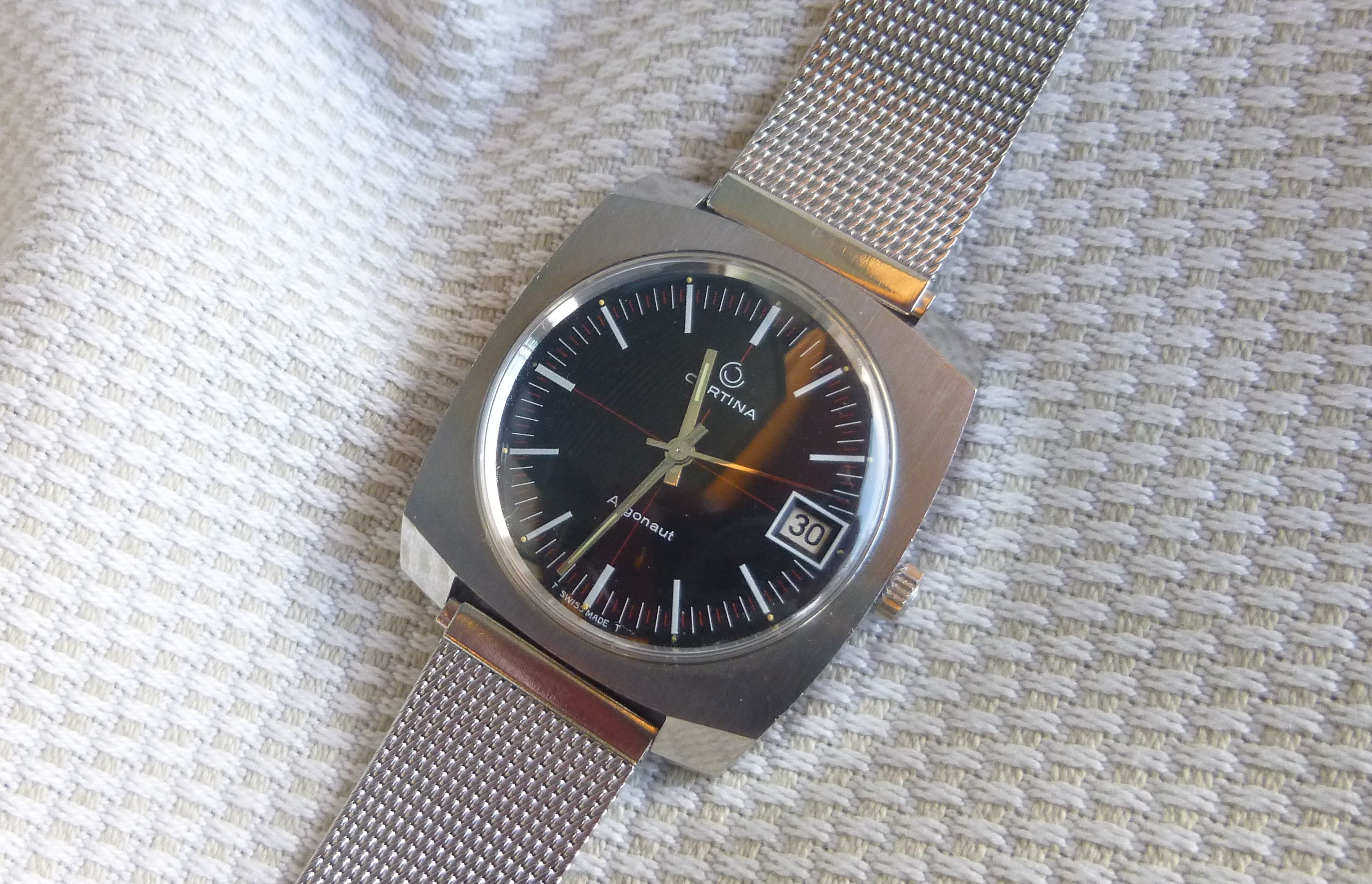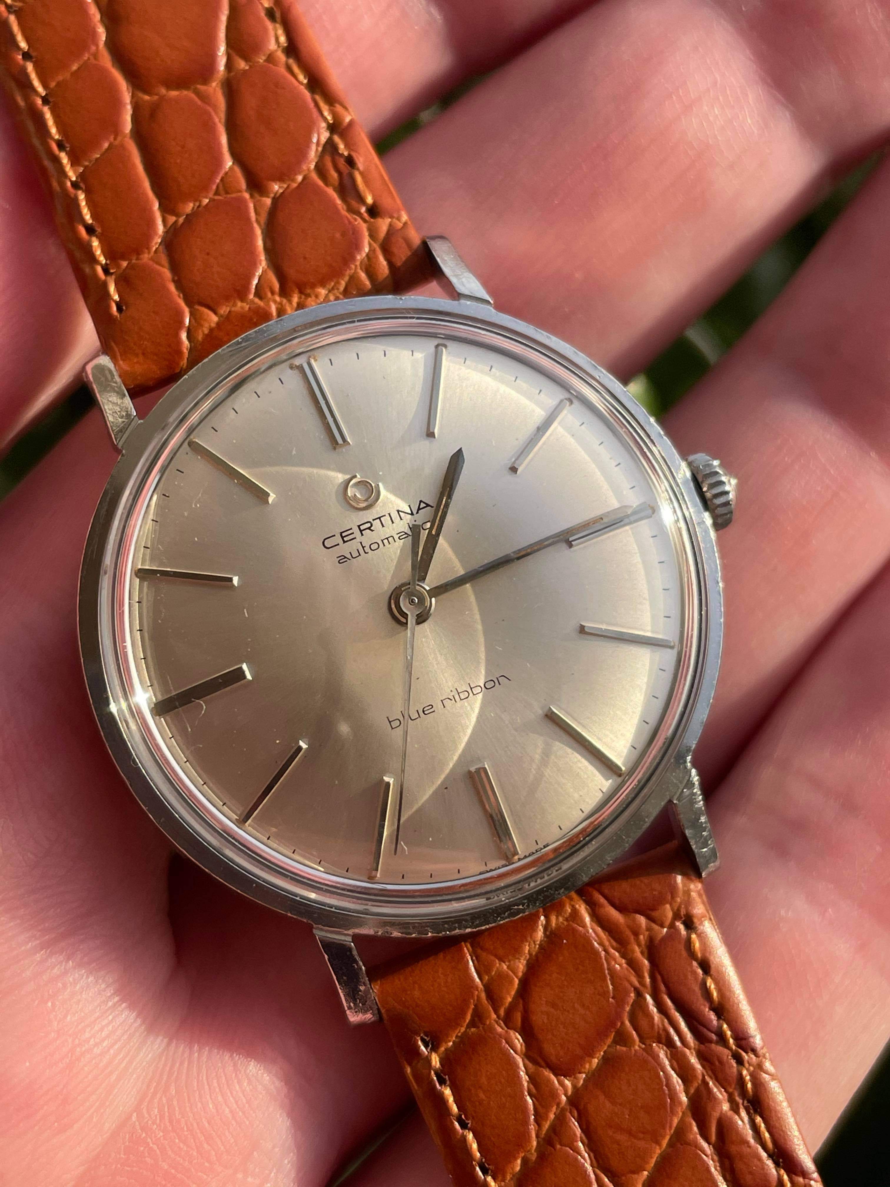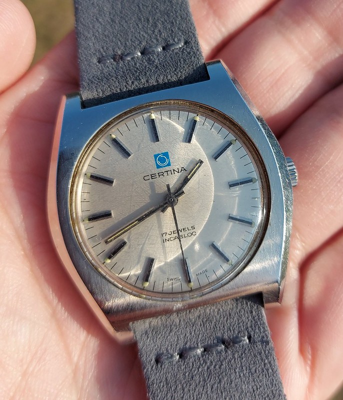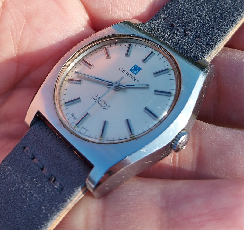The last one is a model I've had before, a Certina Blue Ribbon. It was Certina's dress option at the time and has an excellent automatic movement (same as the contemporary DS), a beautiful dial and screw-down caseback on the steel case. A Seamaster DeVille for a third of the price.