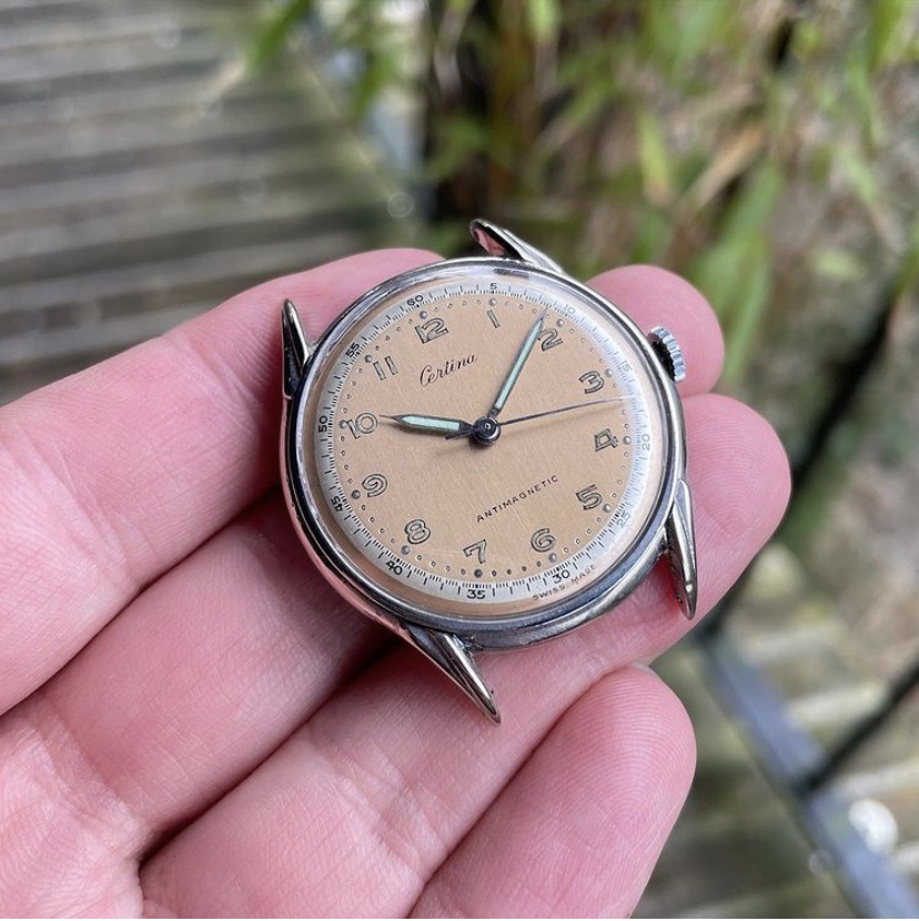 Certina New Art - cal. 25-66. Hidden in a monocoque, but at least with a probably original Certina strap.