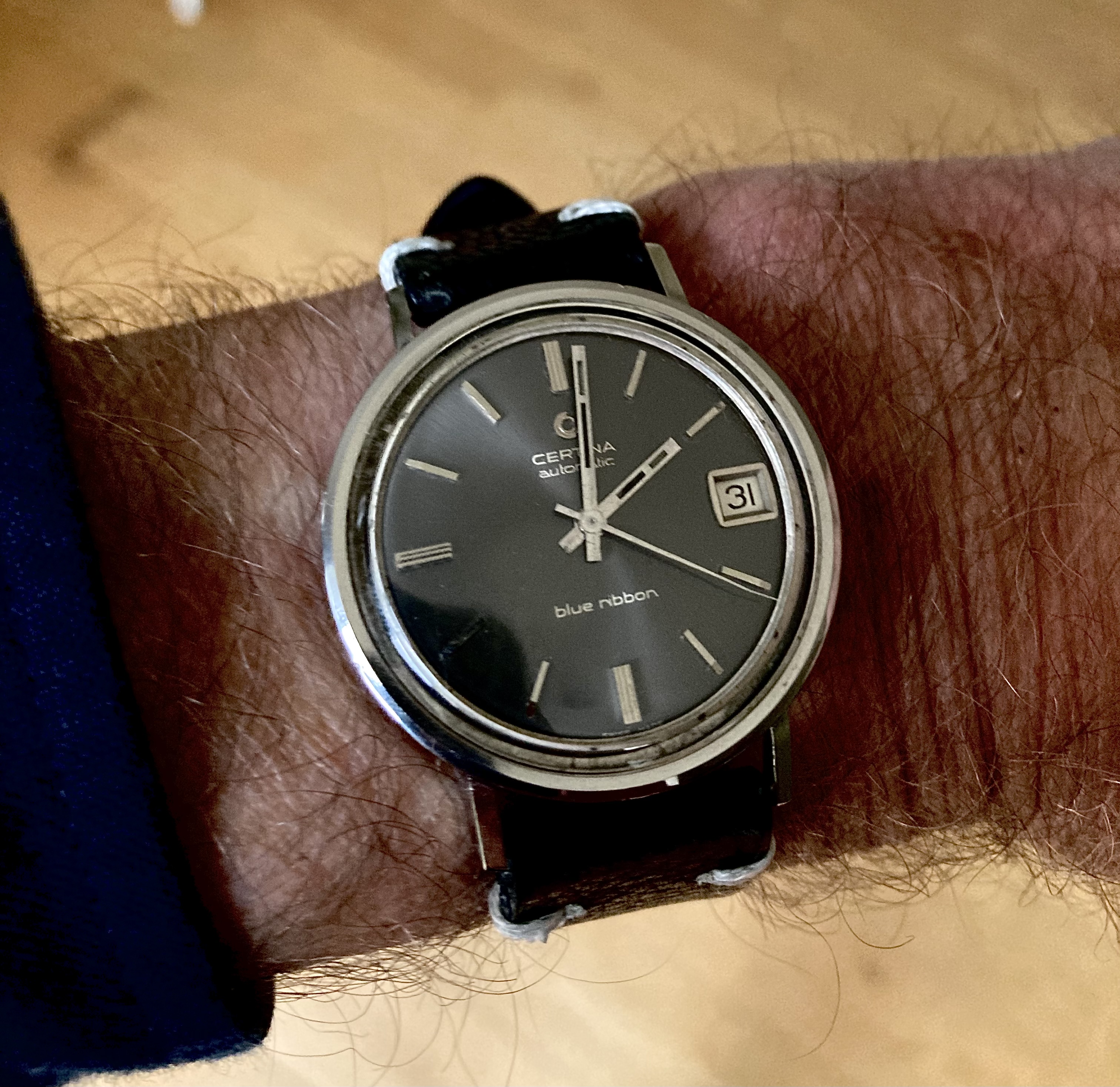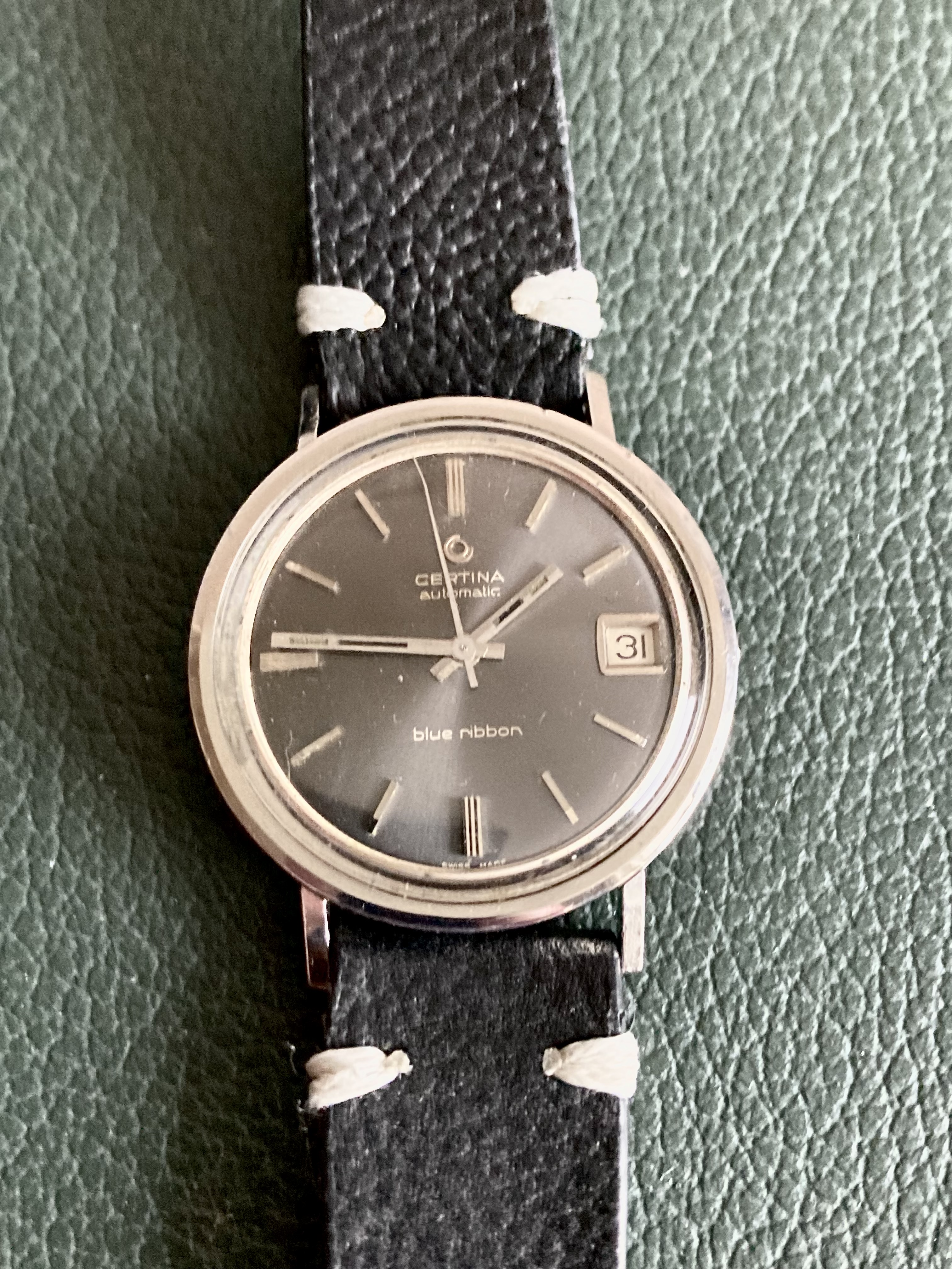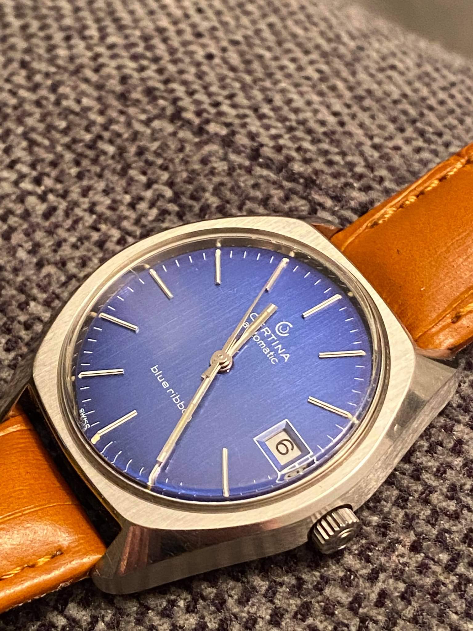 Certina blue ribbon, they were given to Volvo employees in 1977 due to their 50th anniversary.
