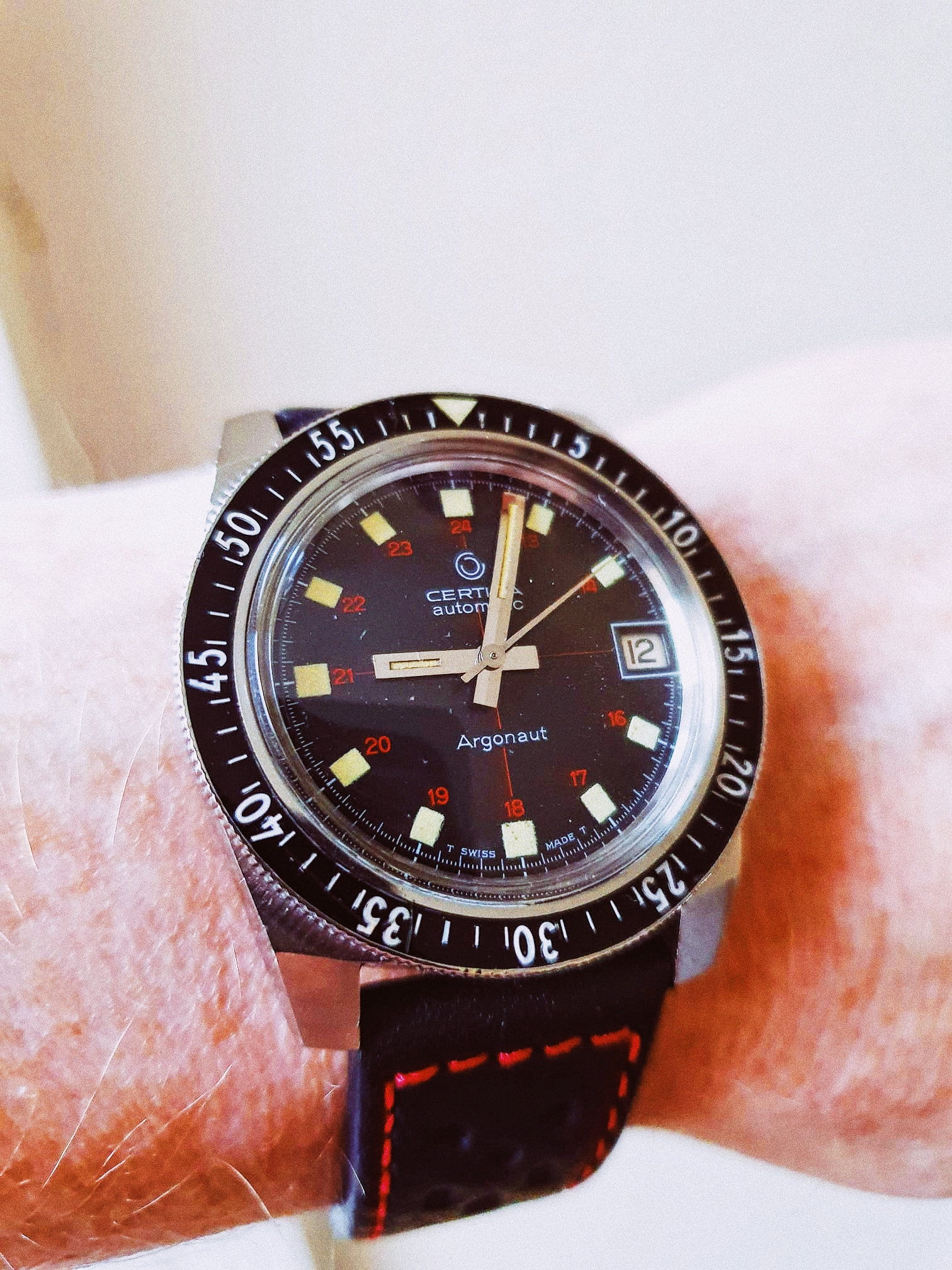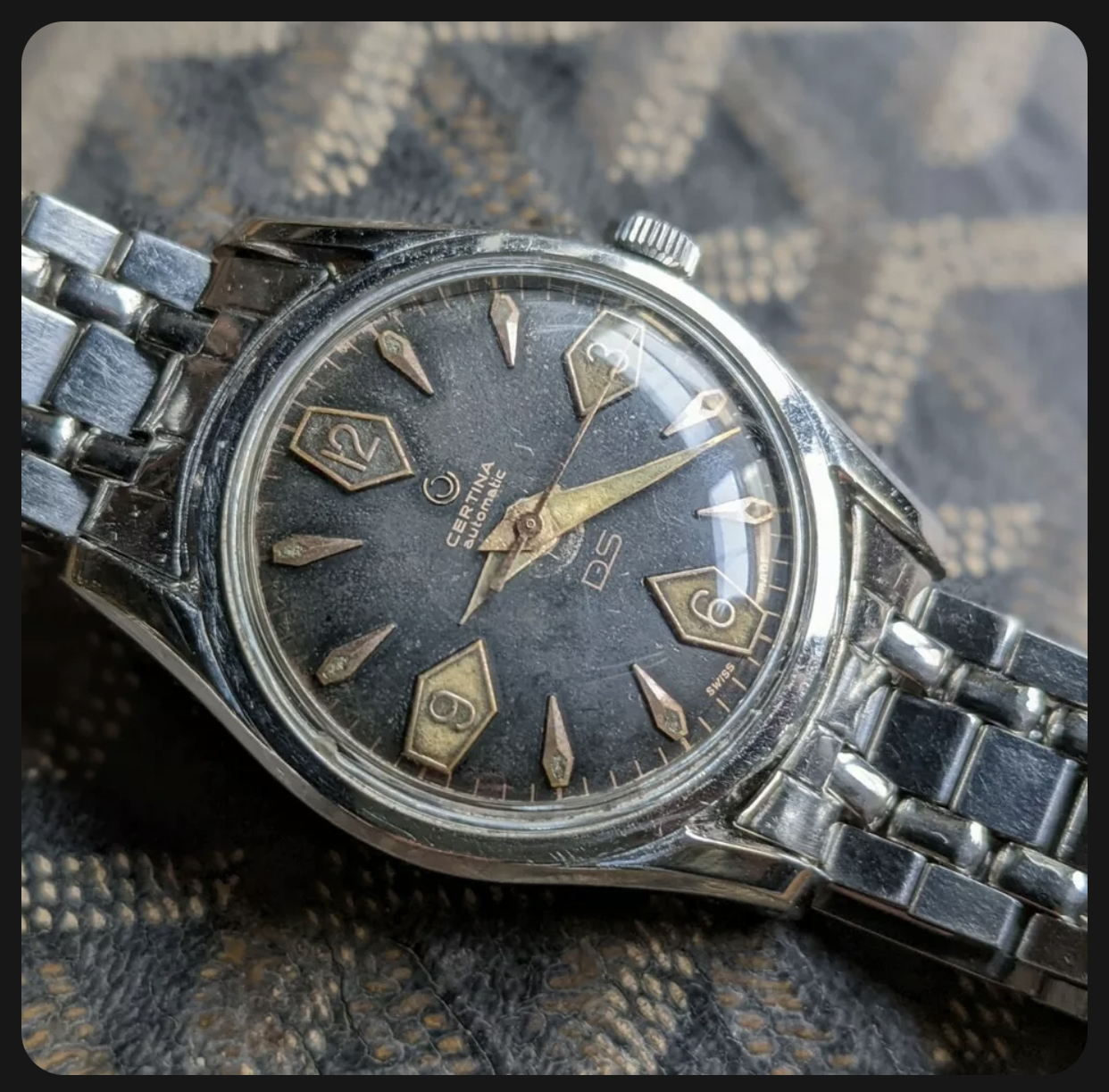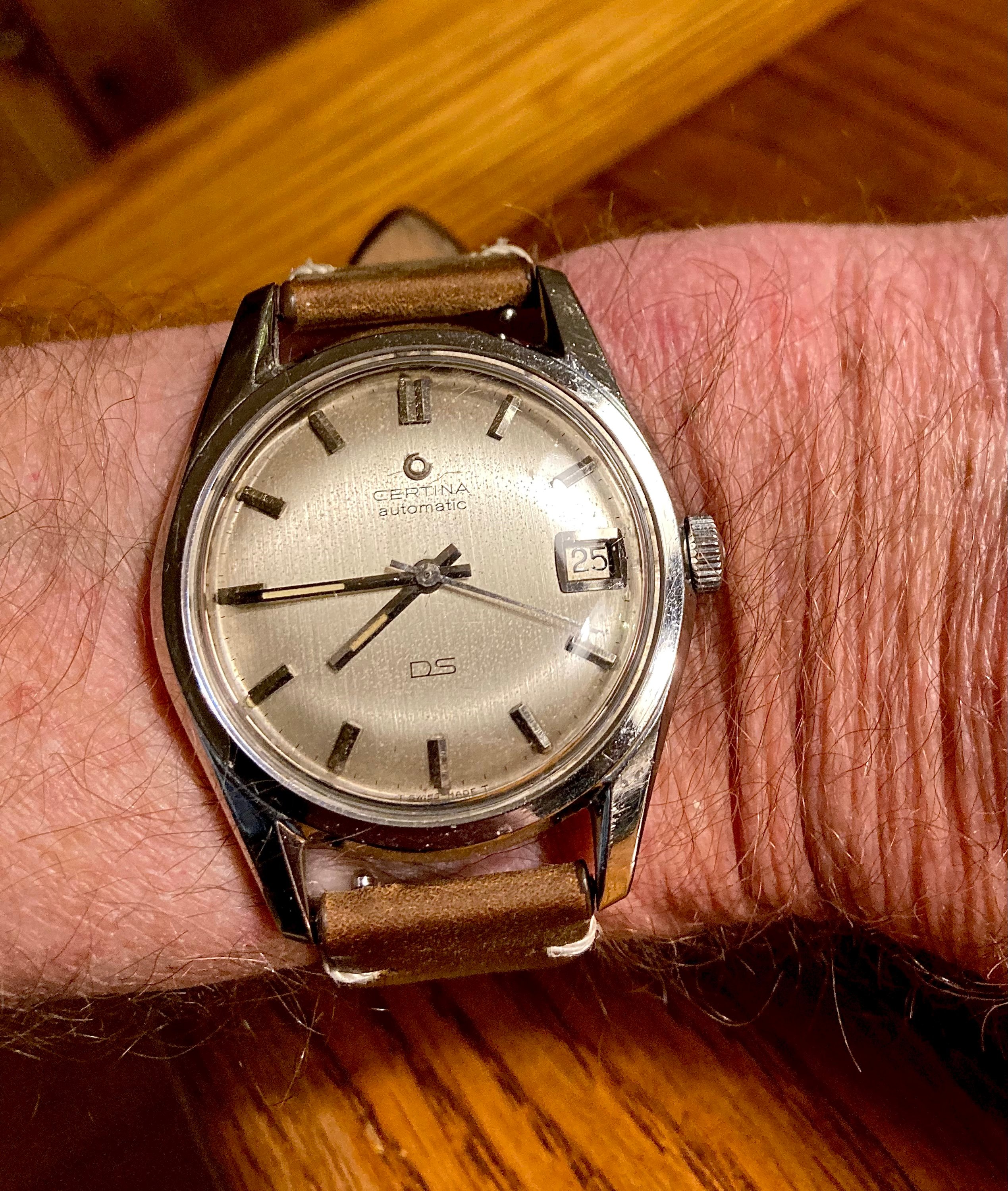 I’m having a hard time finding if this dial is legit for a DS1 with a 25-45 movement.The lume looks legit (hands are definitely relumed though) but I can’t find a similar example of a dial like this, kind of matte with an underline between certina and automatic.