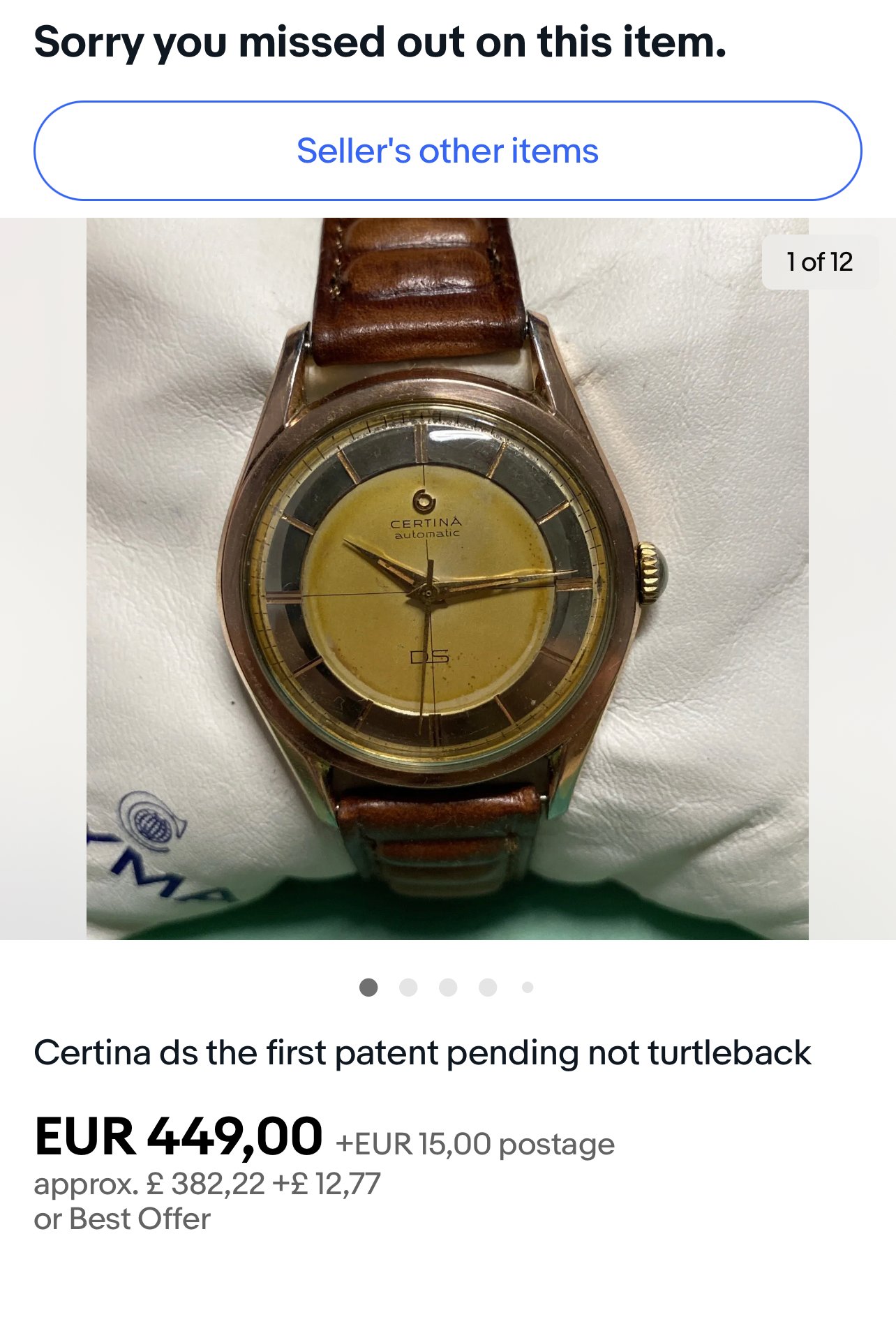 Just saw this Patent Pending sell on the bay. As pointed out by Troels earlier in the post it’s an unusual red gold plated variant. 5604 003 with a nice early reference from 1959. Unfortunately the case back was pretty scratched up.