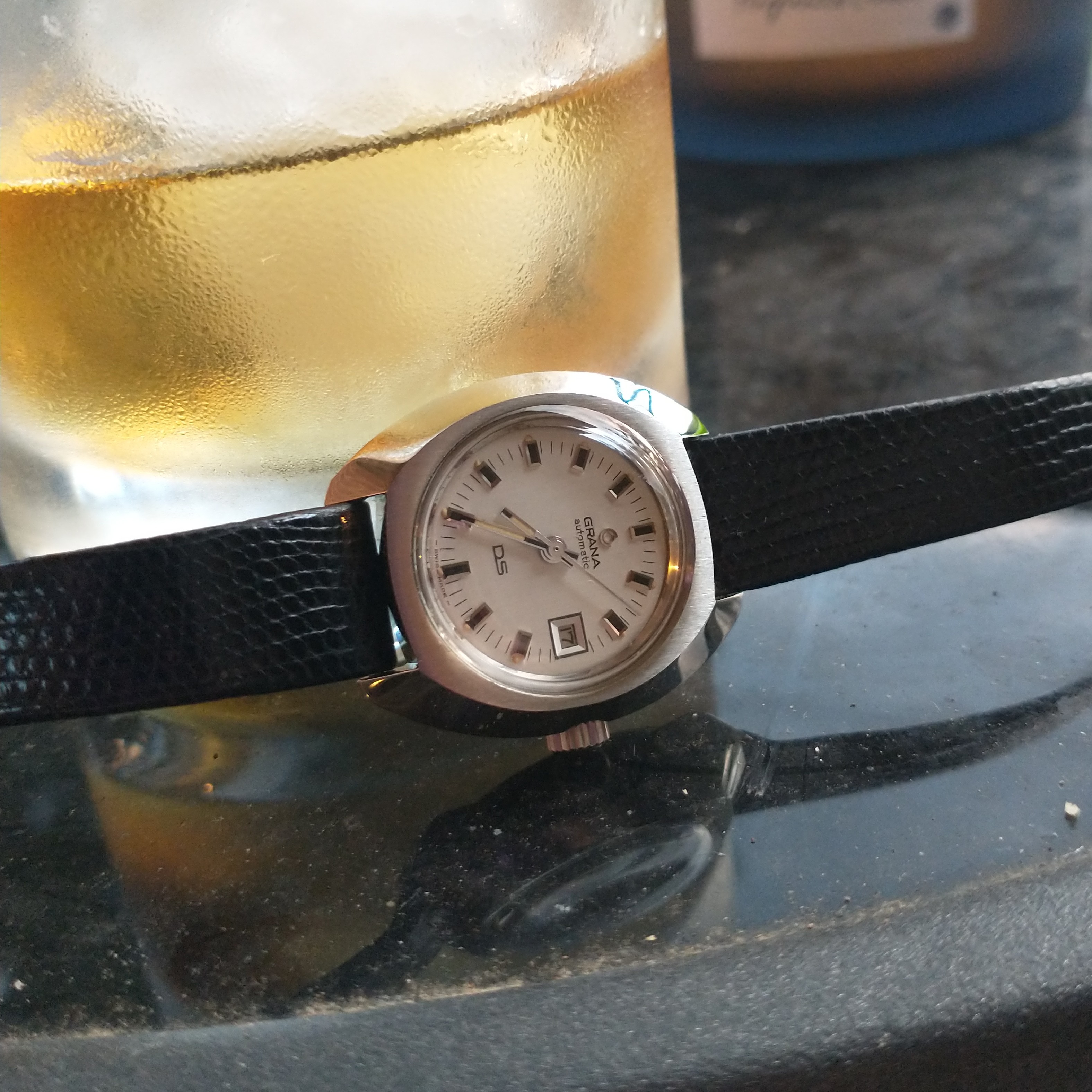 But no. It stays. This thread has convinced me to rethink my rash decision; besides, it looks terrific on my wife’s wrist and better it gets time out of the box on her wrist than languish waiting for me to embrace smaller pieces. The OF enabling forces win again. What’s next, I wonder? A DS, perhaps…..?