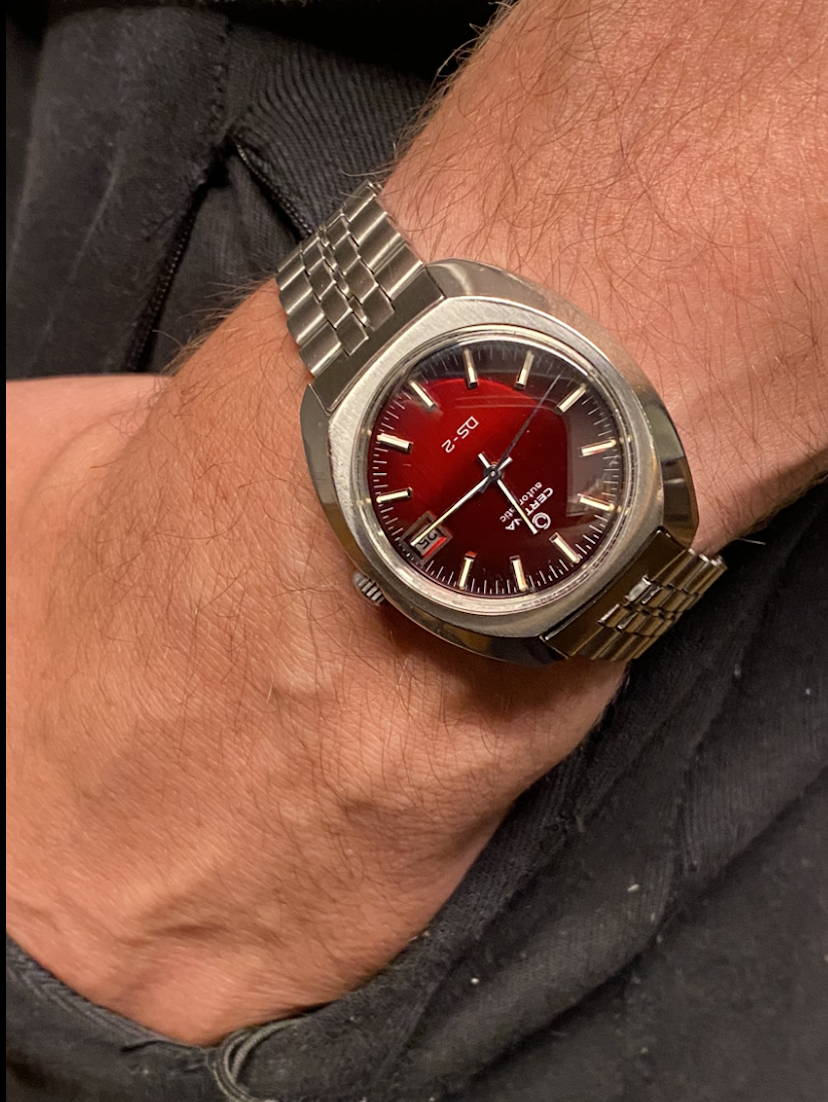 Certina DS 2 red dial on original 6025 jubilee bracelet. One of my personal favs