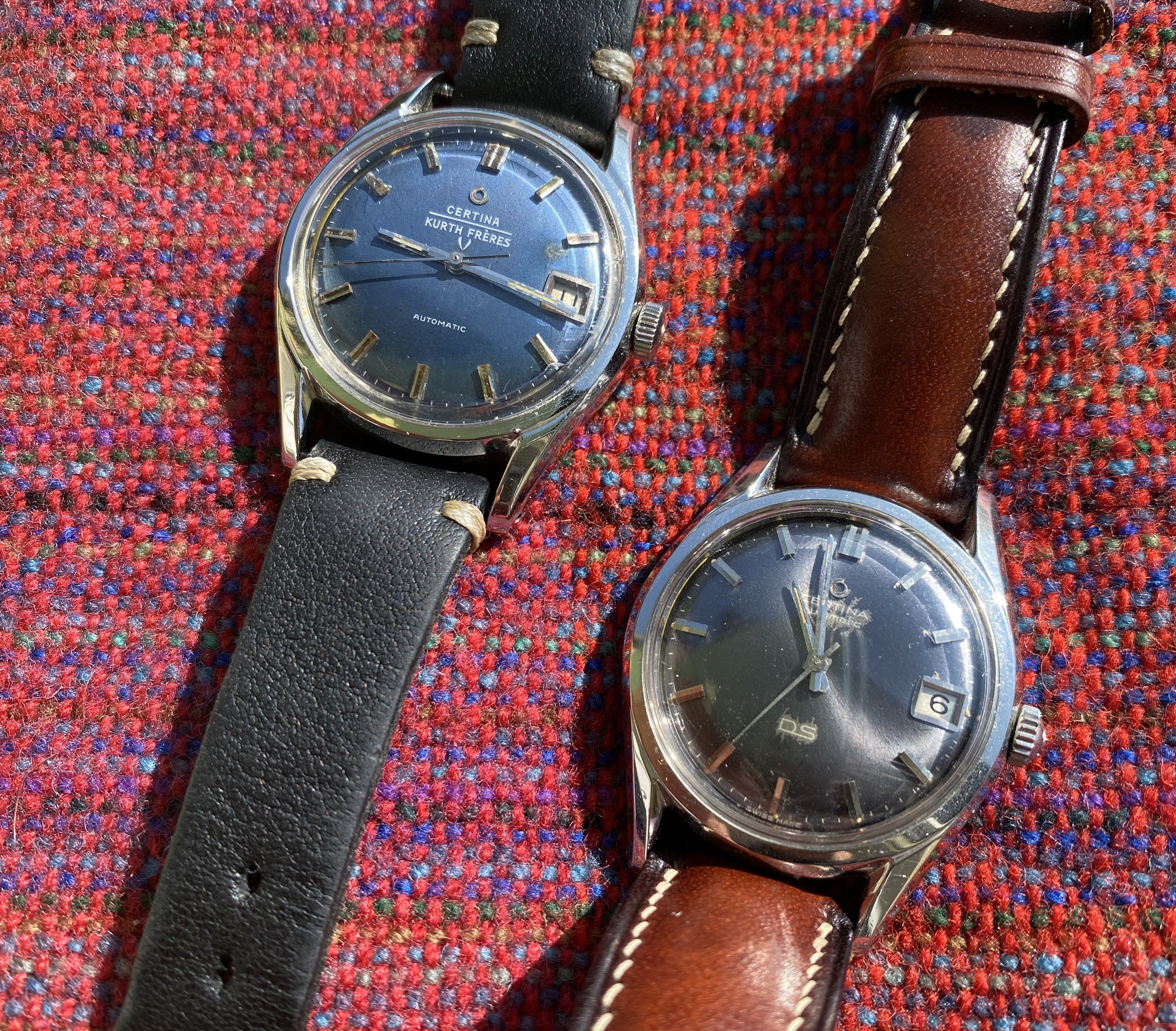 The watch on the right is what I guess was closest to blue, a dark grey dial with a blueish tint.