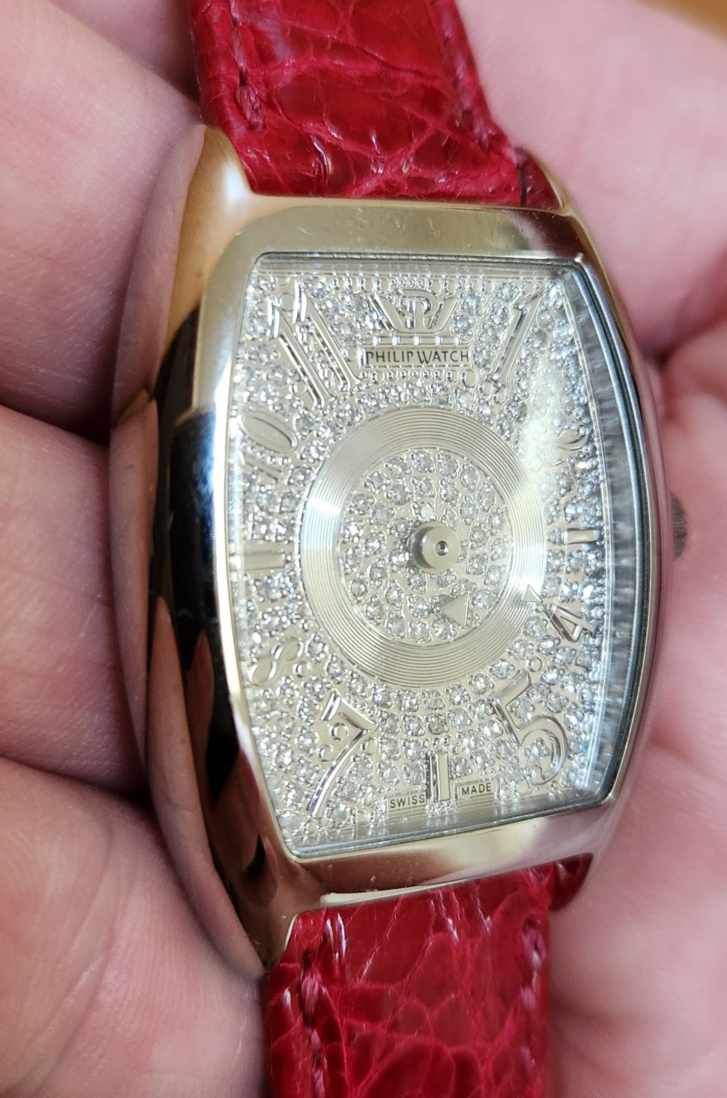 ·I bought this awhile back in a lot of watches and always considered it junk as I didn't know the brand and thought it was fake.... well the other day just out of curiosity I had it tested and they are all real diamonds. I did research on Philip and I guess they are somewhat popular in Italy and a somewhat decent brand. No idea how much it's worth either. How many of you would wear this? Too much bling?