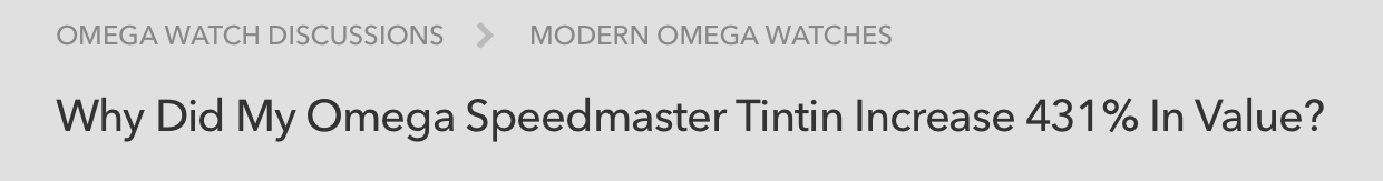 Visit Why Did My Omega Speedmaster Tintin Increase 431% In Value? to read the full article.
