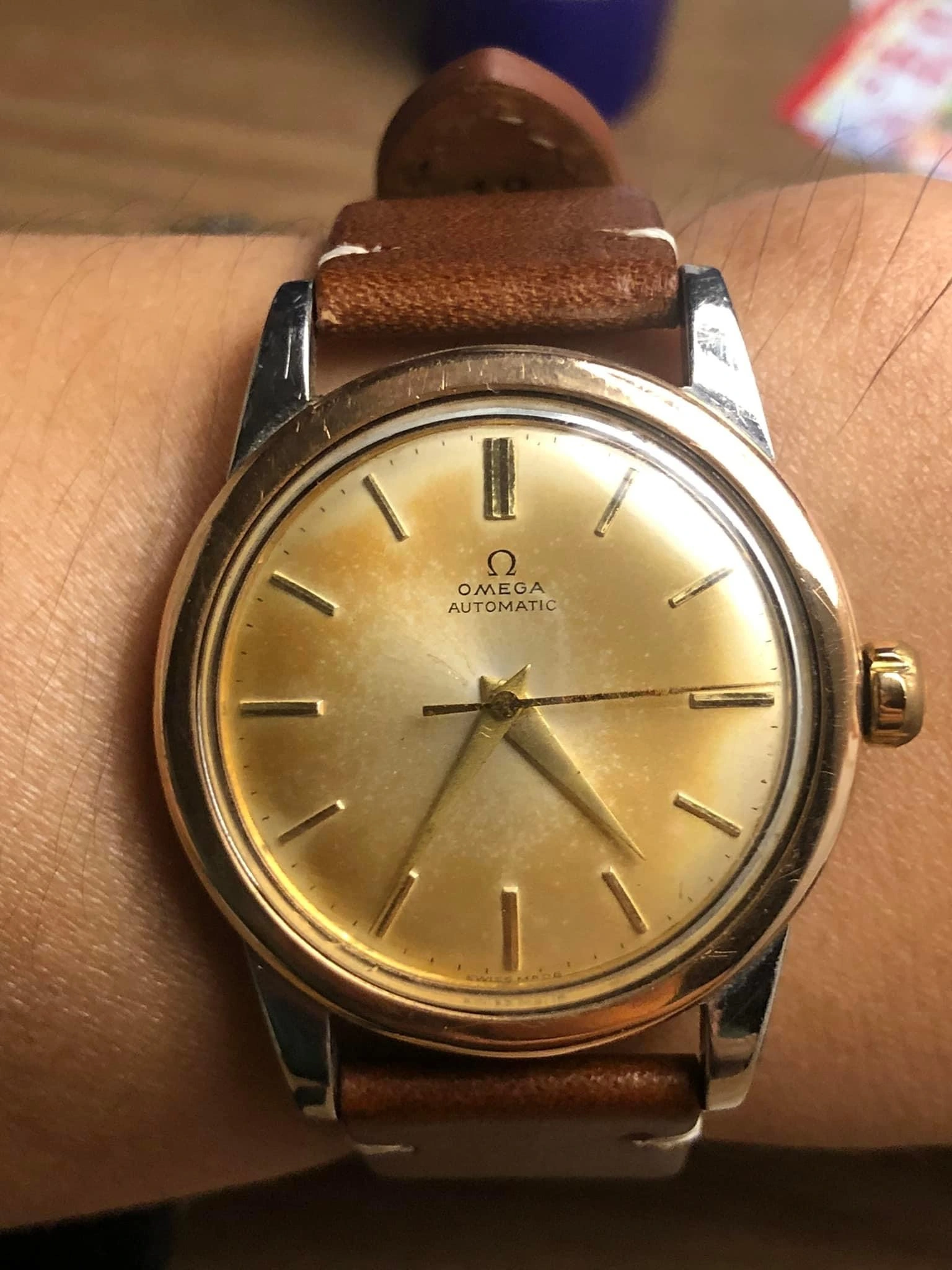 As @cristos71 says, brown even dials are what I call tropical- as in the dive watch and the chronograph below.