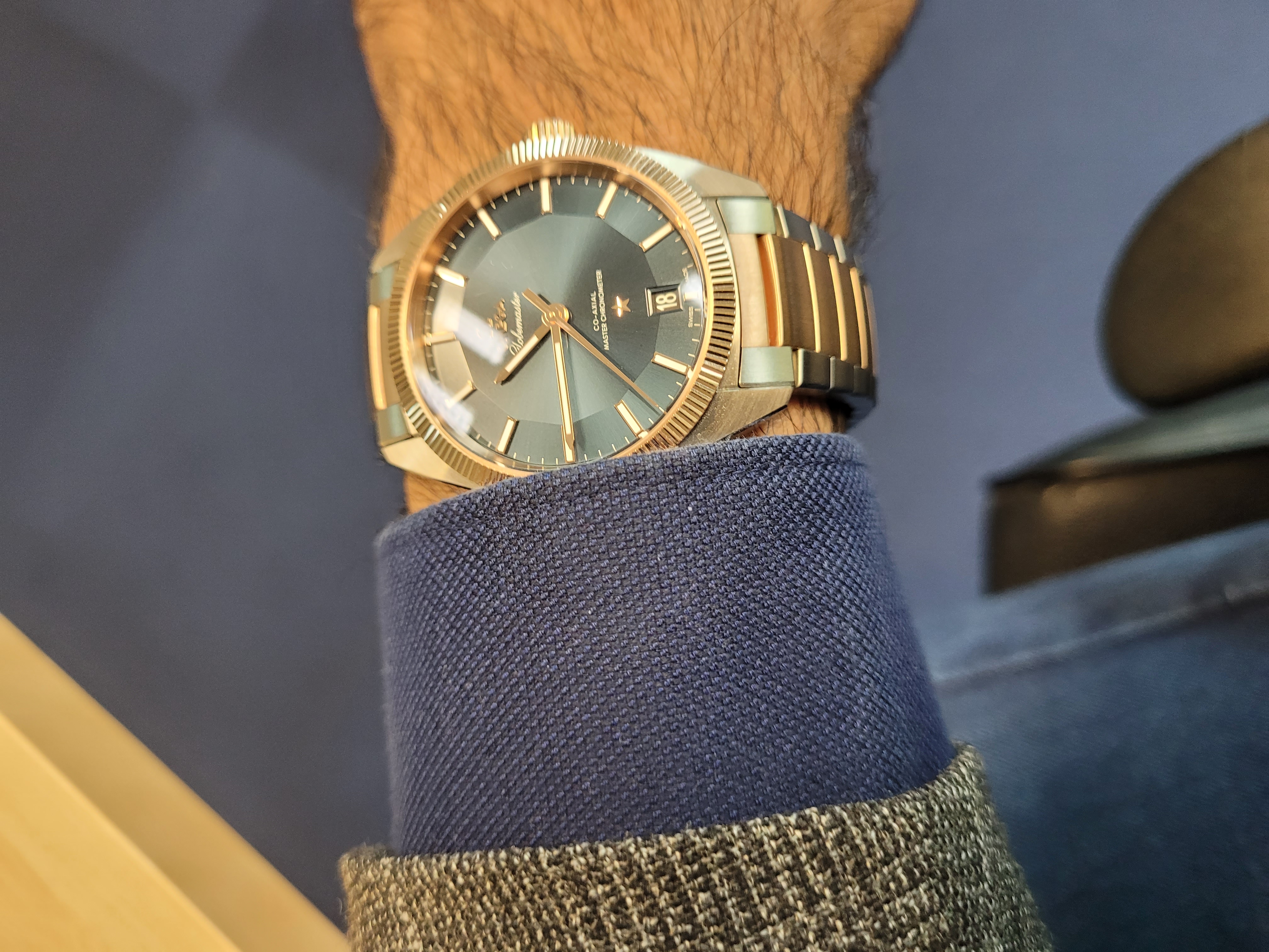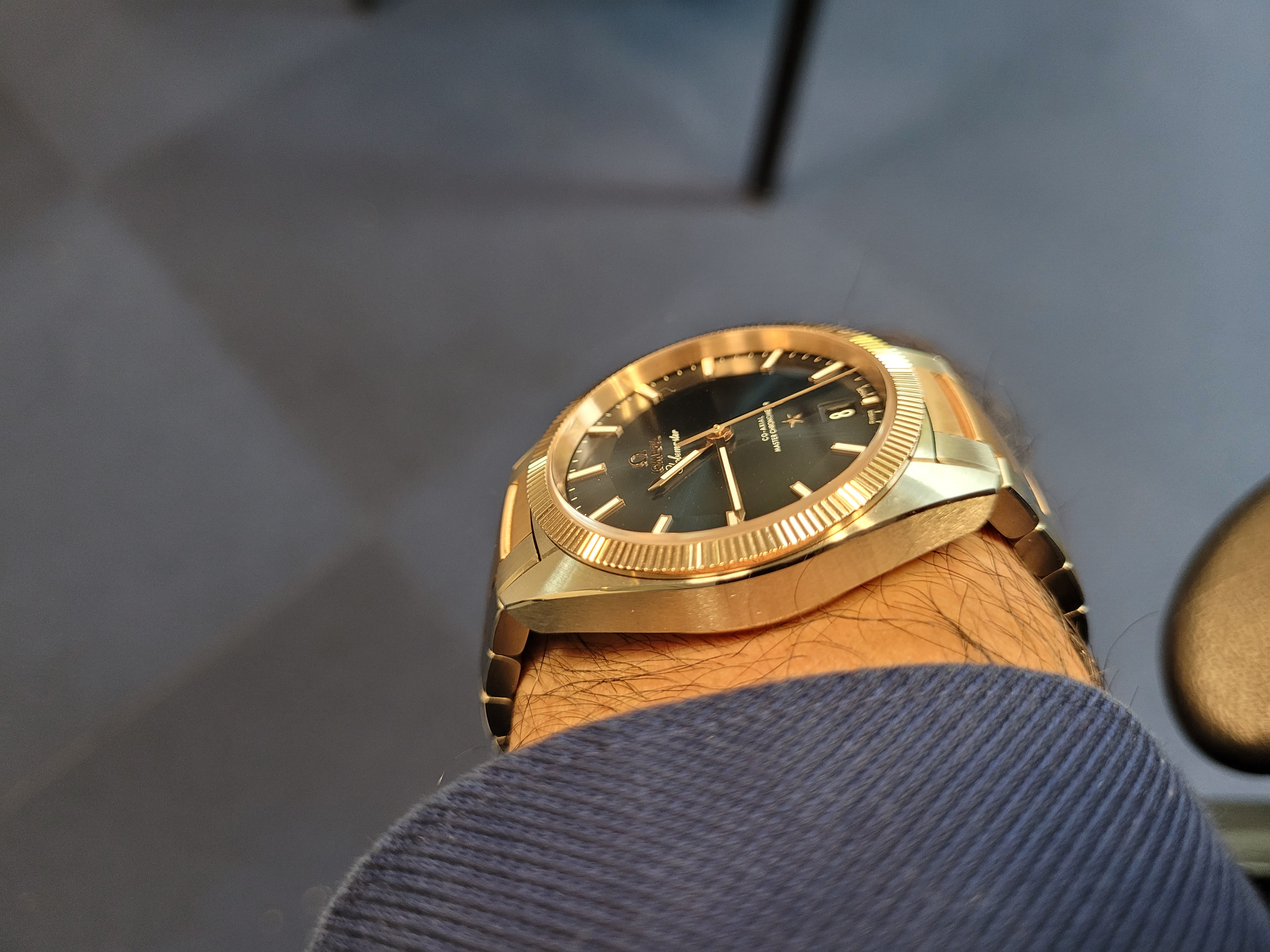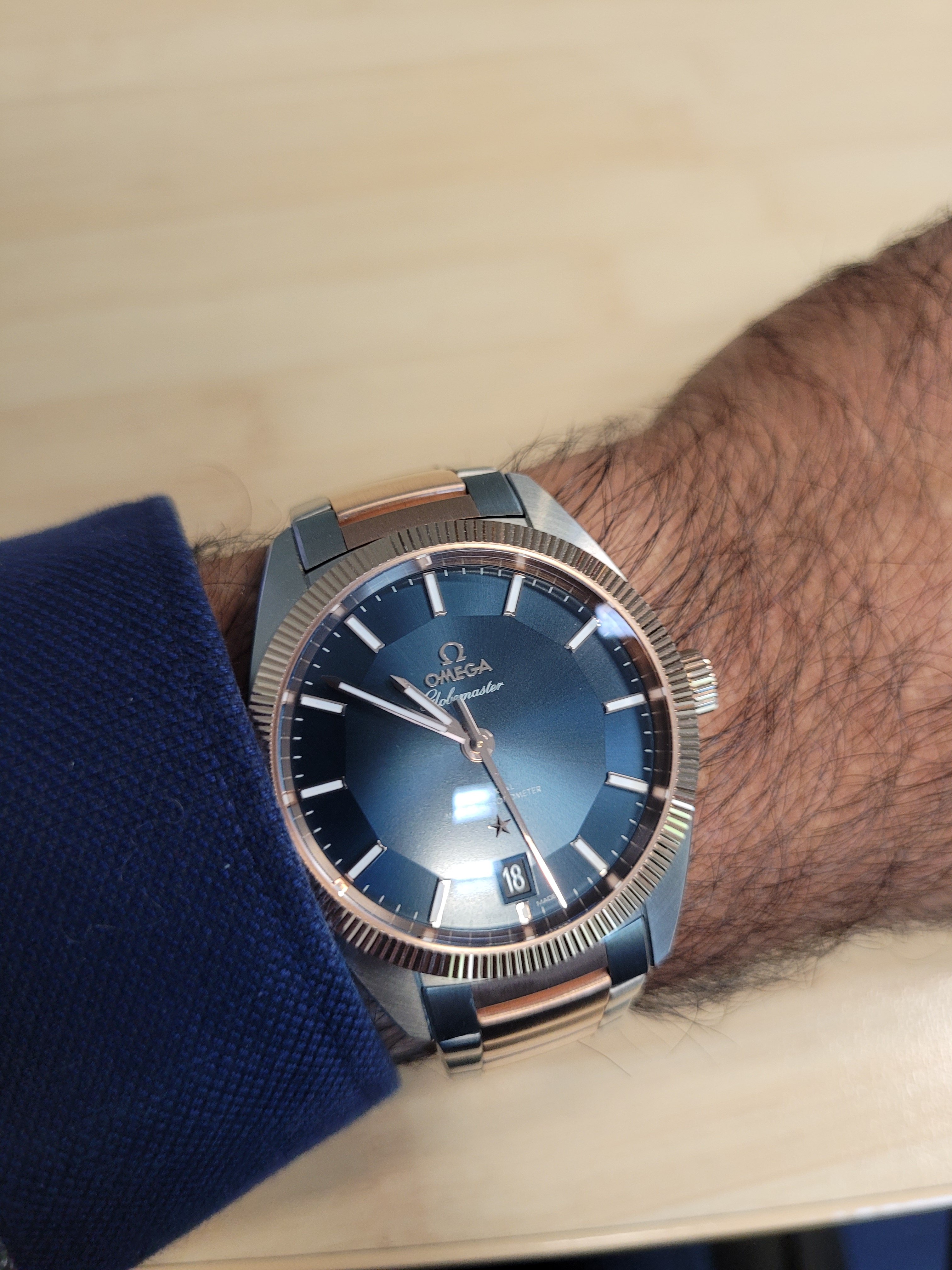 @gbesq Its true that it isn't one of Omega's best bracelet executions. I would have liked to see better finishing in the areas between the individual links and the addition of a micro adjustment clasp. However, I do like the design. Its substantial and balances the weight of the watch (especially with the gold center links). I also like that the center links are large and slightly curved to follow the case shape. The shape of the links is quite well thought out ergonomically (they are trapezoid shaped being smaller at the bottom allowing them to flex around the wrist with tighter tolerances on the top). All the links are independent and I prefer it to Oyster bracelets (which I also own). Its a clean design and I find it comfortable to wear.