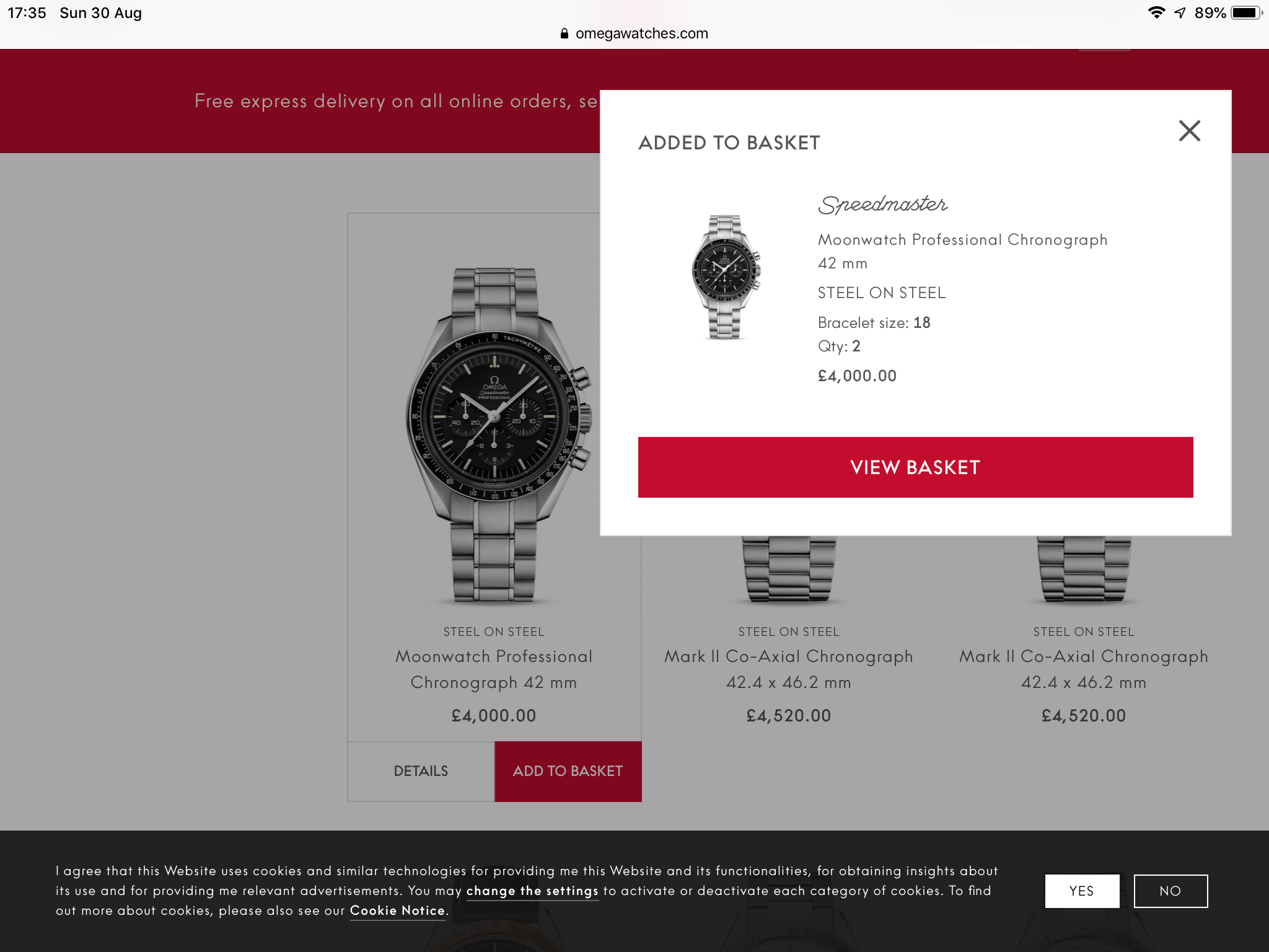Won't let me add it to the UK basket/checkout as of 8:40pm August 30th - it just says contact a boutique about this piece (both the hesalite and sapphire).