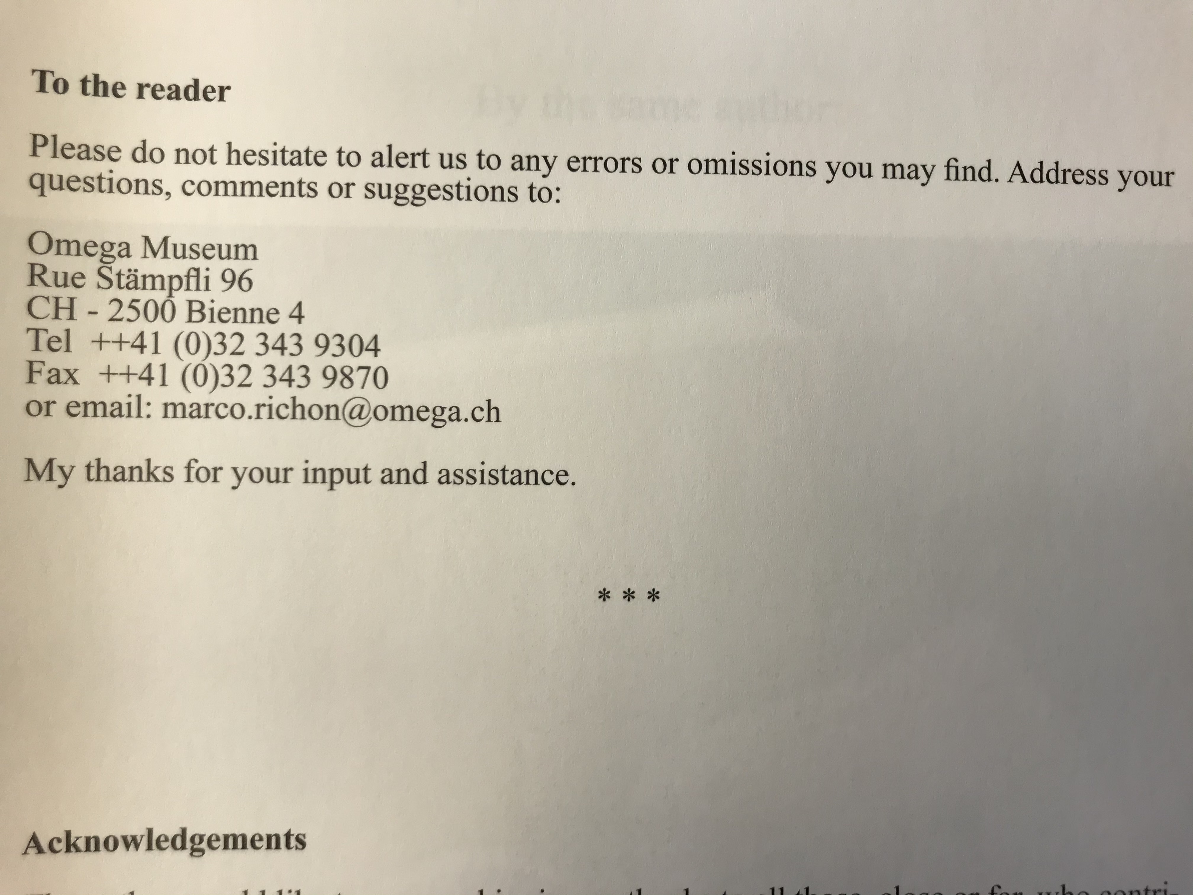 As to errors and omissions (what the hey, in view of the enormous quantity of information), OMEGA are gratefully asking for comments.
