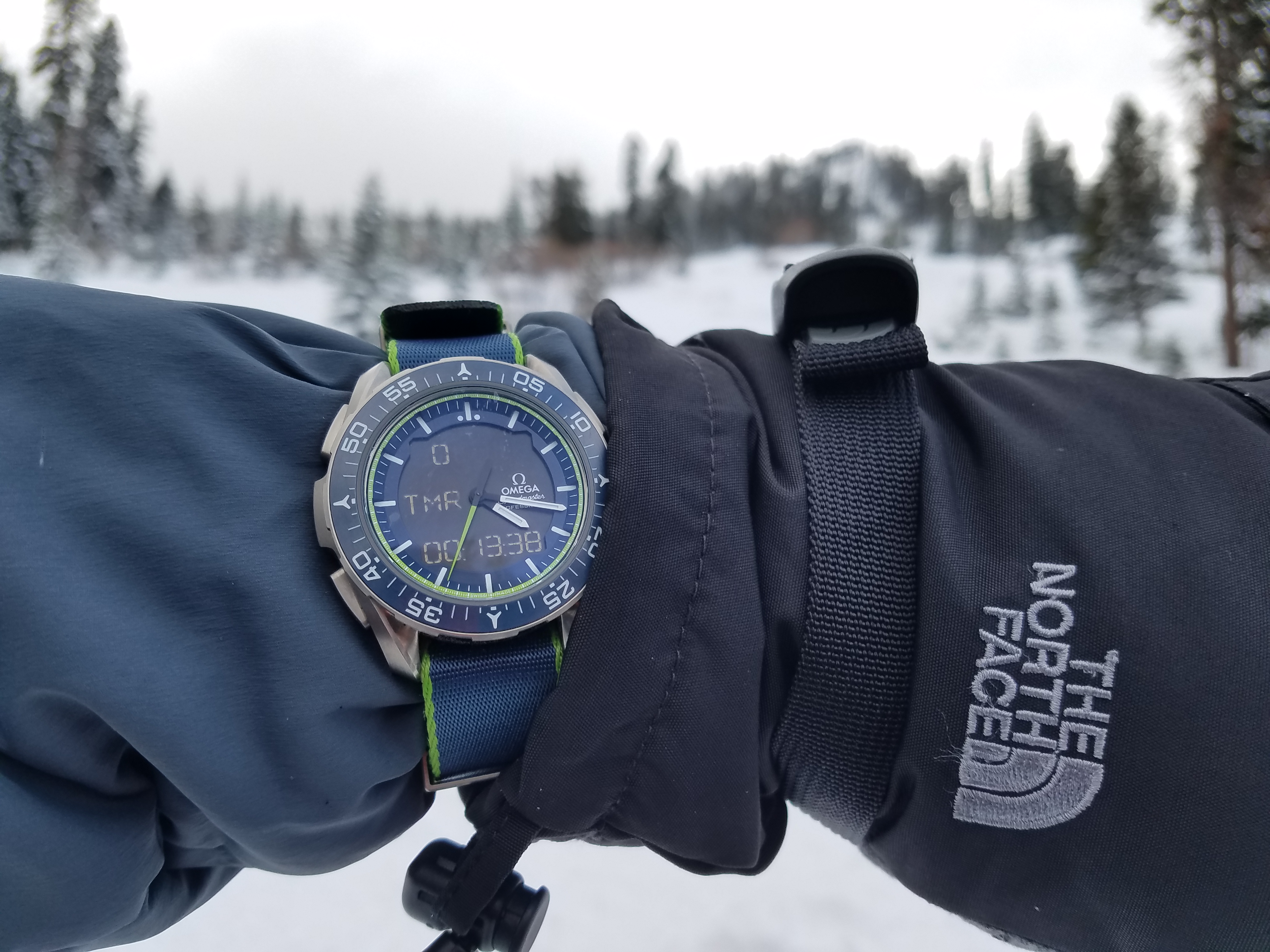 Of the size of that Titanium case. The contrast between case and strap I think does make a difference. So the ? Is New or Used. A near mint is not that far off the price of a new. Hmmm...