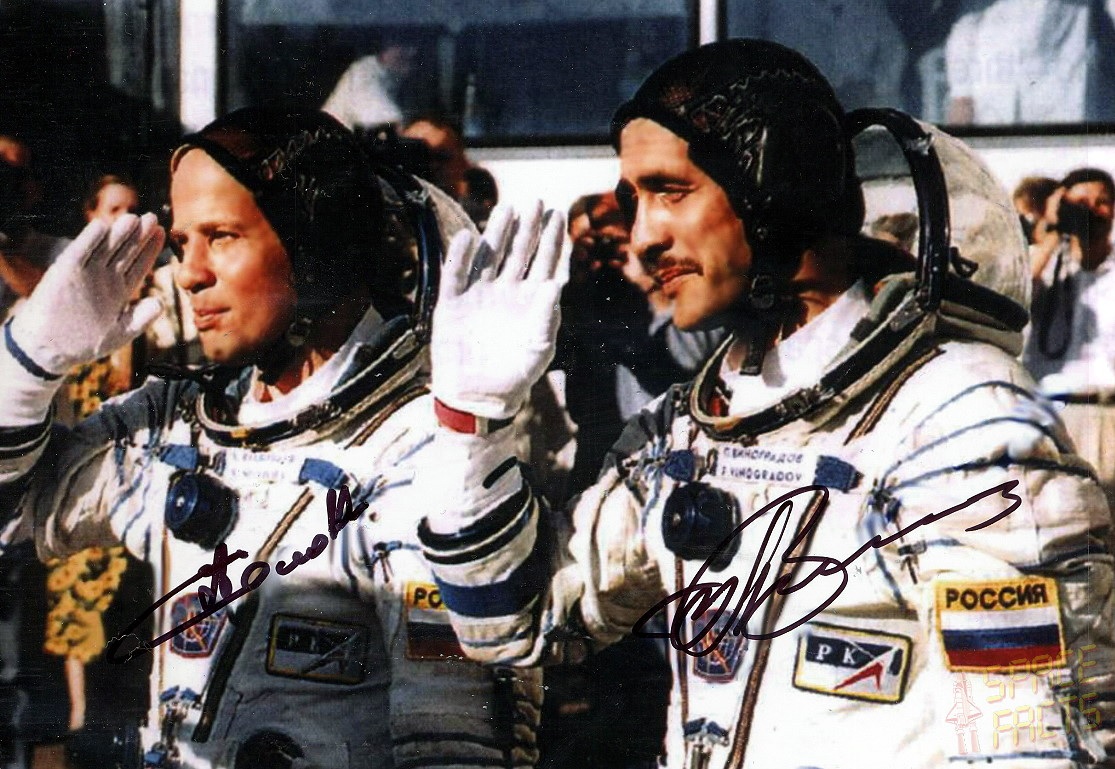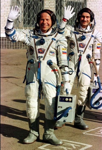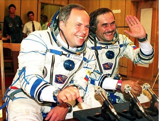 Soyuz TM-26: cosmonauts Pavel Vinogradov & Anatoli Soloyev were launched to the Mir space station in August 1997 and were already 172 days onboard the station. They made up the Mir-24 resident crew and Vinogradov remained 197 days in space