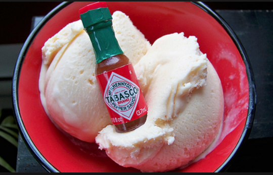 I'm a fiend for hot food man, never tried the Tabasco ice cream but I have bottles of Nandos Extra-Extra-Hot sauce and when I have baked beanz on toast I tip a good 3 table spoons of that in then stir it through the beans for some extra spice.