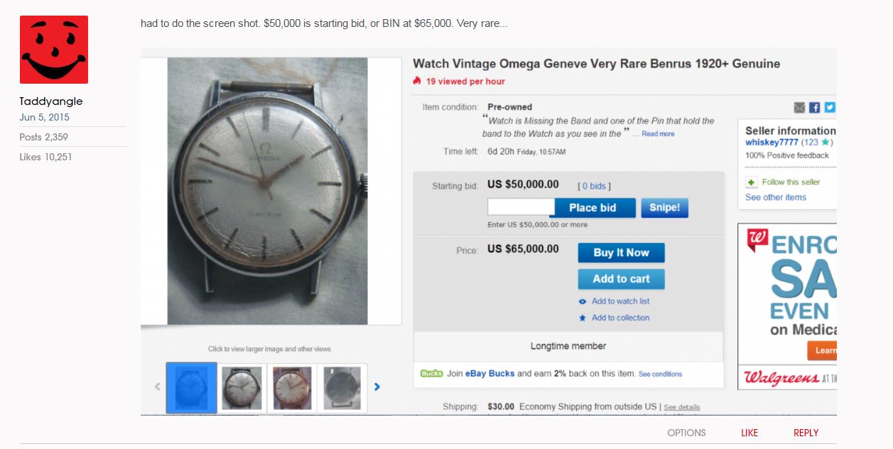 I would never wish to dispossess a fine young man as yourself of his treasures least not of all for a fair price, I am most happy with asking prices for such a rare Omega Lazarus Benrus