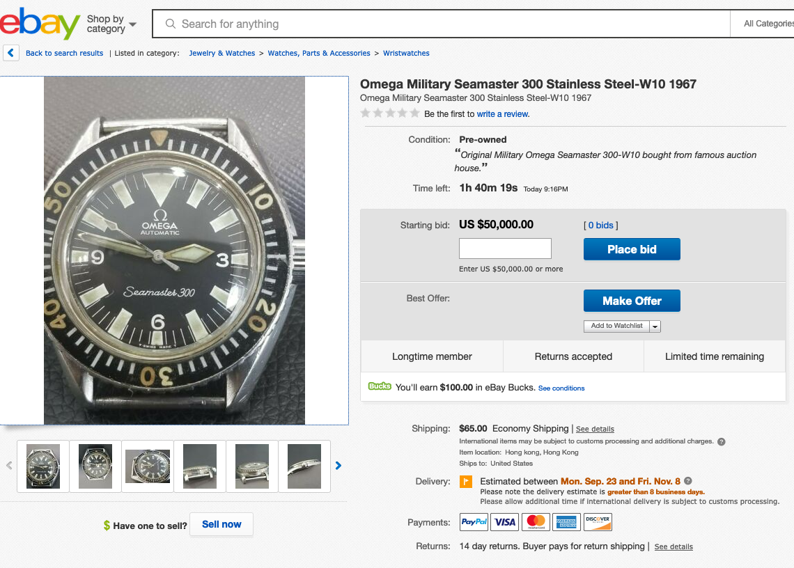 My asking price is $1,800. The watch has been completely overhauled and does keep time. Take into consideration that vintage Seiko Divers now sell for well over $1,500 and Rolex Subs for well over $15,000, the Seamaster is an absolute bargain