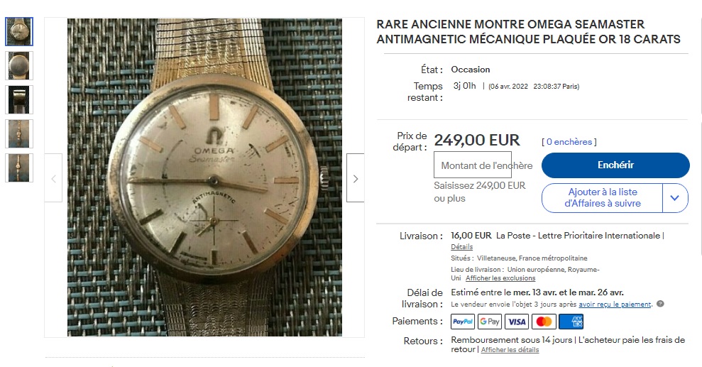 Starting price of 250EUR on this "Rare" gold plated 18k Seamaster if i can read the sharpie handwriting well, can't figure out the bracelet, it is not signed 18k stamped and looks like integrated but how come? 😕