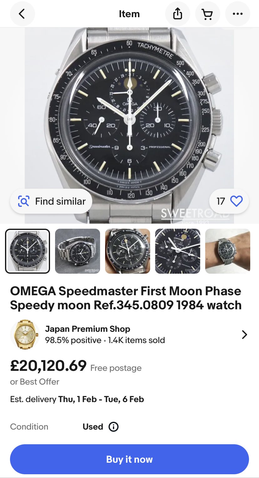 In the market for a Speedy Moon but >£20k / >USD $25k seems way OTT!! And it’s watch only!