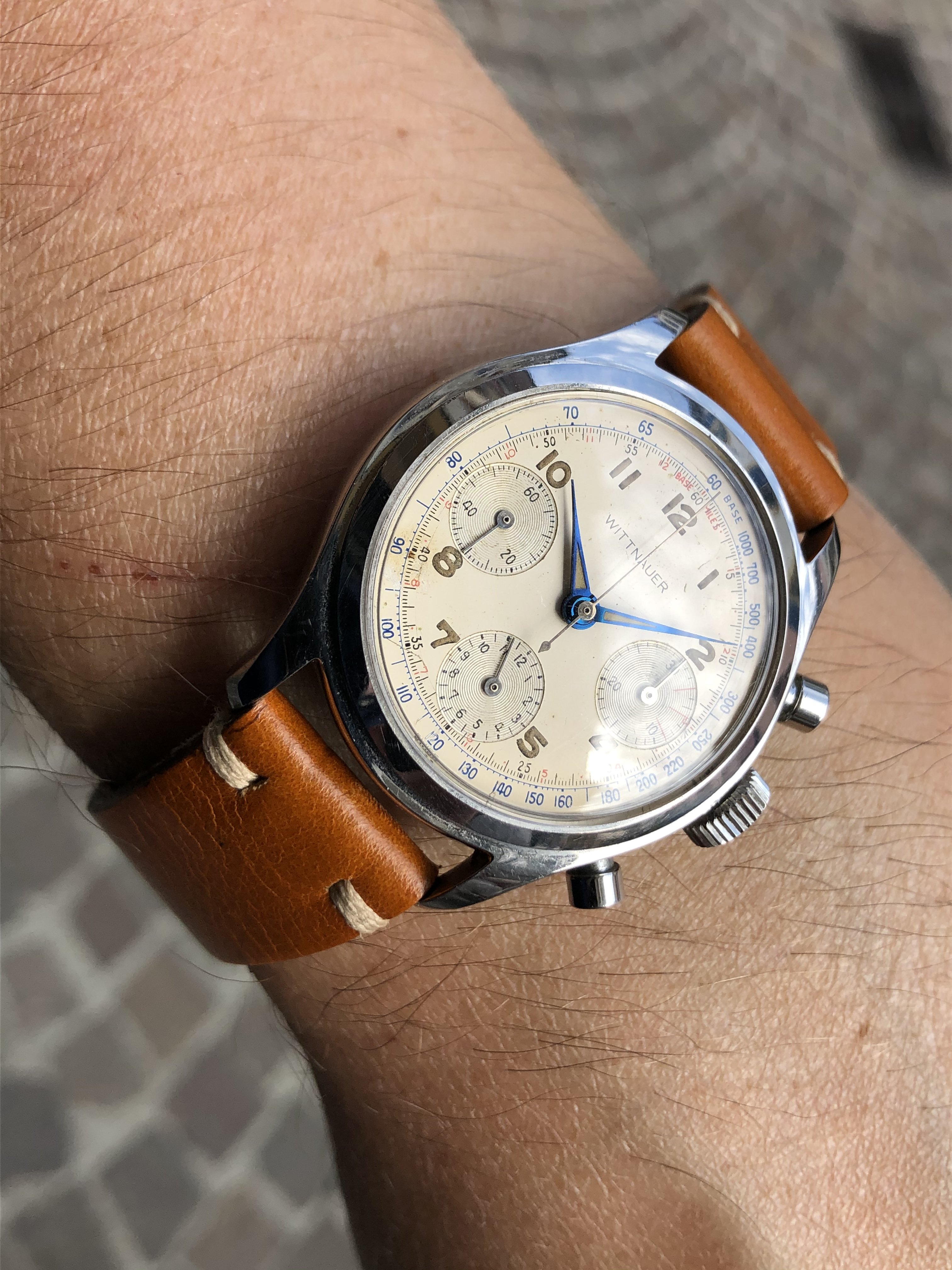 ·A bit surprised there hasn't been more love for the Wittnauer 6002/5 (or 235T as some call it), especially once it was revealed as one of the (failed) potential moonwatches NASA tested. A Valjoux 72 and a beautiful dial with amazing blued steel hands - what's not to like? Here are a few pics of mine: