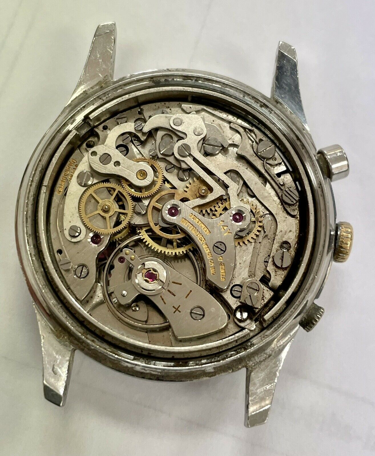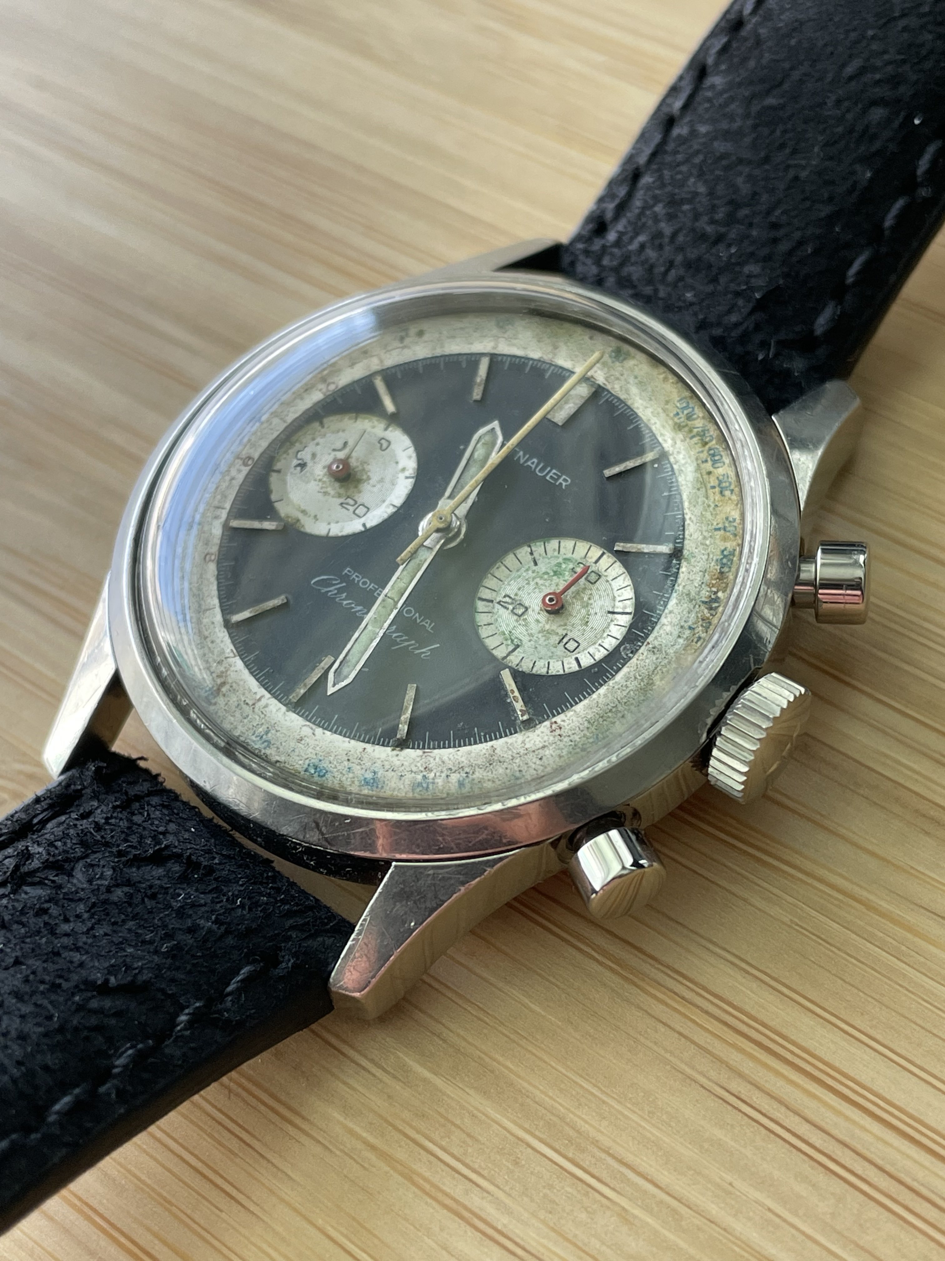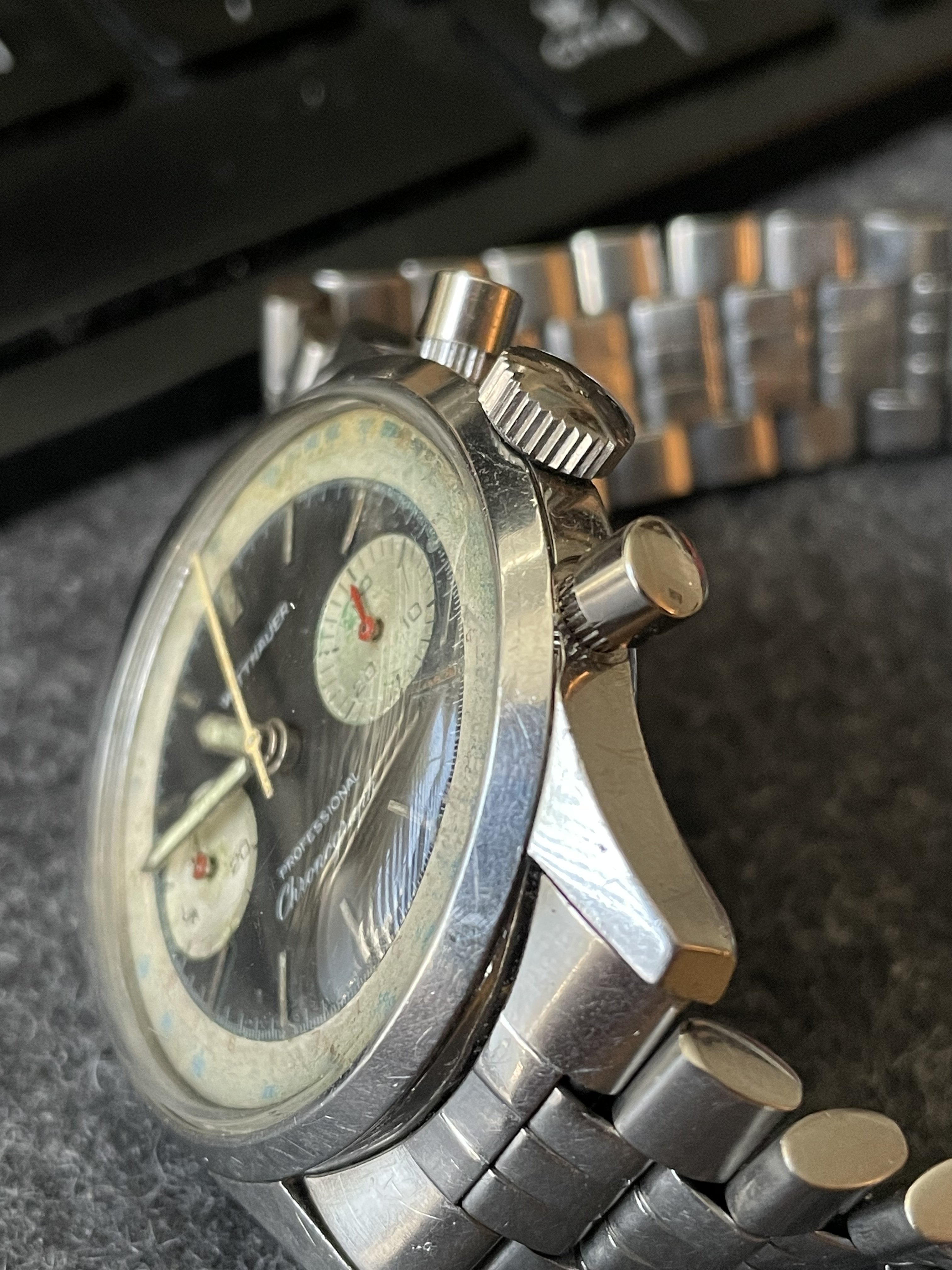 Where I'm run into a road block and am now coming to you all for some help is for a pair, or at least one, of chronograph pushers (preferably NOS but I'll take what I can get). I'm not sure if the pushers are stainless steel similar to the case so if so, stainless steel would be preferred as well. Is anyone aware of a source where I could find these from?