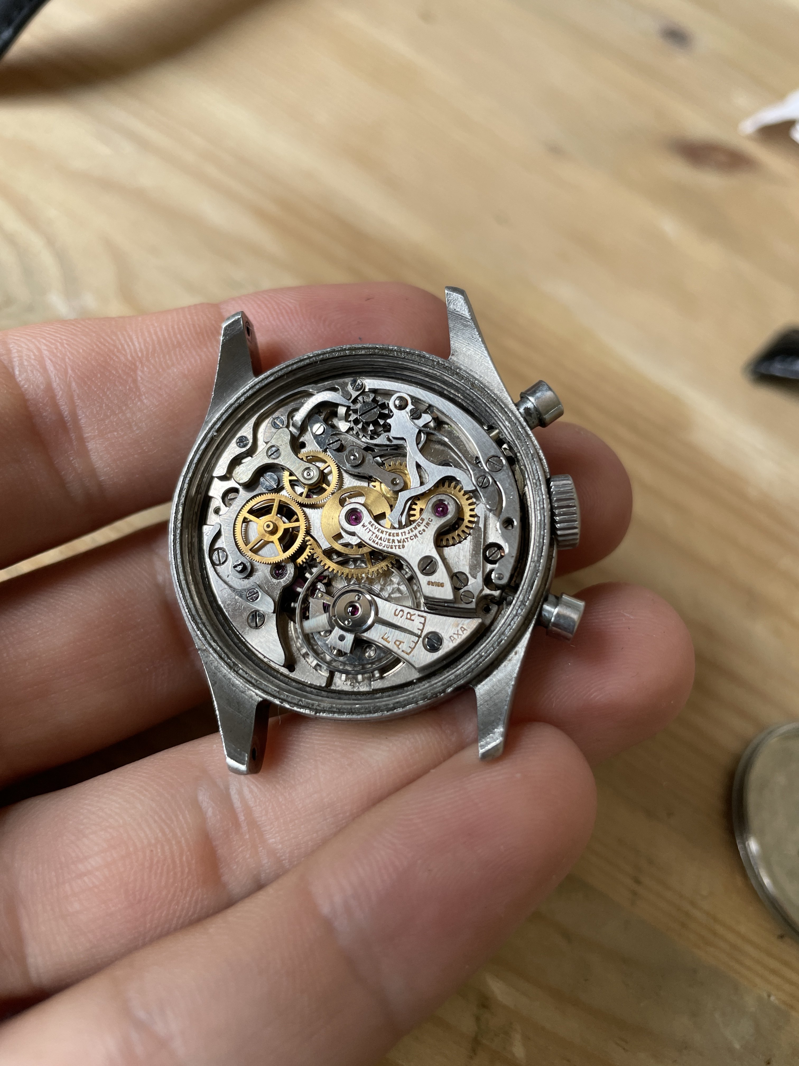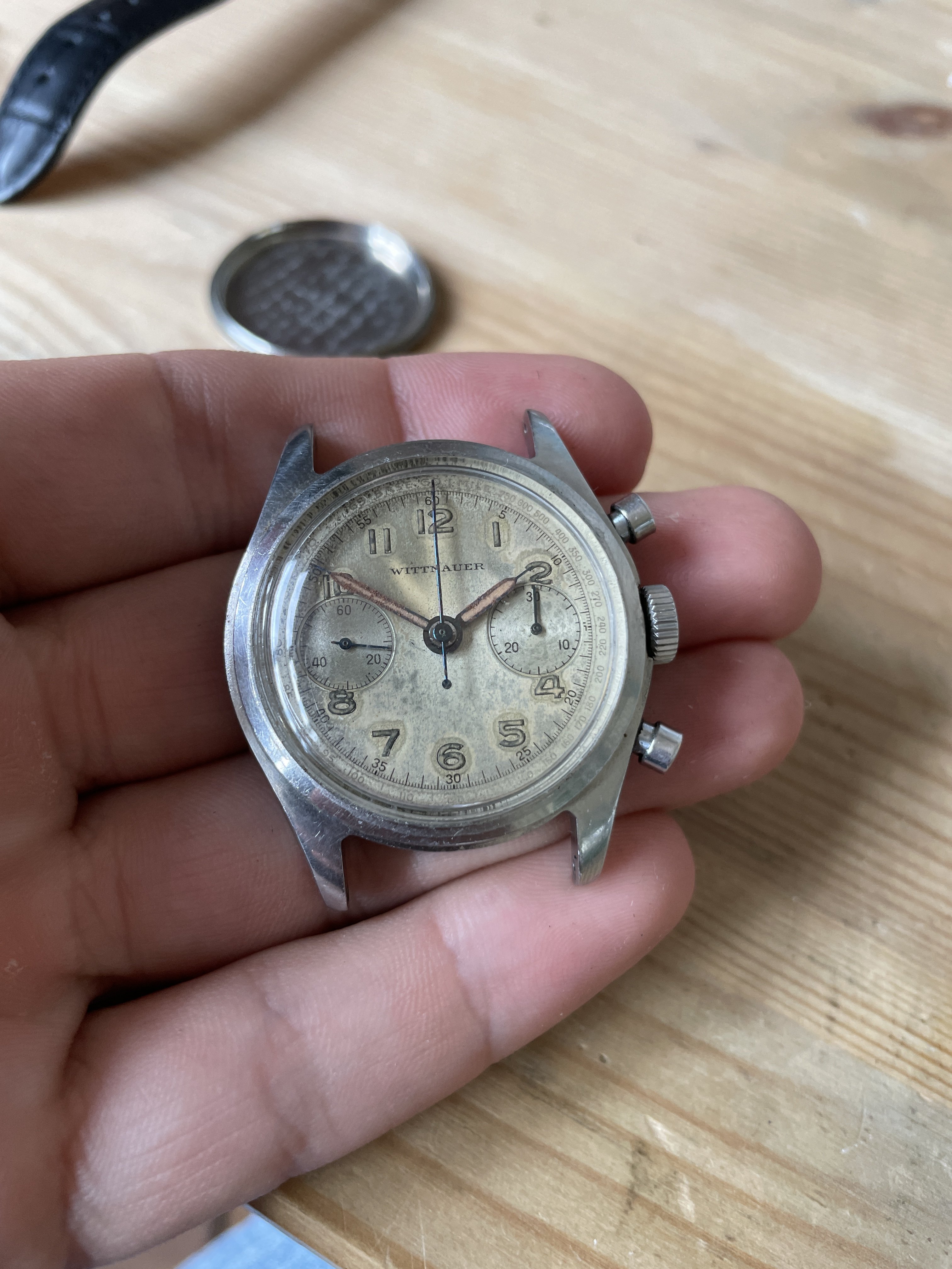 ·I recently got the chance to acquire this vintage Wittnauer chronograph from the 1940’s. I don’t know much about it, and was curious if anyone here can share their knowledge on Wittnauers of this era and in particular this example/movement. The dial is heavy damaged by radium etc. Movement looks really clean!