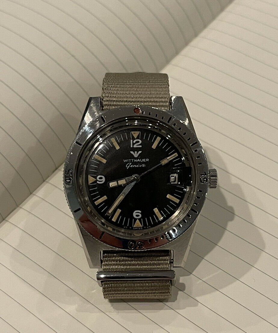 I've been on the look out for a good condition Wittnauer 4000 Skin Diver for a while now and today I won an eBay auction for one that looks to be in pretty good condition. It even has the trapezoidal cyclops date window on the crystal that I believe is the or similar to the originally supplied crystal when purchased new. Looking forward to having it my hands to verify the condition (fingers crossed haha). Here are a couple photos of the watch for those that are curious: