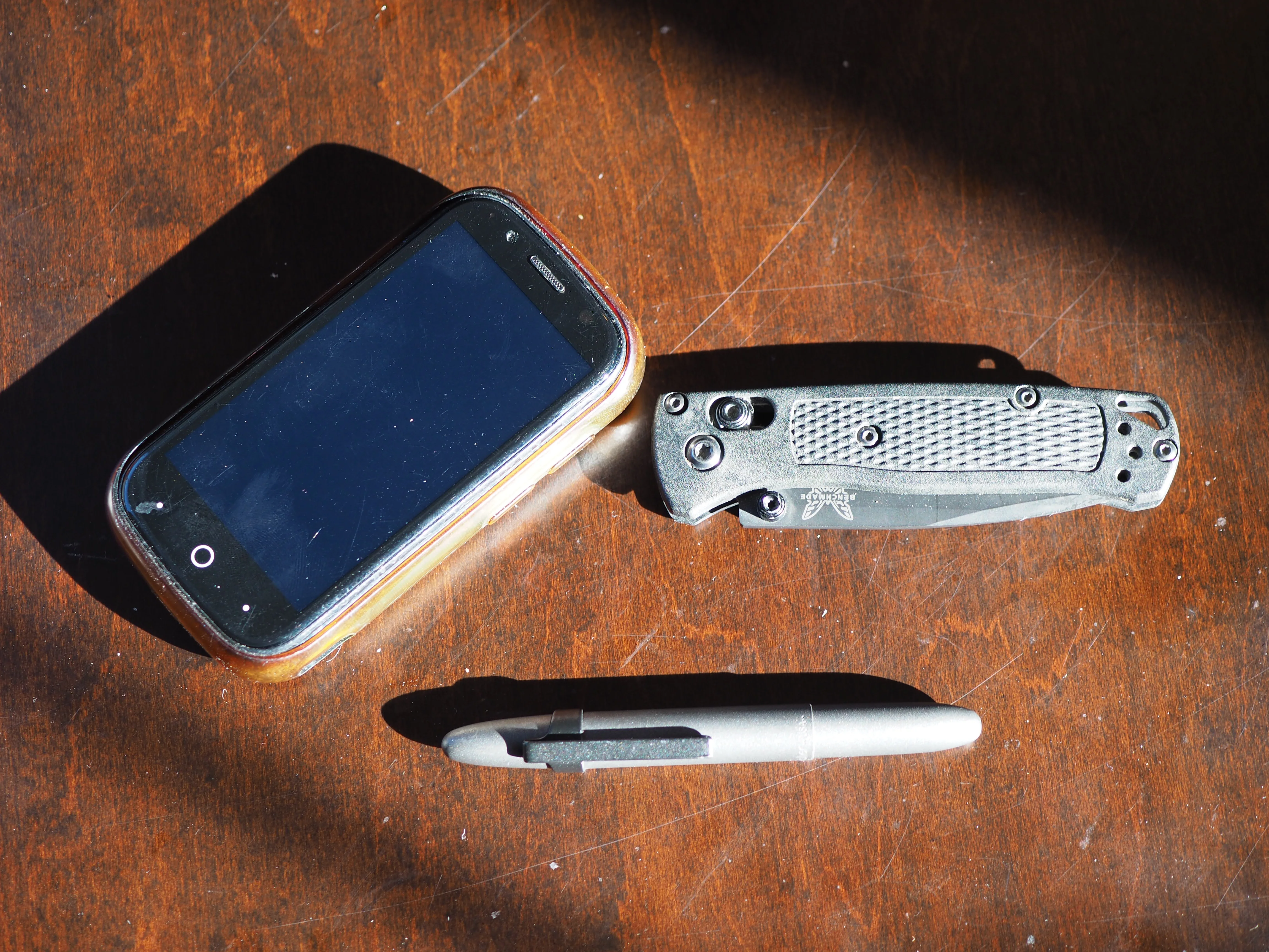 I did used to carry a Bellroy Card Sleeve wallet about five years ago after I'd stopped carrying coins but still needed notes and a debit card. That was a really good wallet, it even survived the wash a couple of times. Now I don't even need that, Australia makes it easy to go cashless and the card is in the phone digital wallet now. Headphones, pen, knife or anything else are all situationally carried, not EDC.