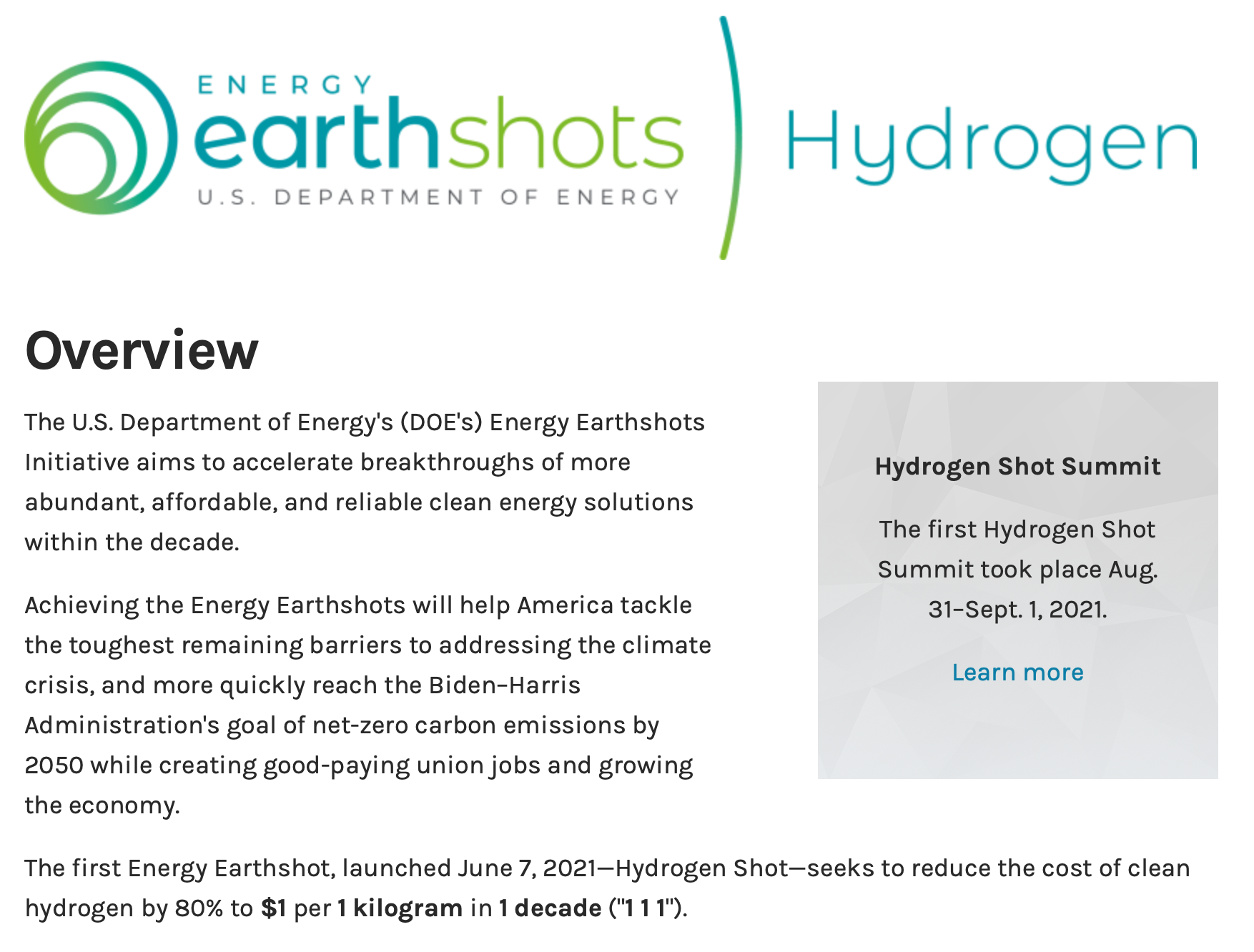 ·We have taken a break from a focus on hydrogen, but it's likely to have a huge role in future energy storage. In fact, the first DOE "Earthshot" involves hydrogen.