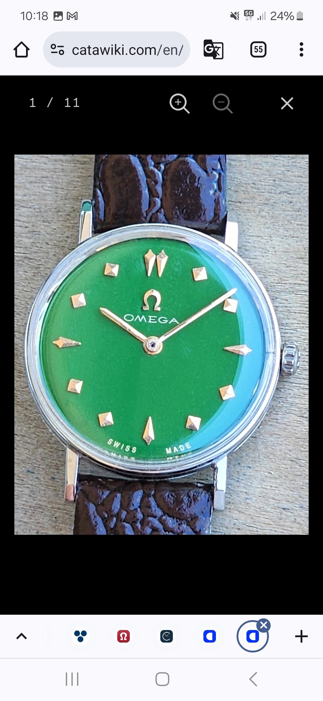 "Omega classics green dial on all stainless steel Omega casing. Made for man. Today's unisex size.Made in 1939. The beginning of the WW2 war."