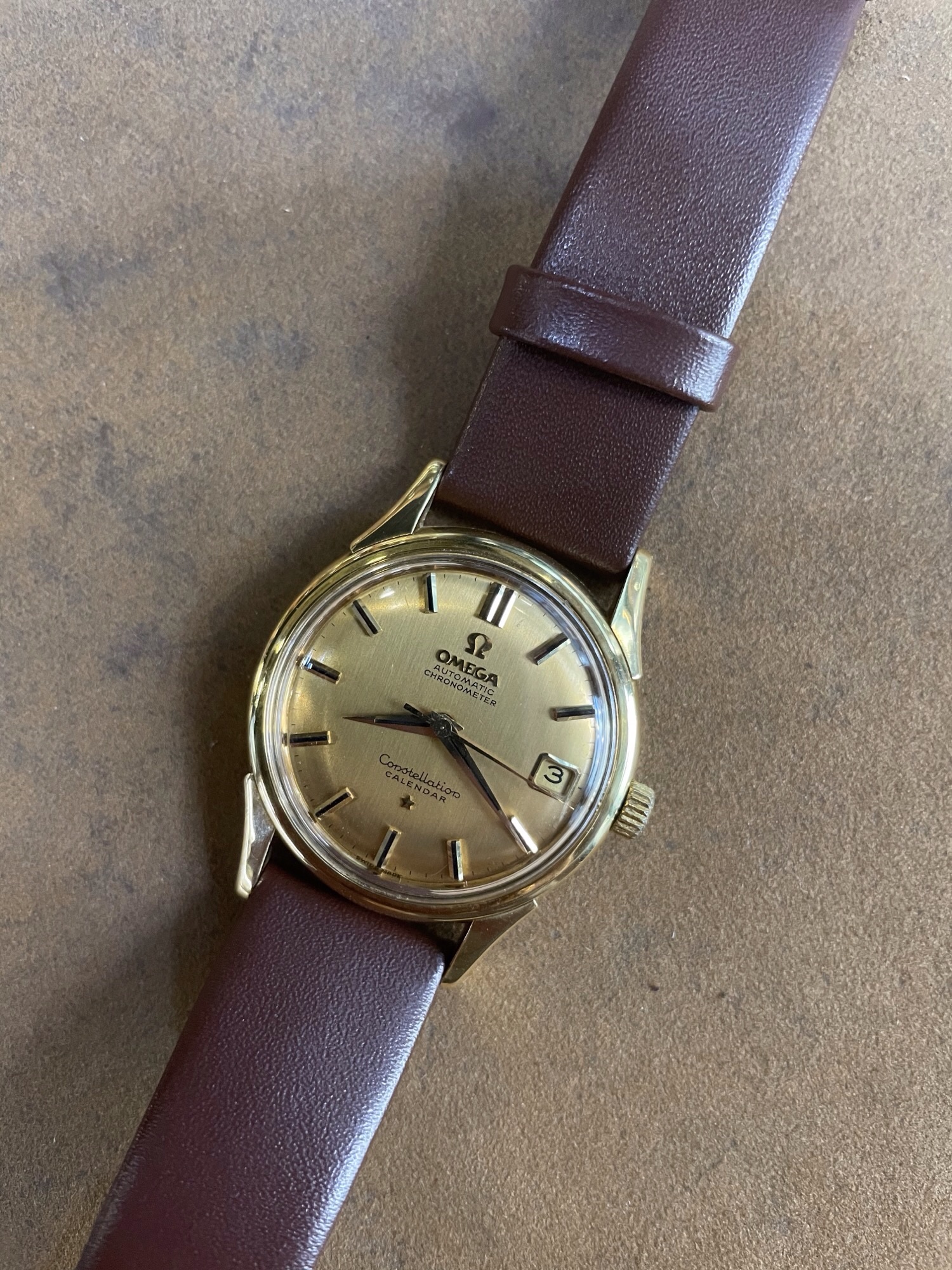 Someone I know posted me a photo of this 18k Omega Constellation asking me if I were interested in a trade and I vaguely recall from an older thread that referenced this particular model (14393) that the dial with this colour was also solid gold! I searched several days for that thread but had no luck finding it, so hopefully it might be worth revisiting this topic.