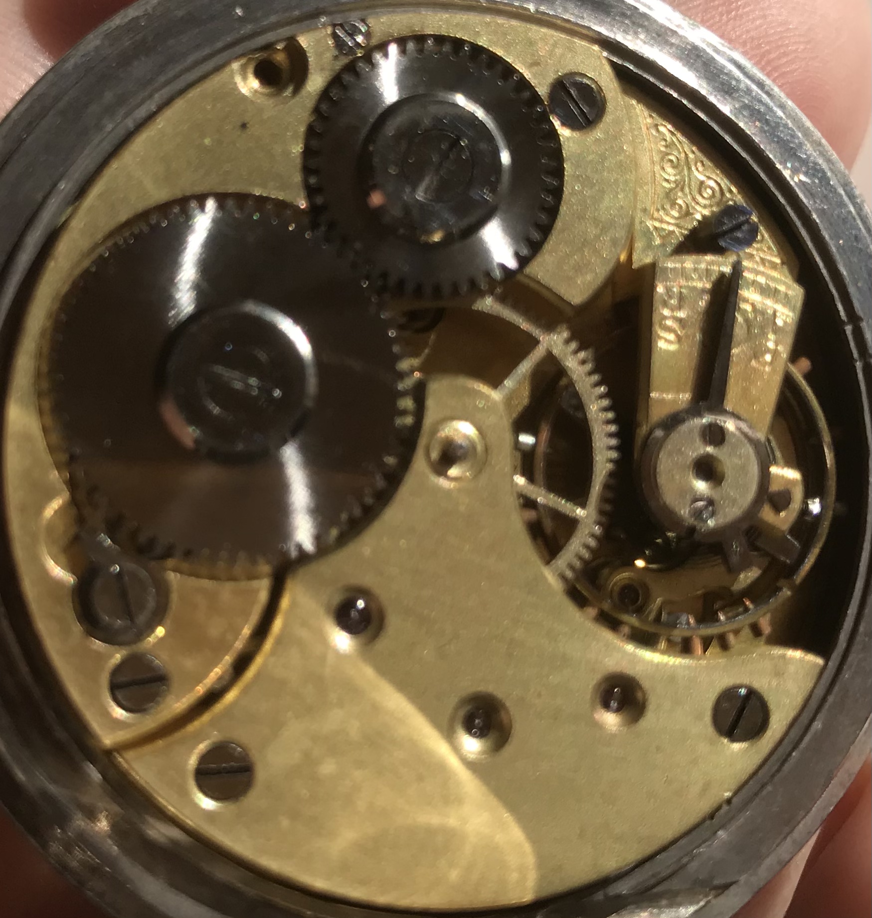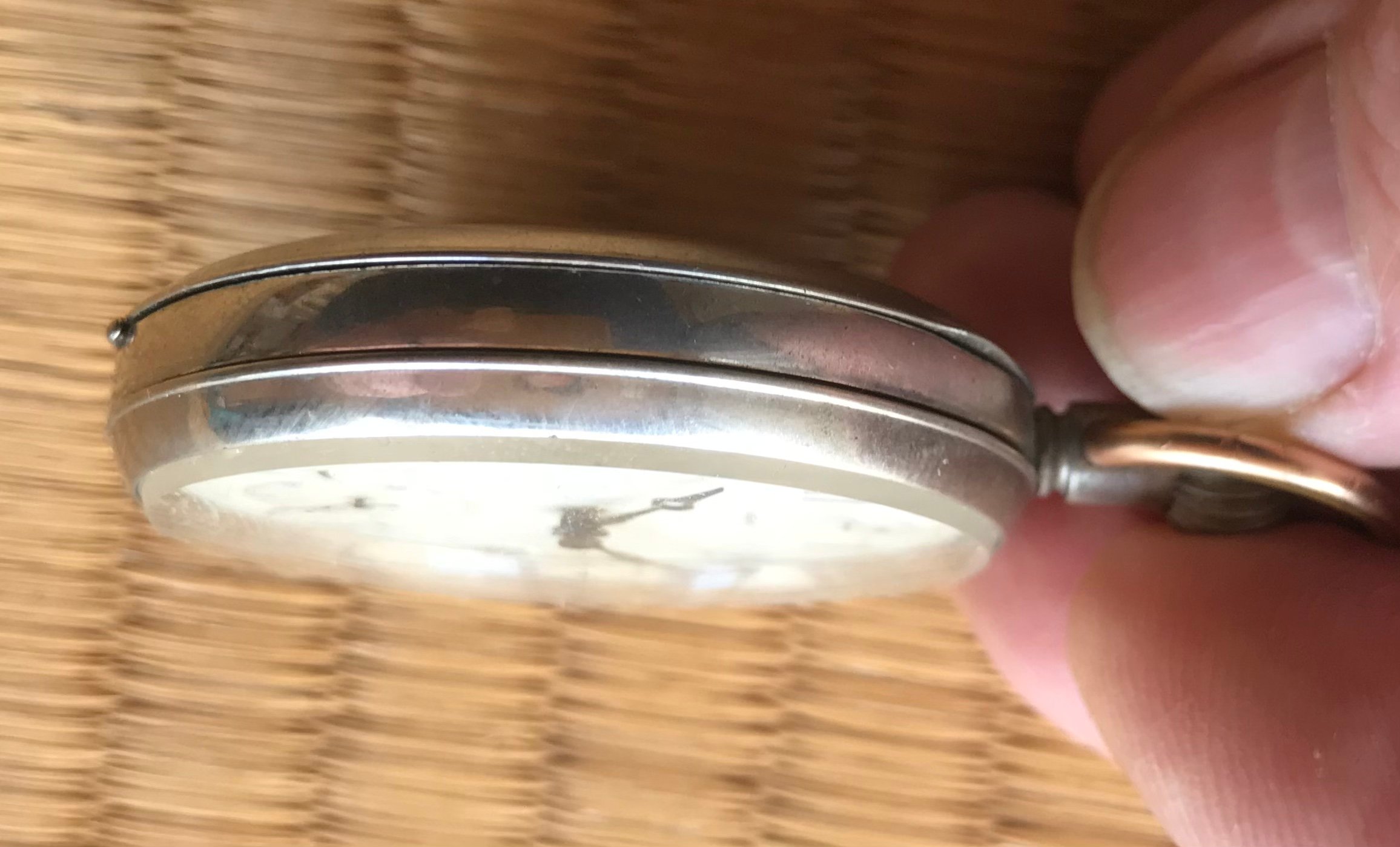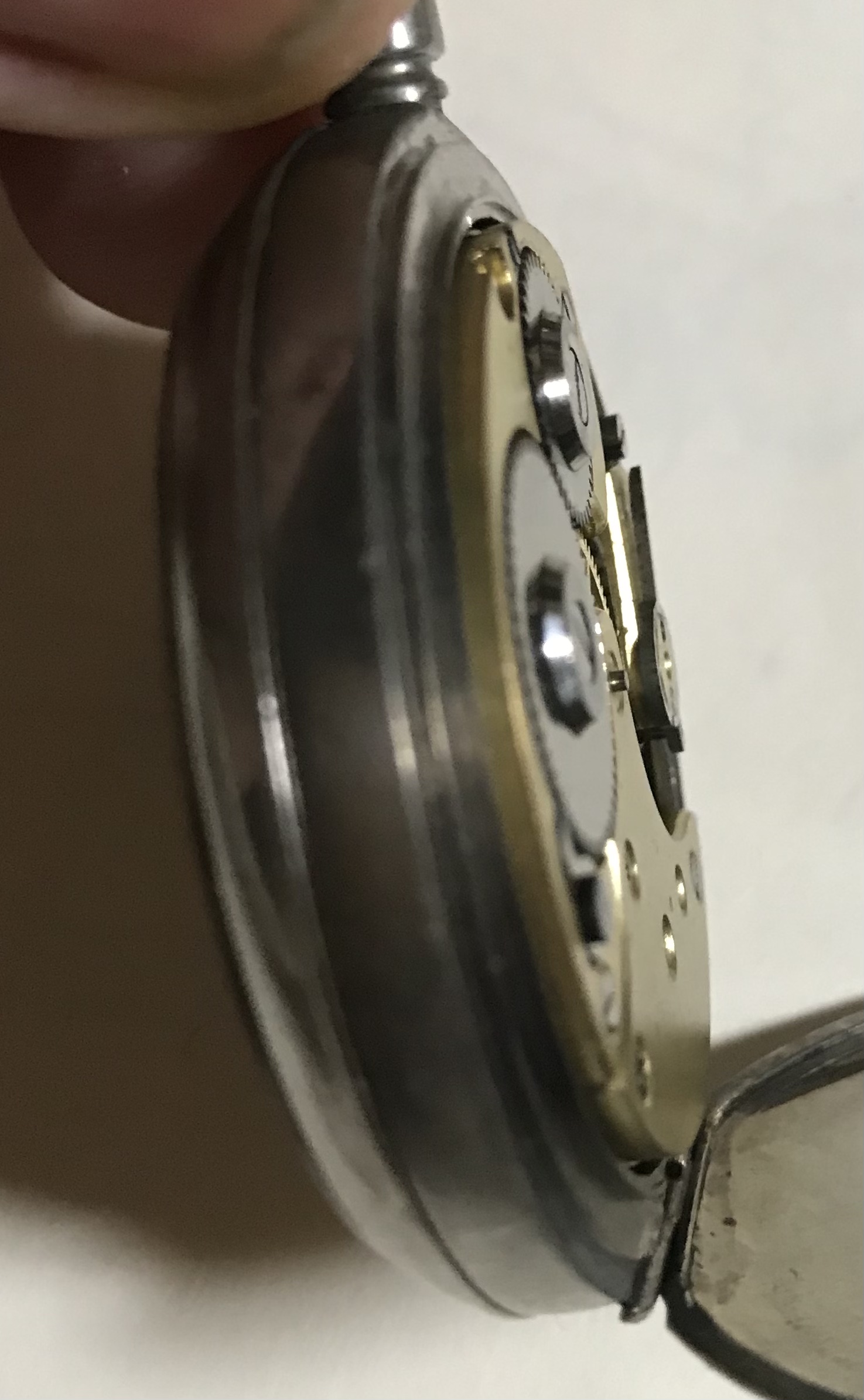They had two watches, this pocketwatch and another Omega wristwatch with wire lugs with a diameter for the watch belt of about 8mm (?!). Both in a very sad state, no or broken glas, parts missing, non running. Owner told me they are