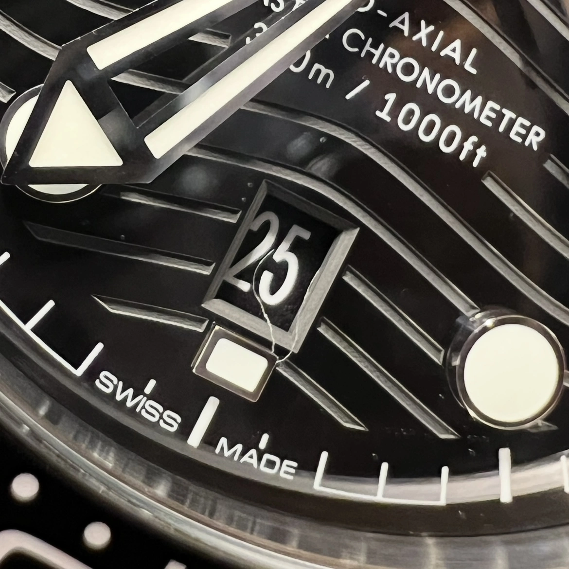 However, for some reason they decided to “clean the dial”. There was an unrelated speck on the underside of the crystal, which they did thankfully remove. But this is the dial now: